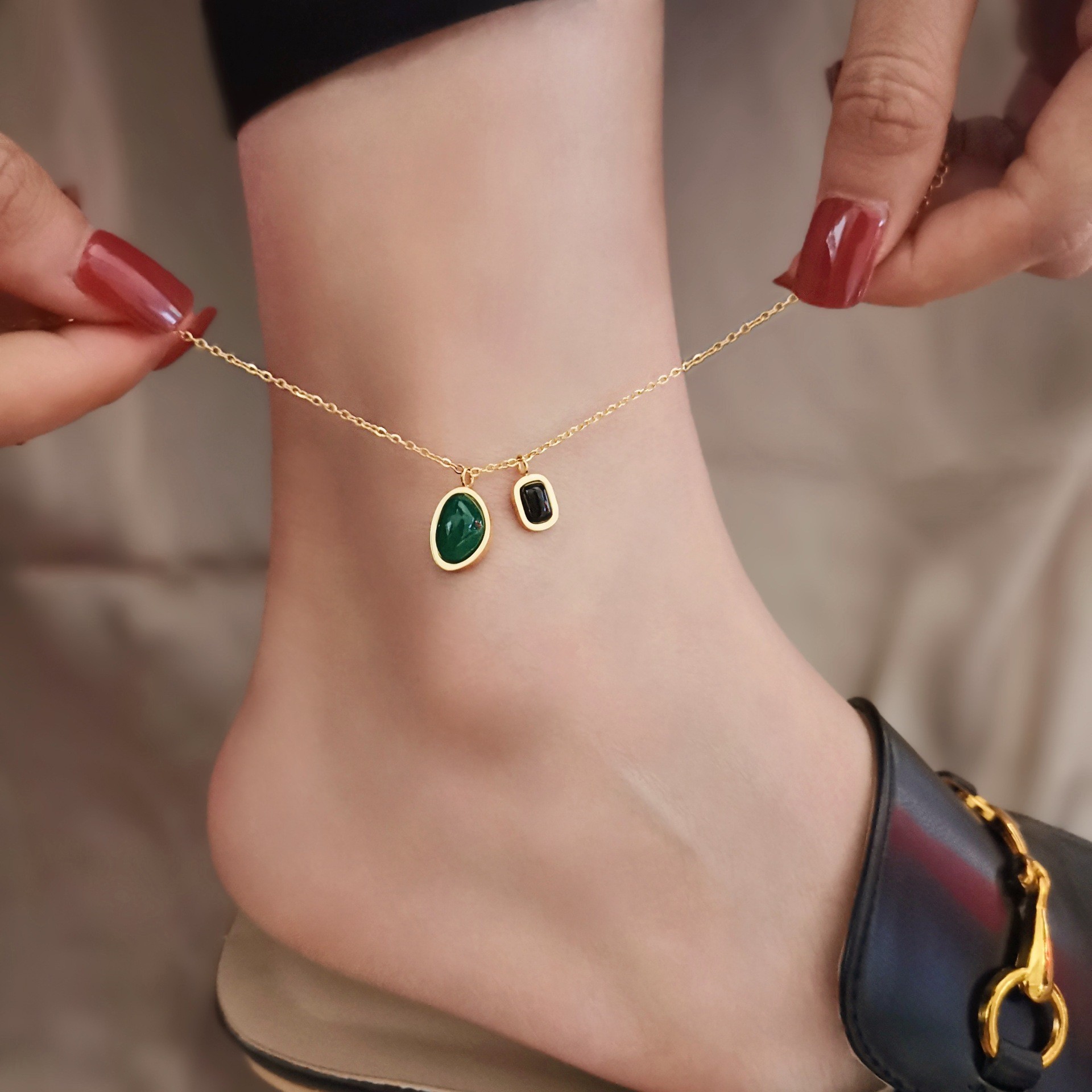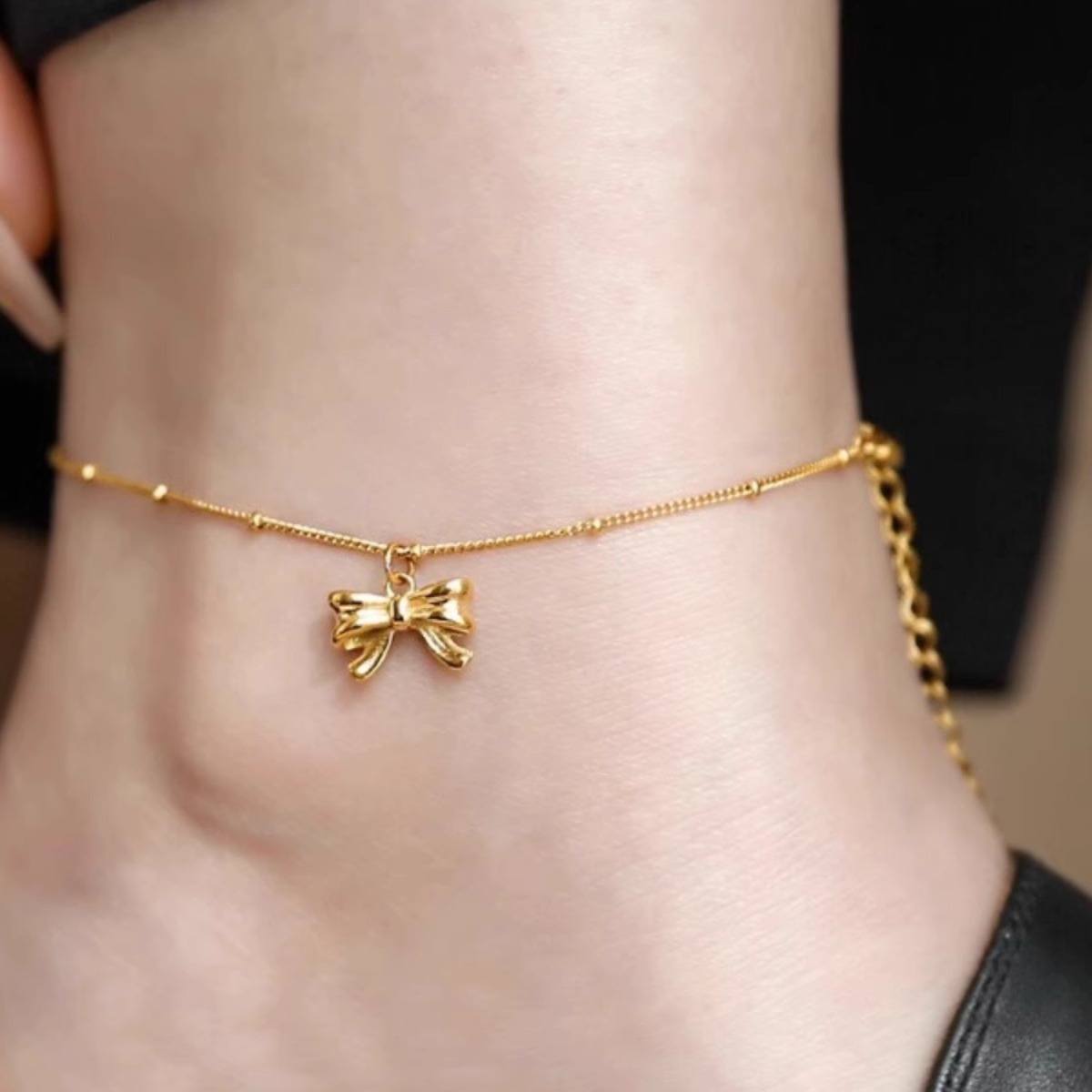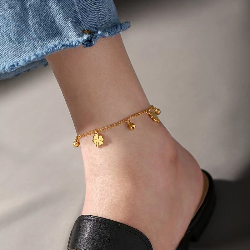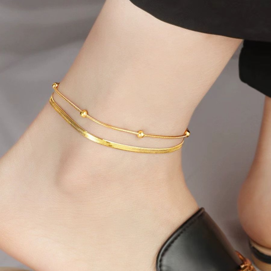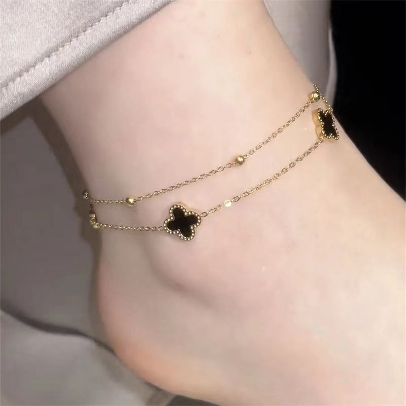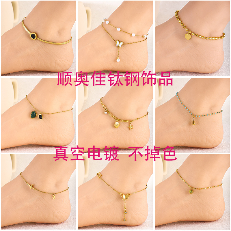2024新款潮双面钛钢双层爱心脚链女镀18K金百搭脚饰合集厂家批发
