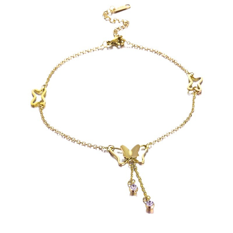 钛钢蝴蝶流苏裸脚链金色女款性感网红饰品简约小众设计潮流足链