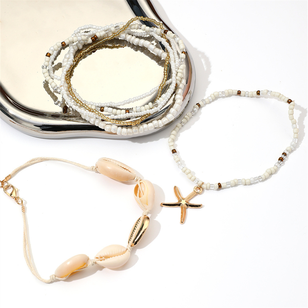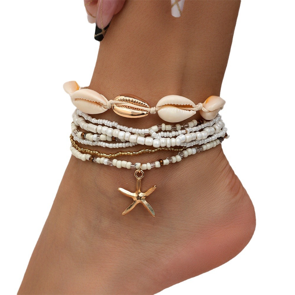 欧美跨境波西米亚风外贸海星编织脚链 夏季沙滩贝壳米珠脚饰7件套