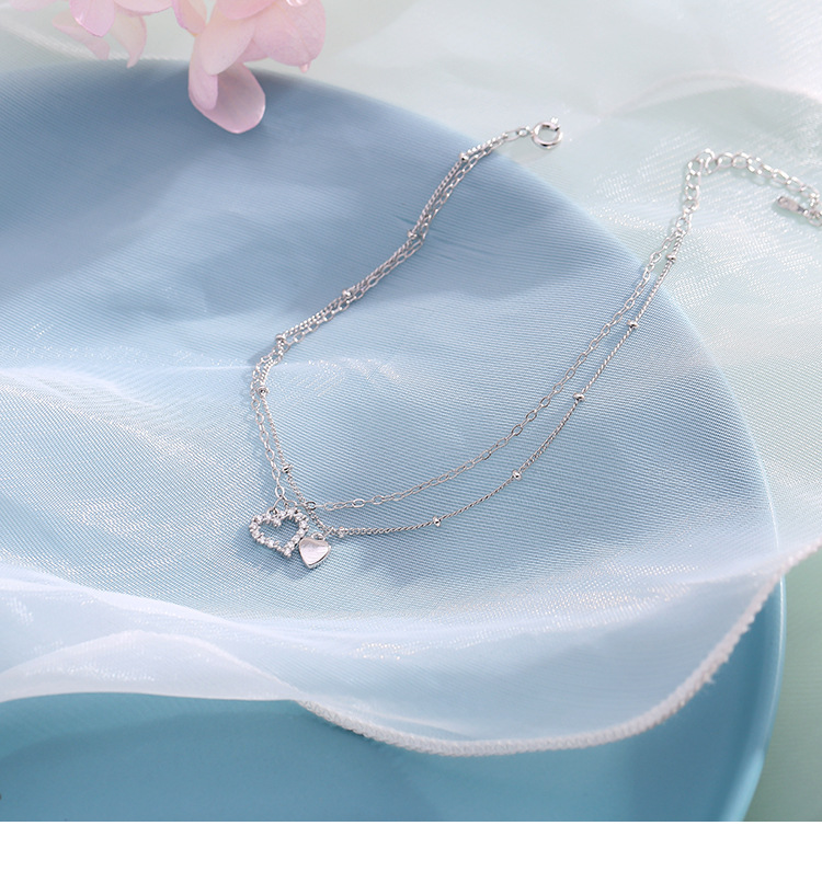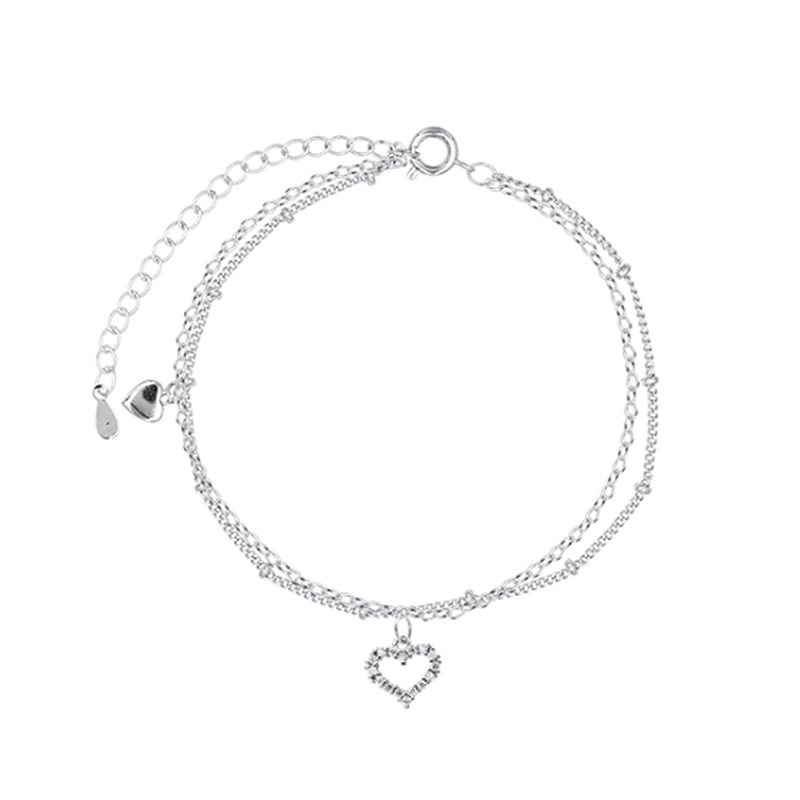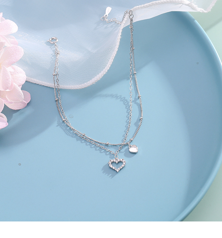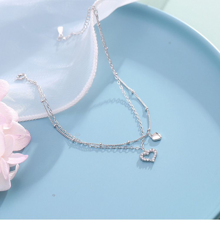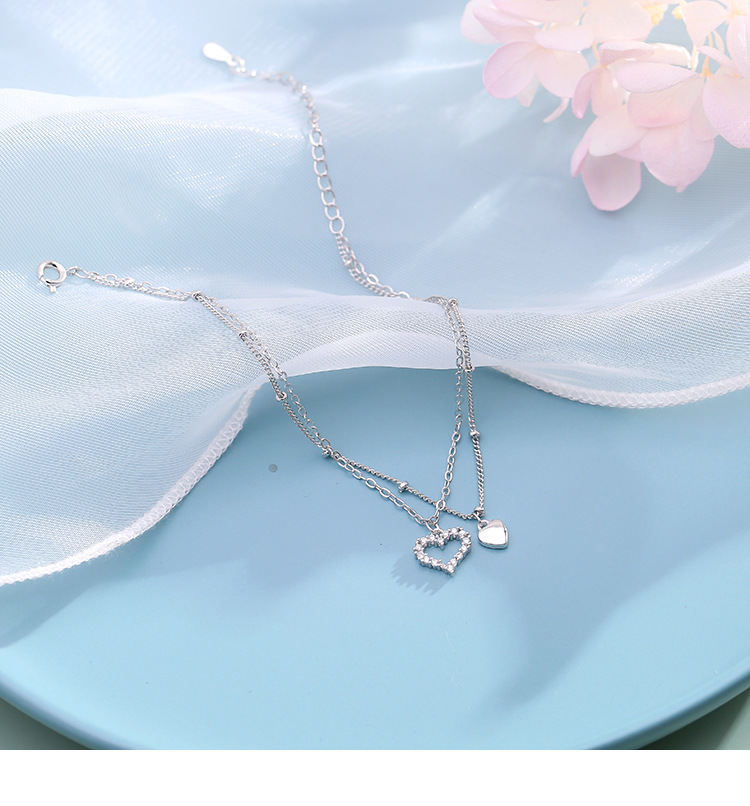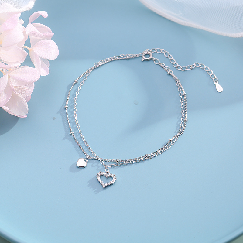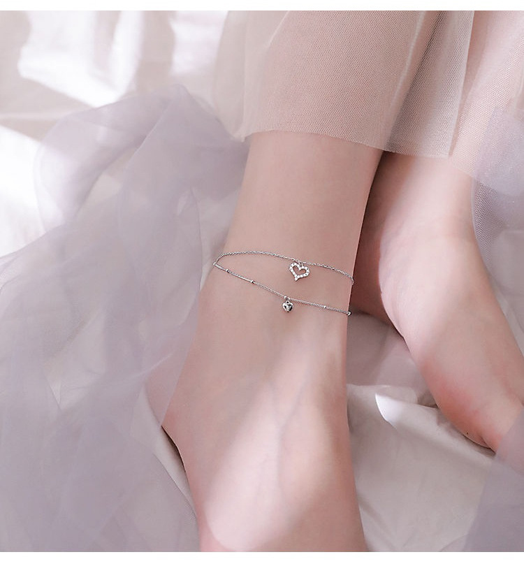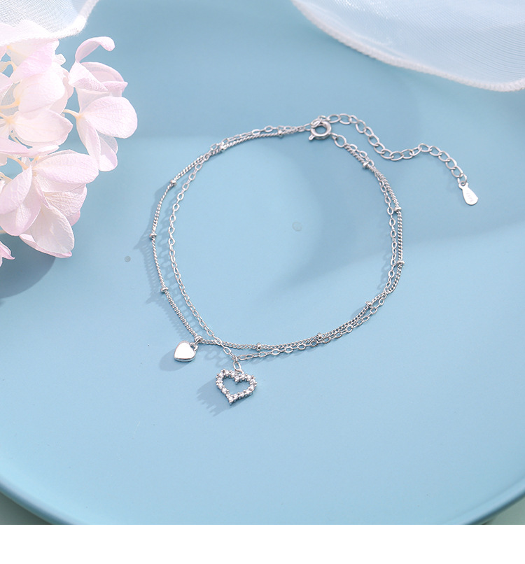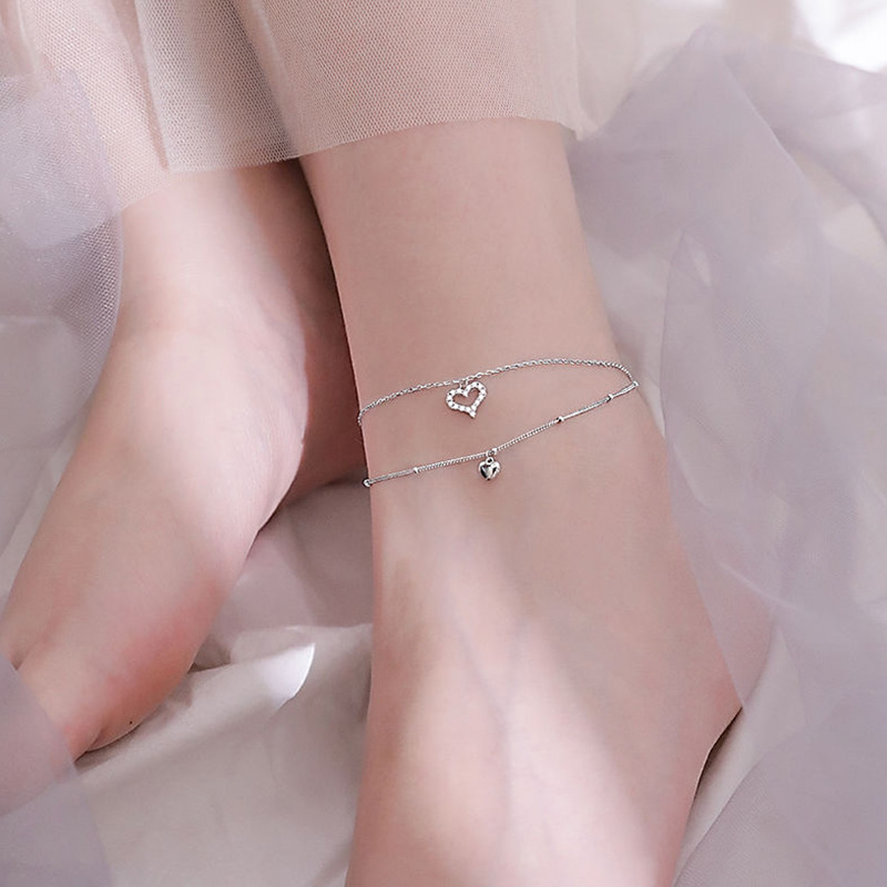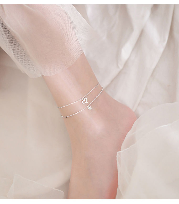 双层爱心脚链女孩高级感小众轻奢双爱心脚链纯银不掉色爆款饰品