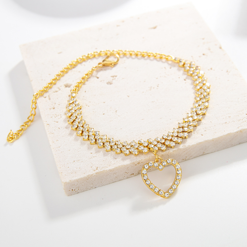 亚马逊爆款饰品 简约沙滩菱形脚链时尚简约爱心吊坠脚饰链anklet