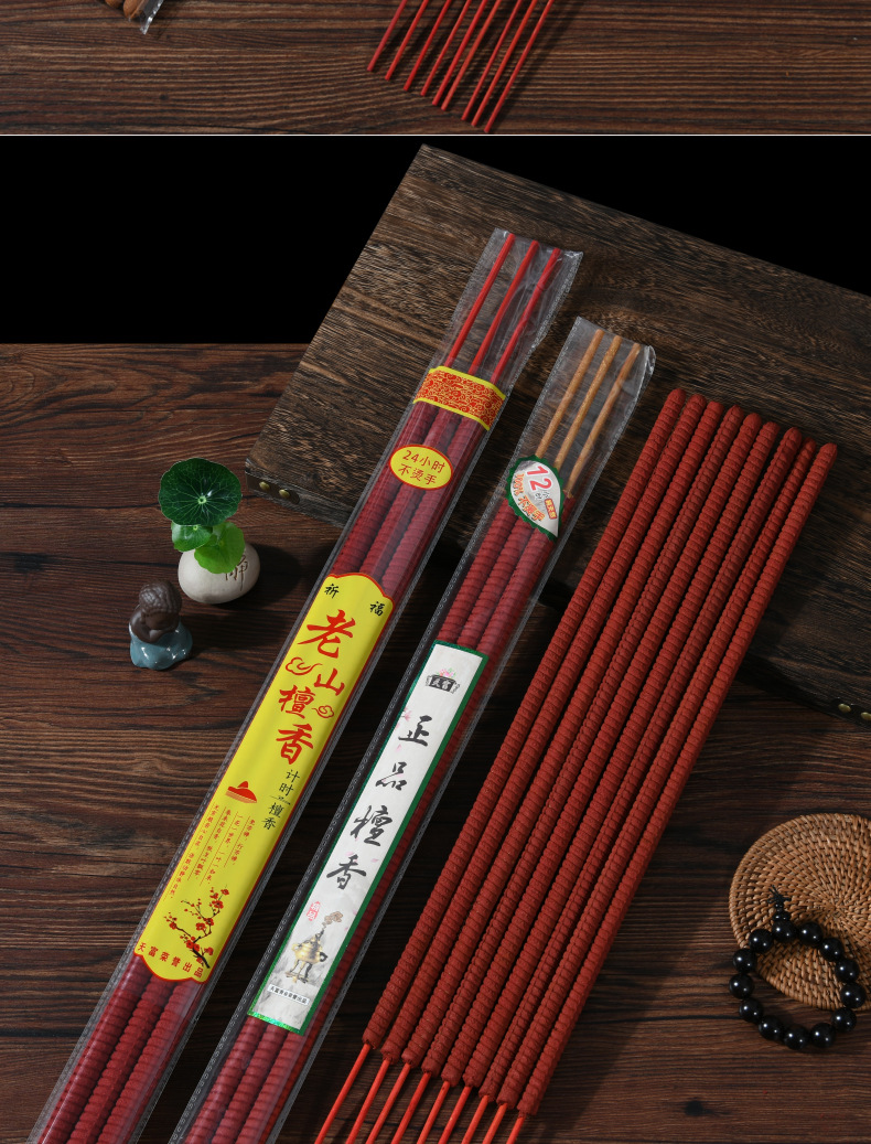 厂家批发经典老山檀香线香竹签香拜佛无烟檀香线香宗教寺庙小时香