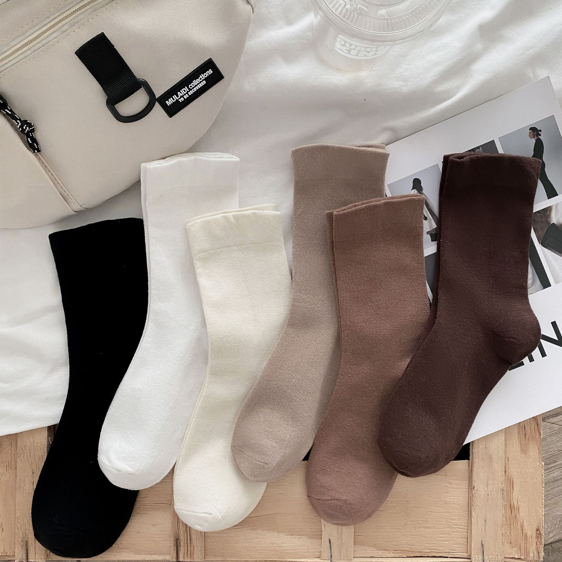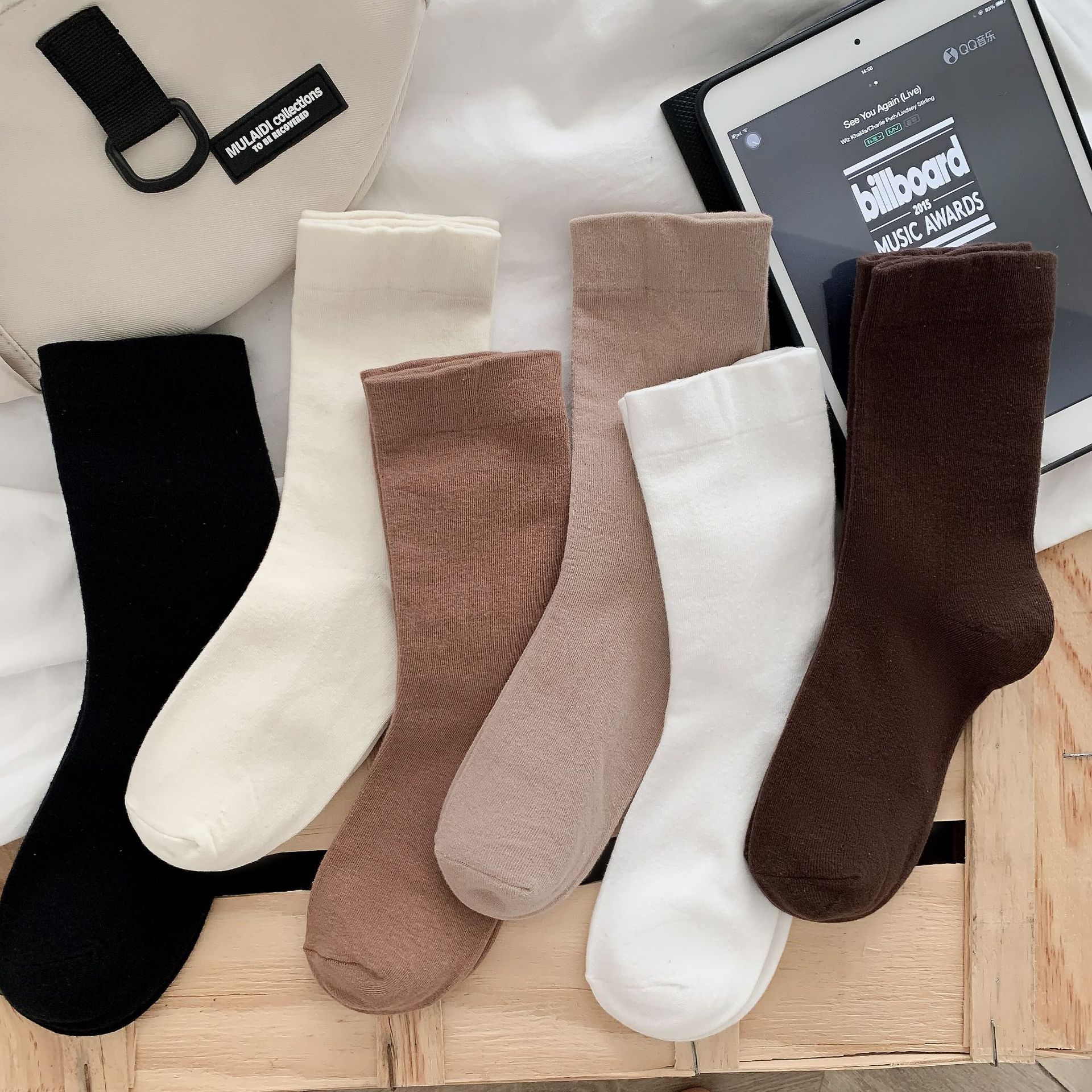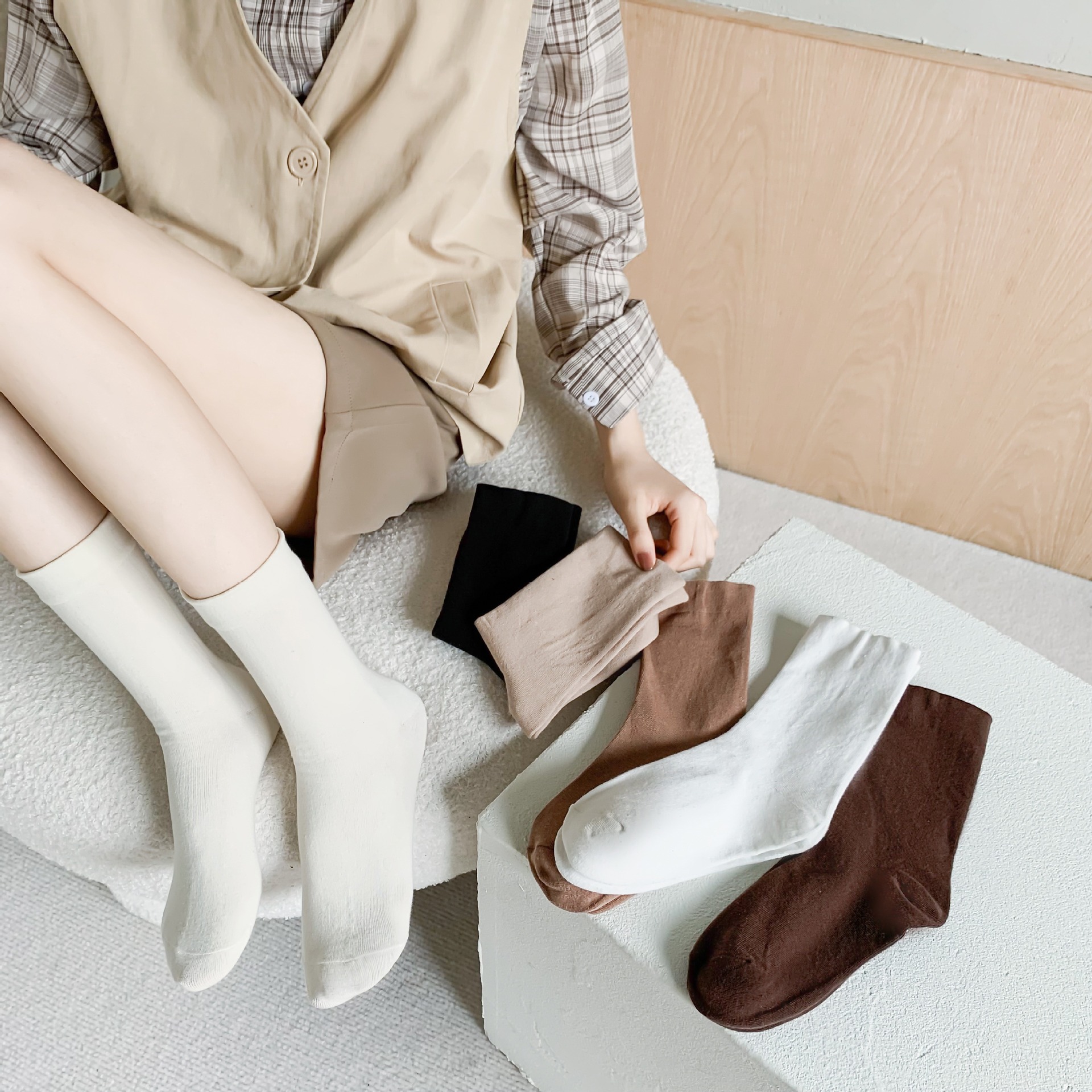 白色堆堆袜子女春秋新款纯色日系长筒无骨袜不勒脚月子袜一体机
