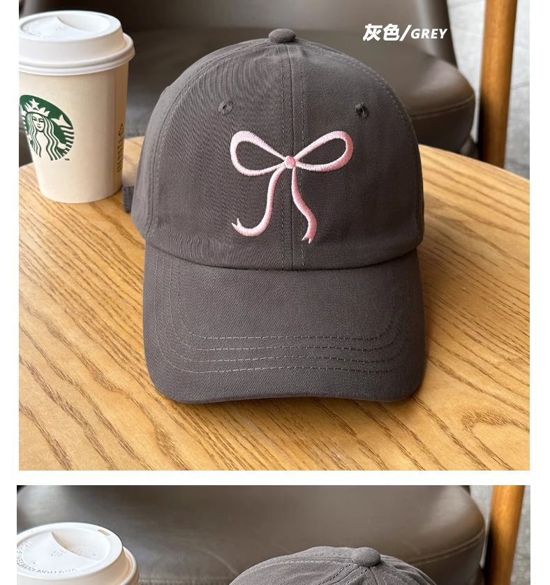刺绣蝴蝶结棒球帽女韩国甜美可爱粉色帽子显白显脸小百搭鸭舌帽子