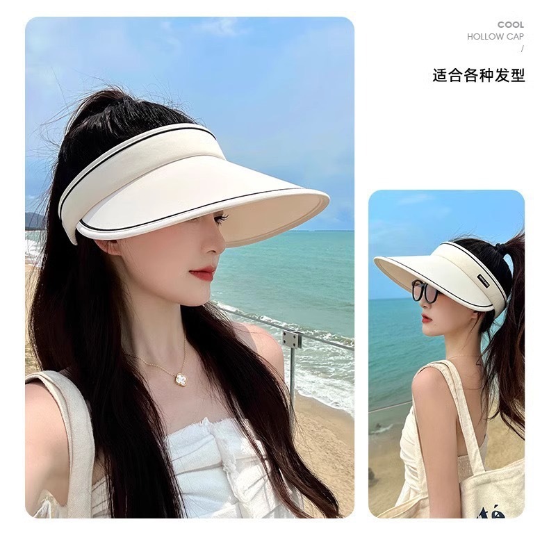 夏季防晒帽子女韩版新款防紫外线遮阳空顶帽户外可折叠大檐太阳帽