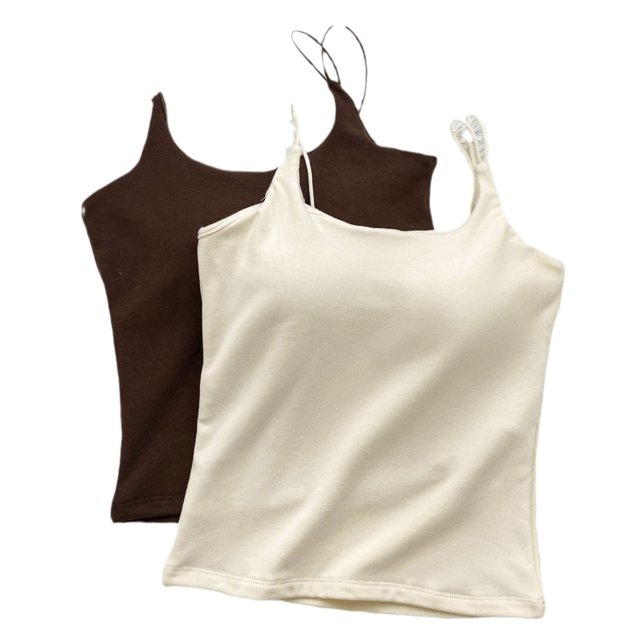 美背一体杯纯棉自带胸垫背心百搭美式小吊带女内搭修身带胸垫内衣