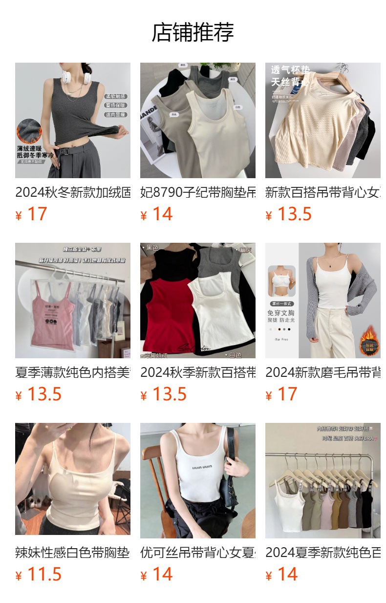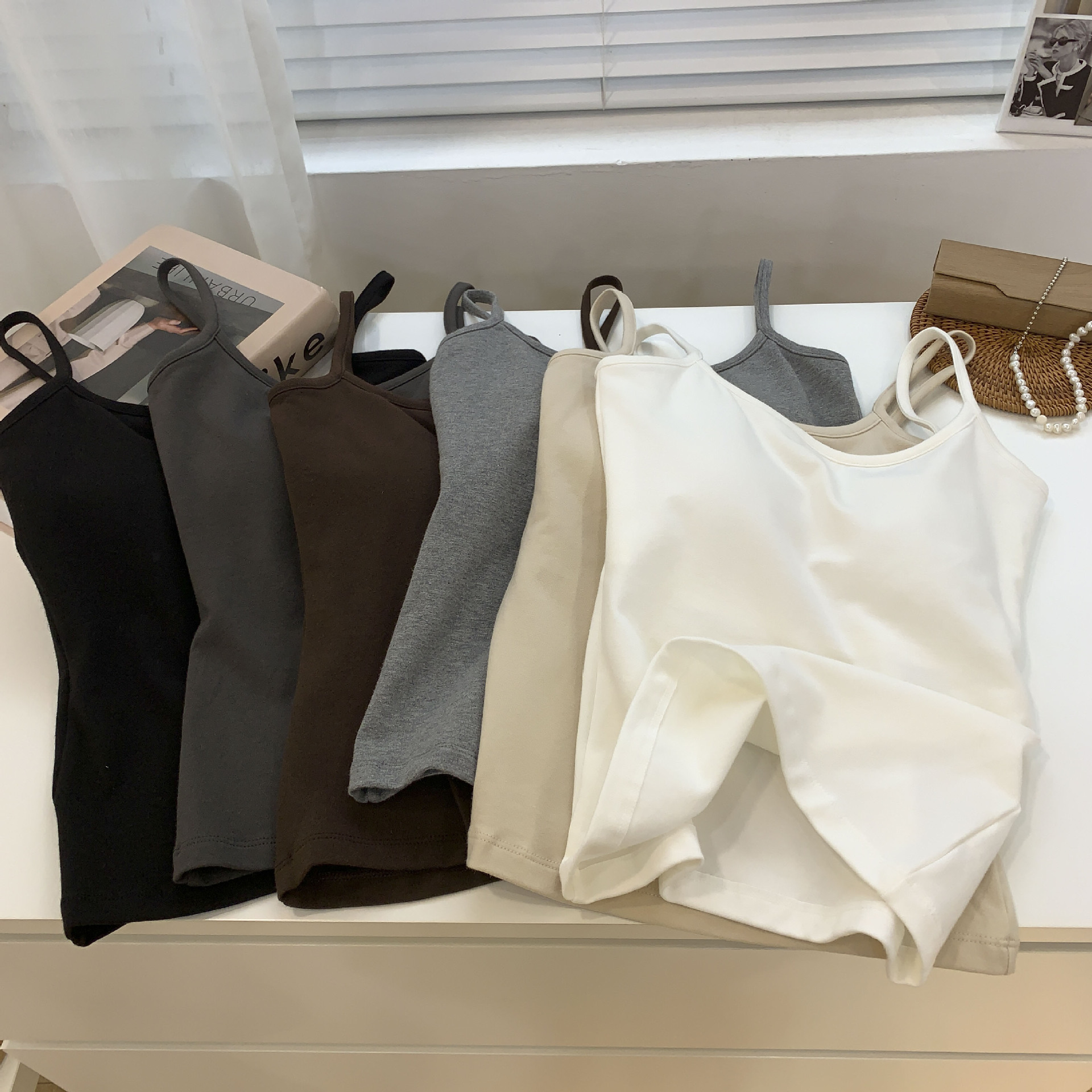 跨境吊带背心女外穿带胸垫打底内搭高级感美背固定一体杯内衣批发