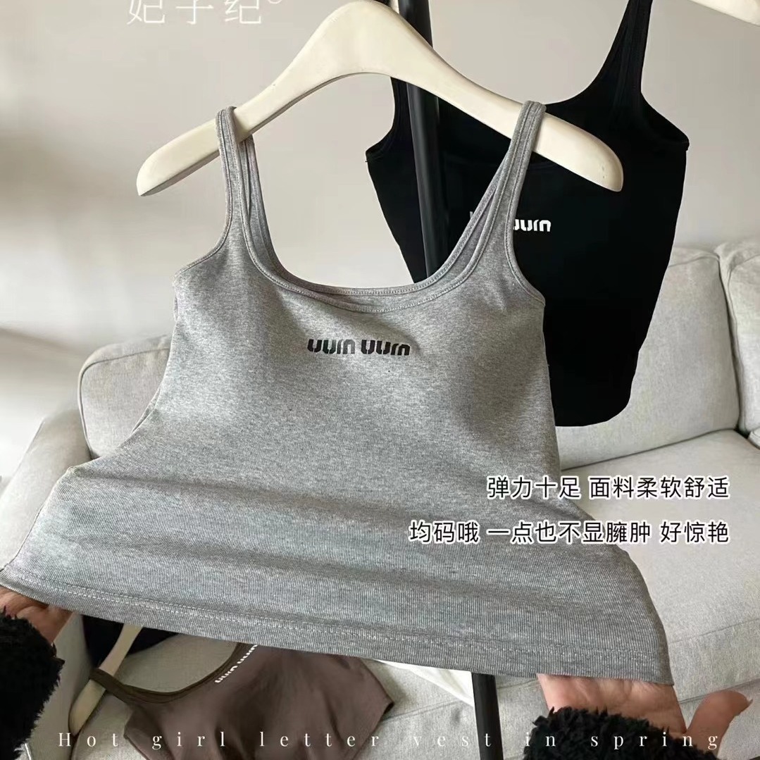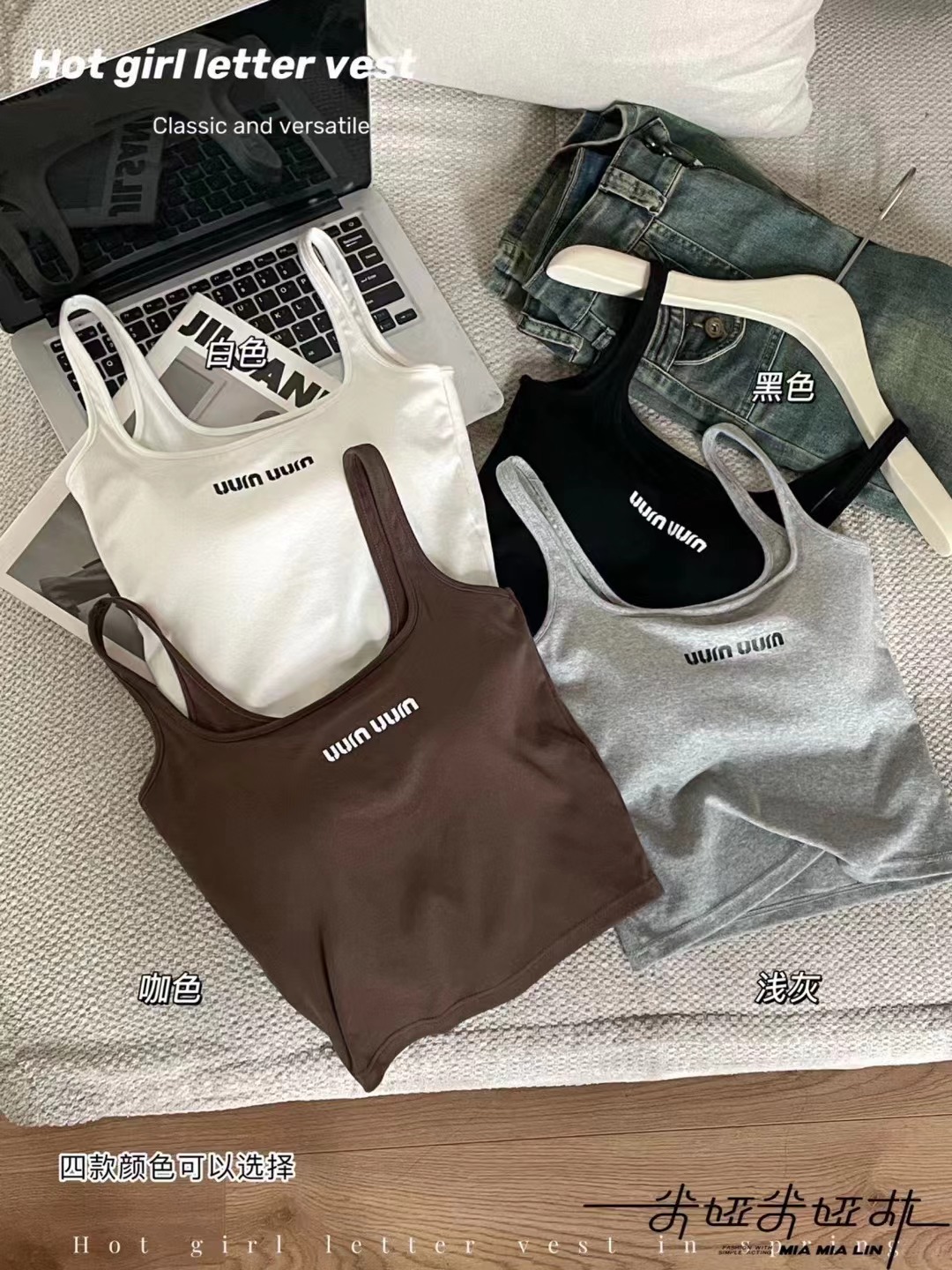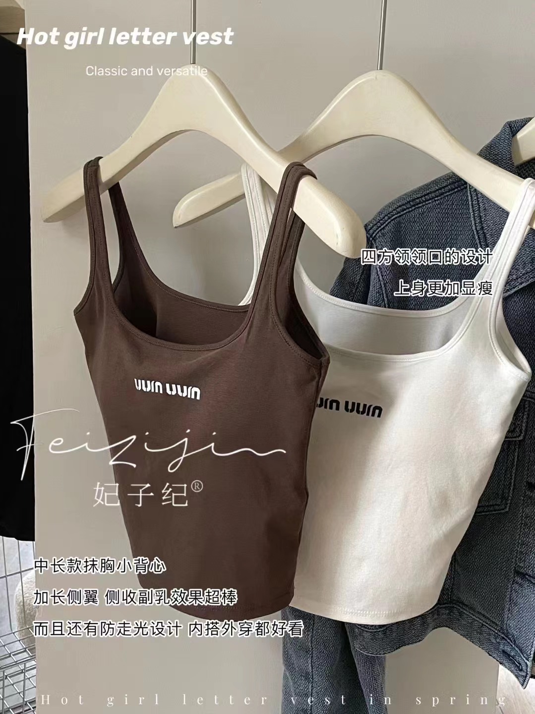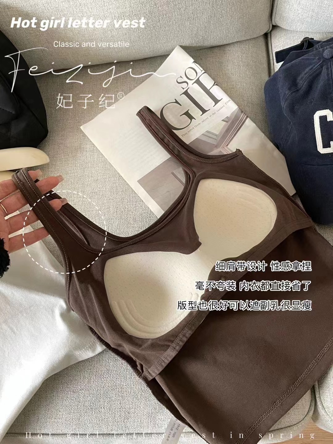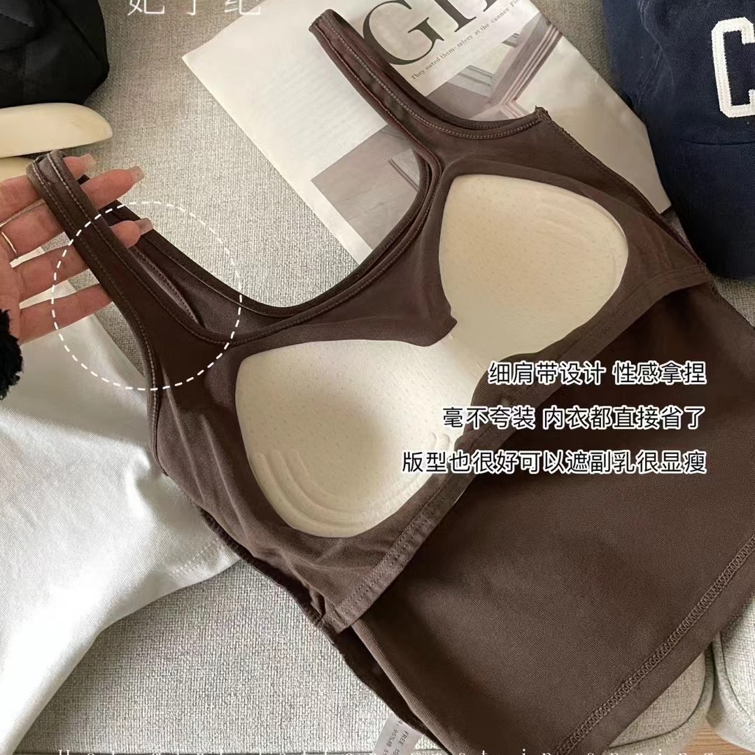 固定一体杯吊带背心女内搭外穿带胸垫不跑杯美背防走光打底上衣