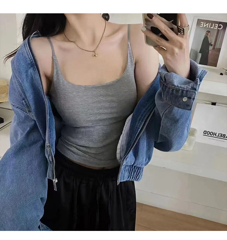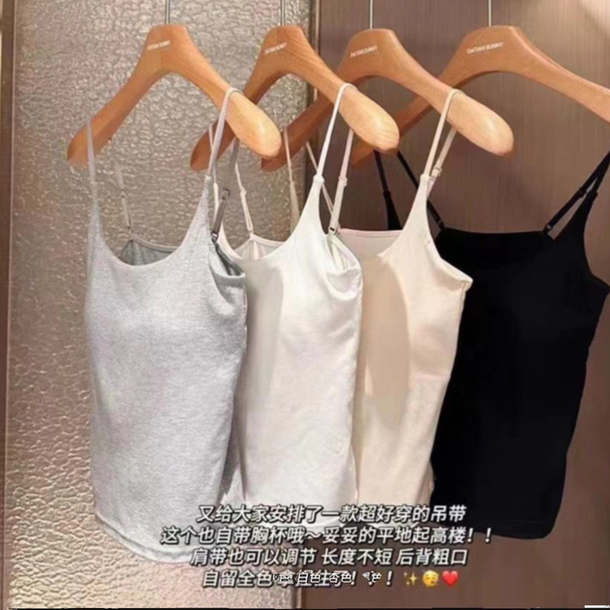跨境专供吊带背心女纯欲风一体杯美背外穿莫代尔无痕夏季女士上衣