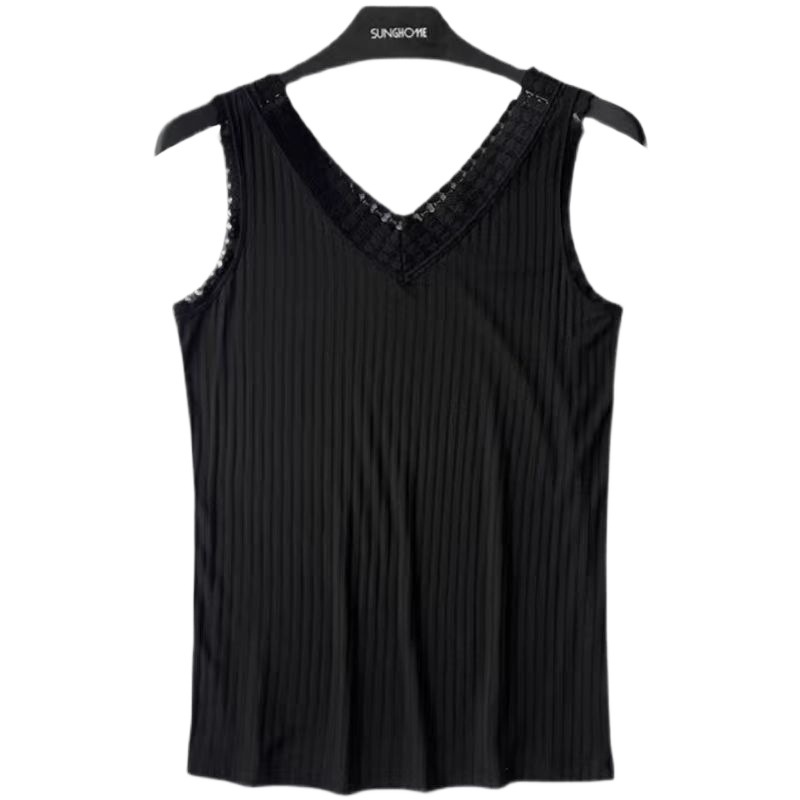 2025夏季新款冰丝螺纹外穿打底内搭内衣V领蕾丝吊带女士背心批发