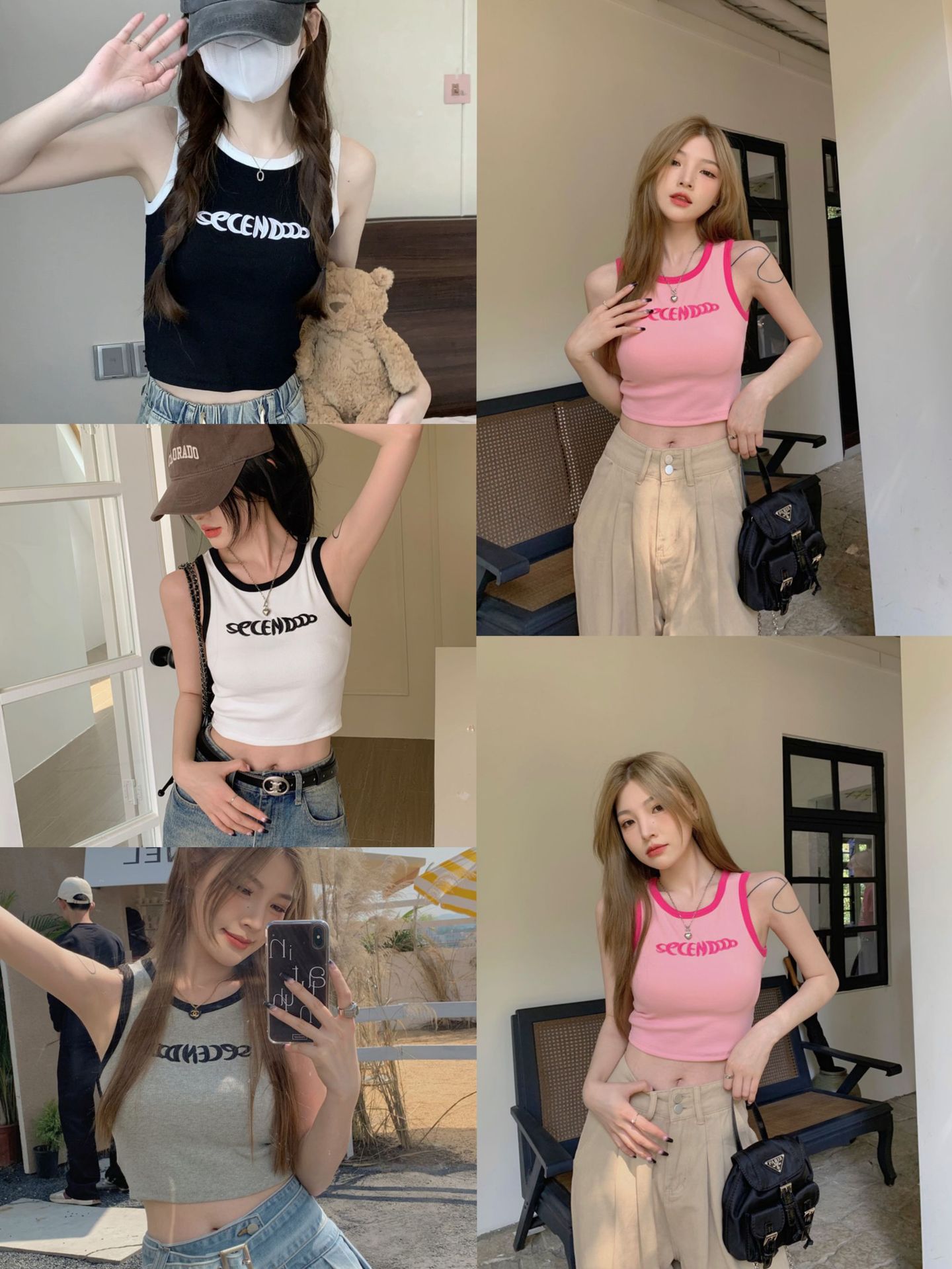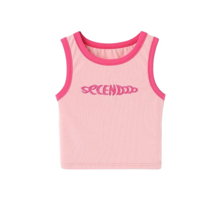春夏新款纯欲撞色刺绣吊带背心性感辣妹带胸垫内搭外穿短款上衣女