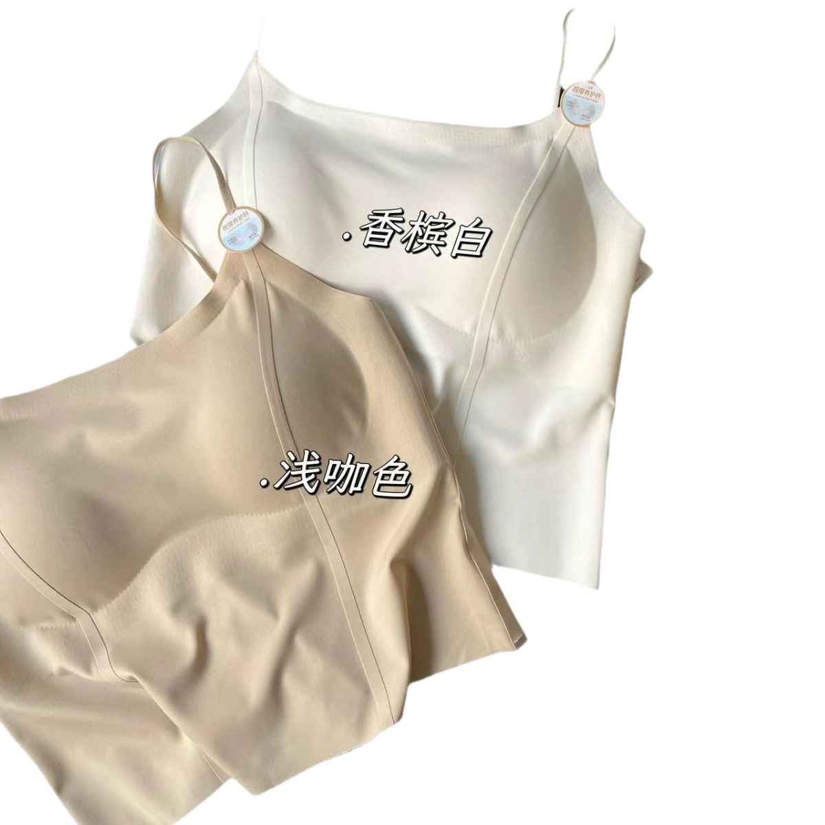 冰丝吊带无痕美背防走光文胸背心女夏季一体式内衣外穿打底吊带女