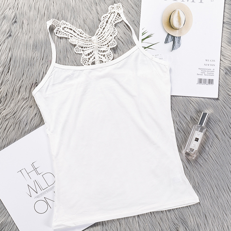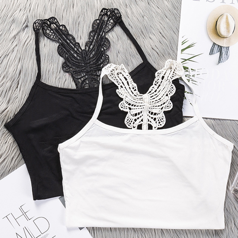 莫代尔蝴蝶刺绣美背内衣 女士抹胸蕾丝白色吊带背心ins风女外穿夏