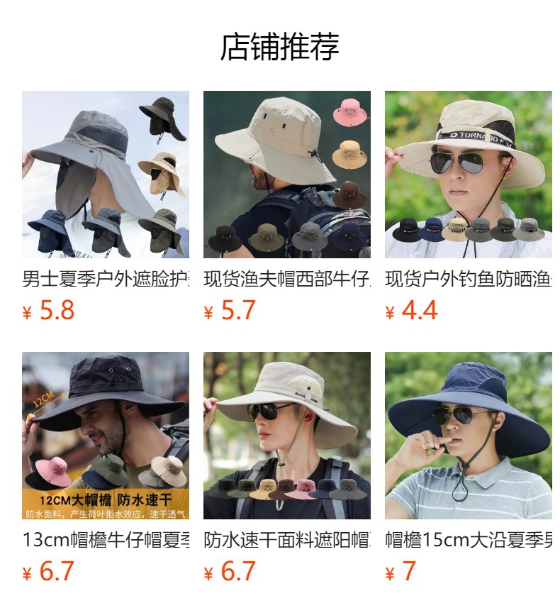 批发户外农活工作渔夫帽旅游防晒帽太阳帽劳保奔尼帽钓鱼遮阳帽子
