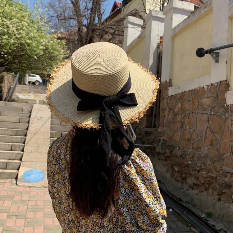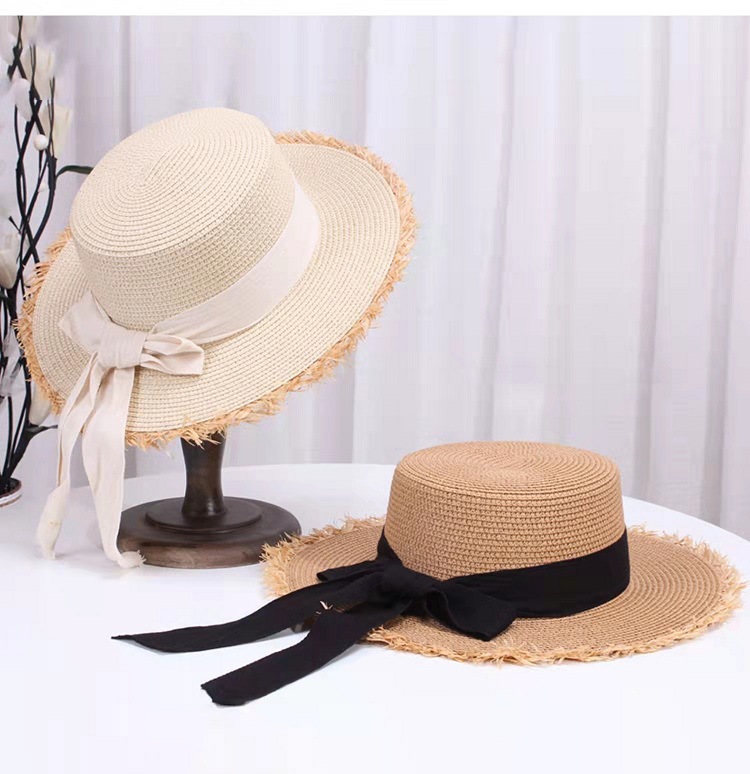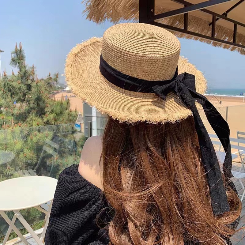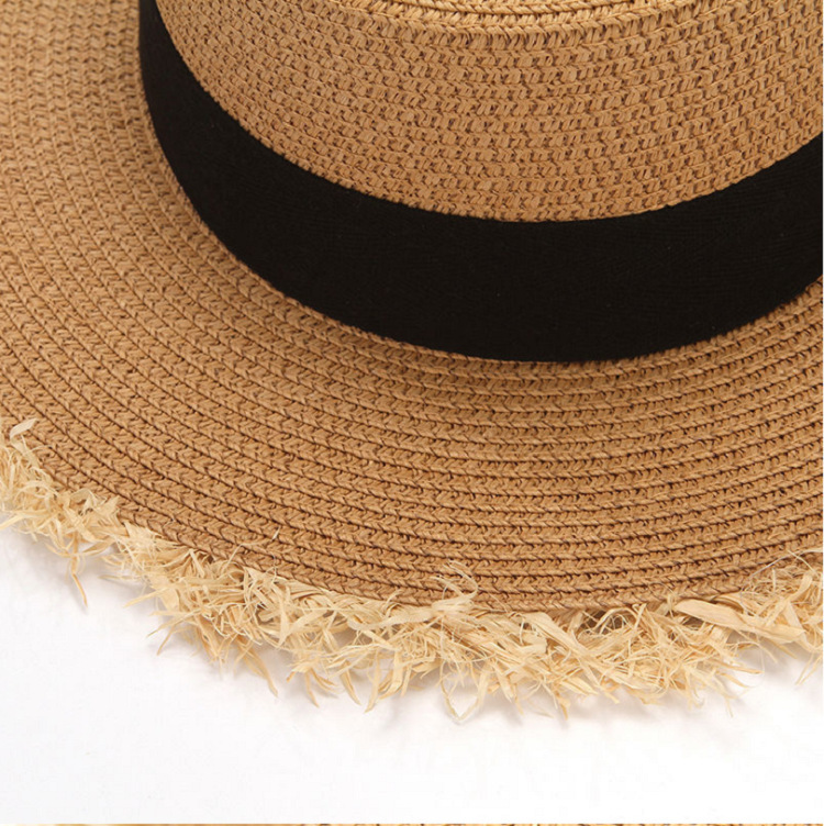 春夏季海边度假沙滩遮阳防晒帽户外太阳草帽女纸辫帽平顶百搭帽子