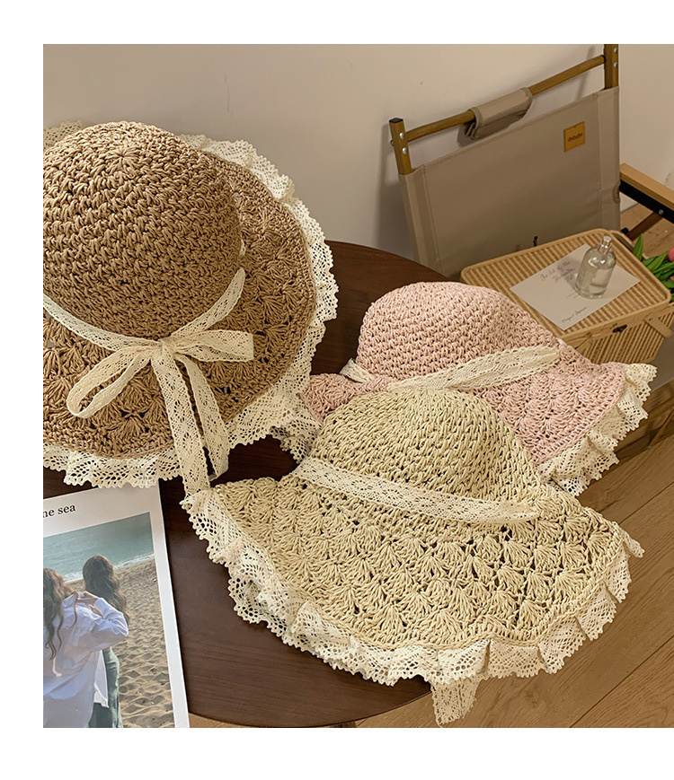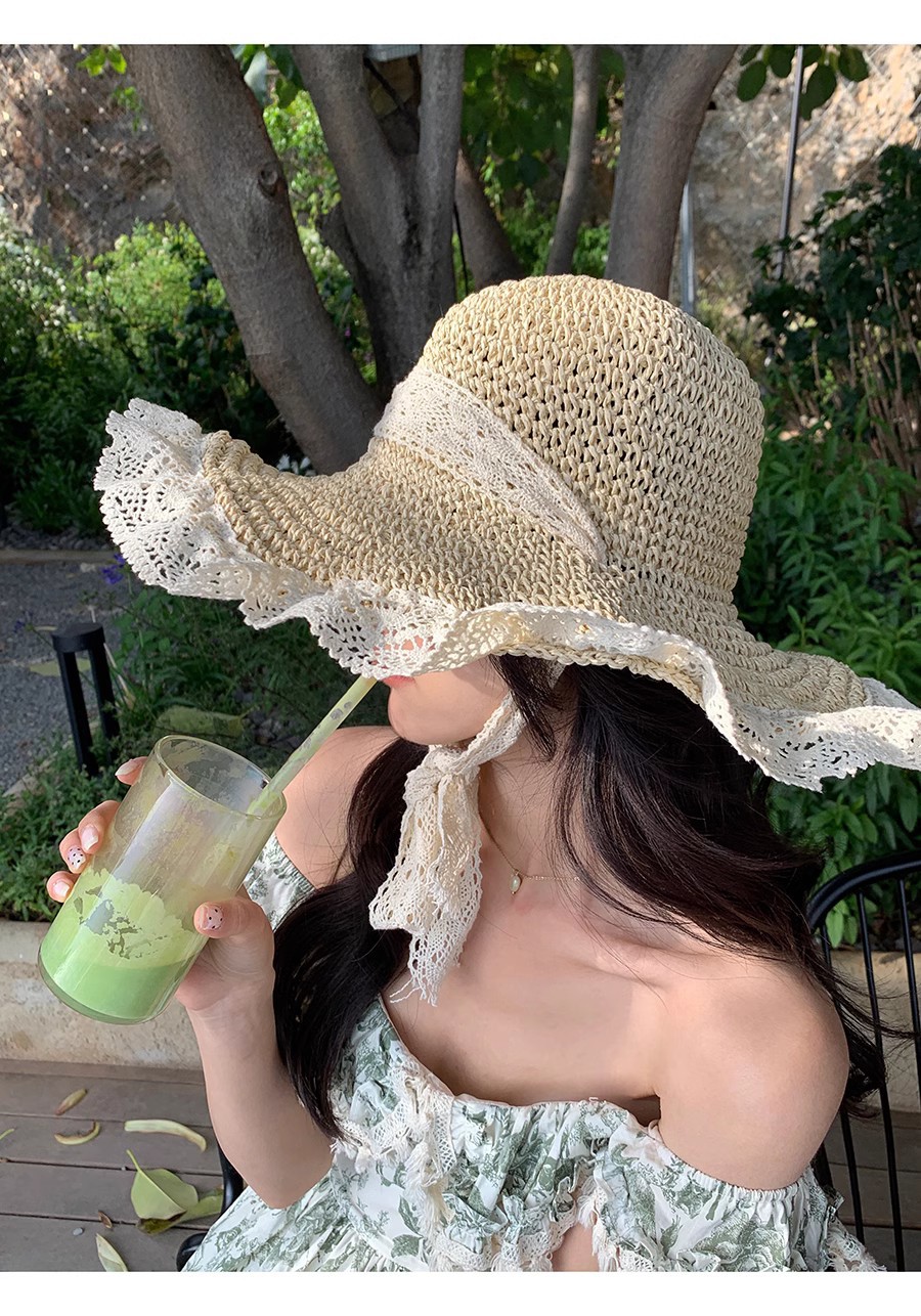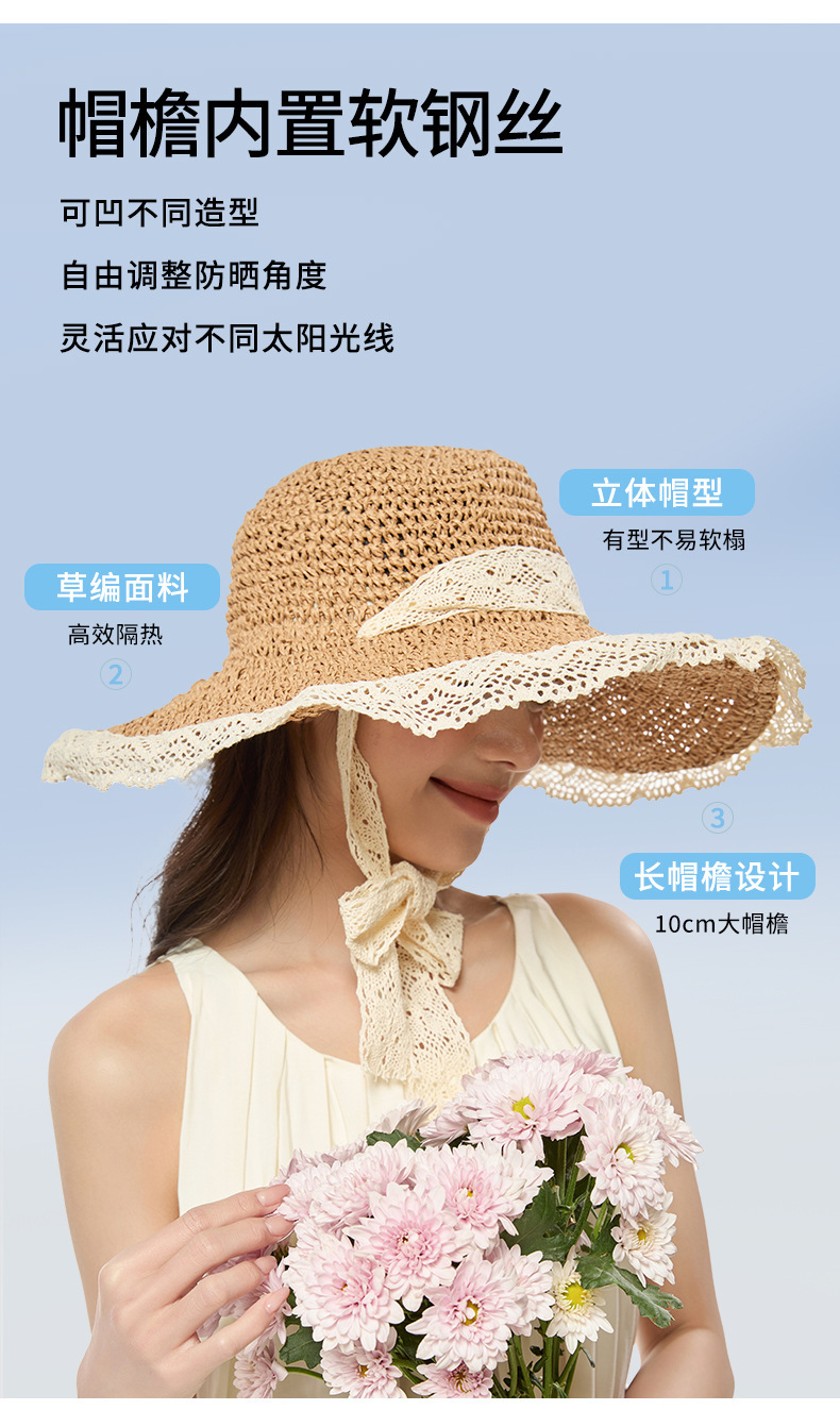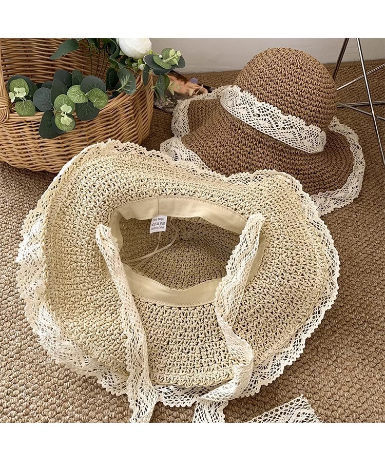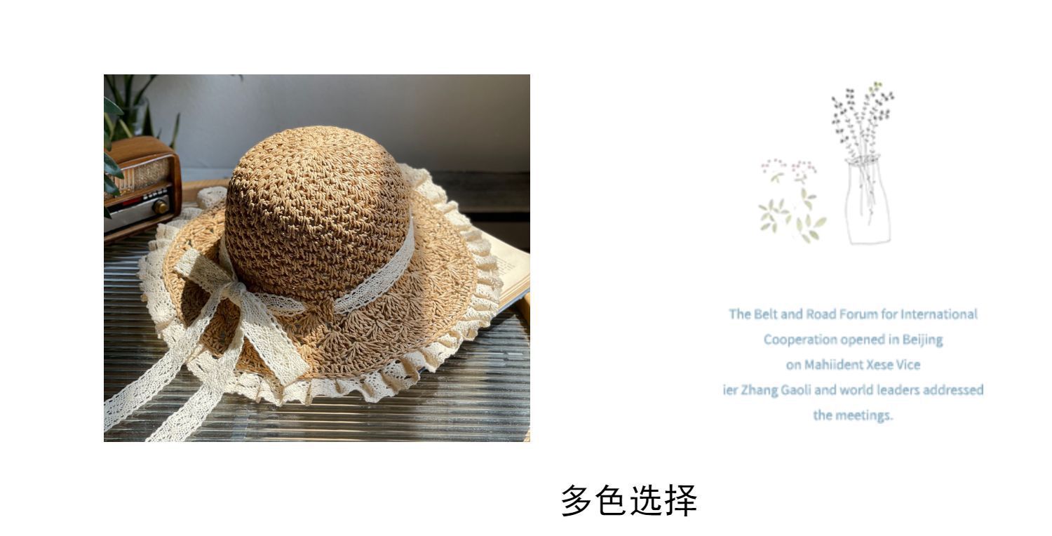 夏季出游防晒手工草编帽女沙滩海边户外太阳帽蕾丝边钩针遮阳帽子