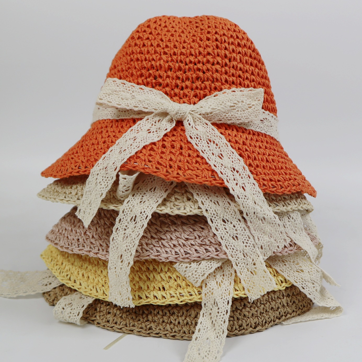 夏季儿童透气遮阳帽纸草小檐韩版钩针帽手工草帽太阳帽防晒帽子