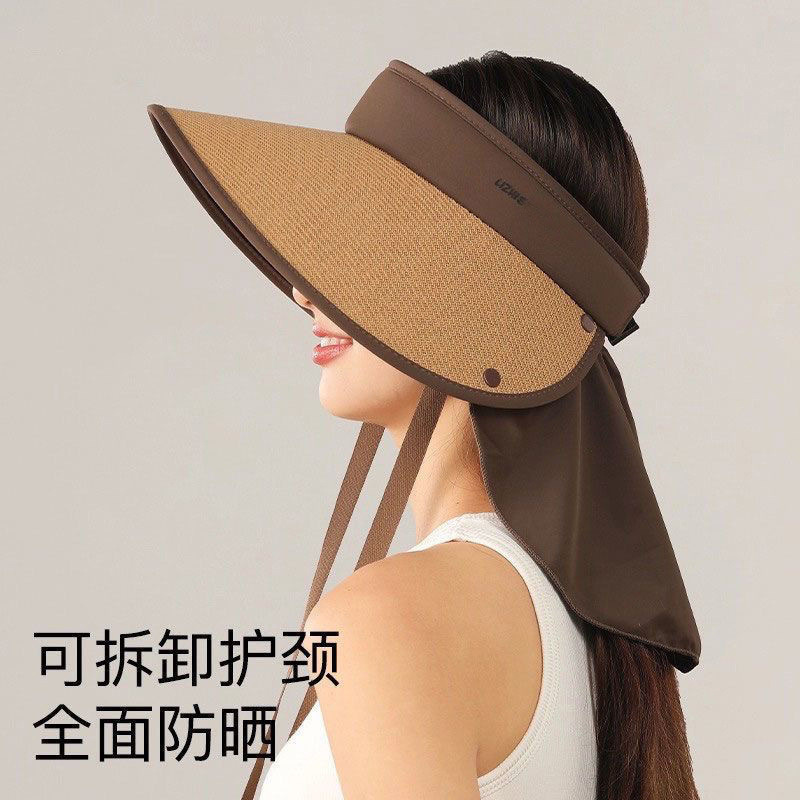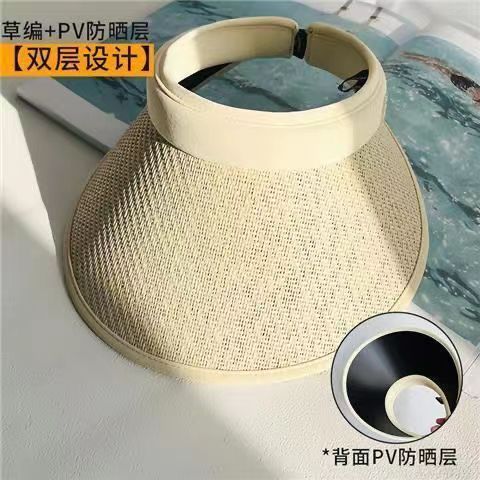 夏季黑胶防晒帽草编可卷遮阳帽时尚百搭空顶帽户外骑行夏凉帽