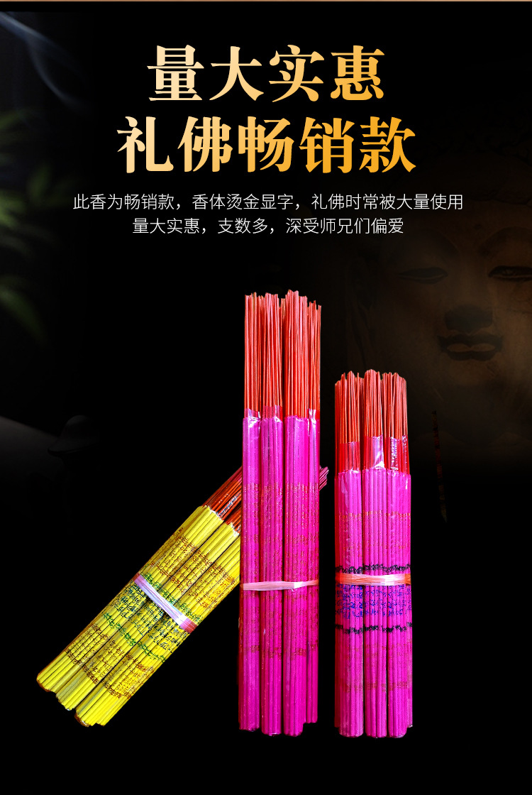 佛香批发 扎仔香 天然家用寺庙供佛香竹签香 烫金显字香 厂家直销