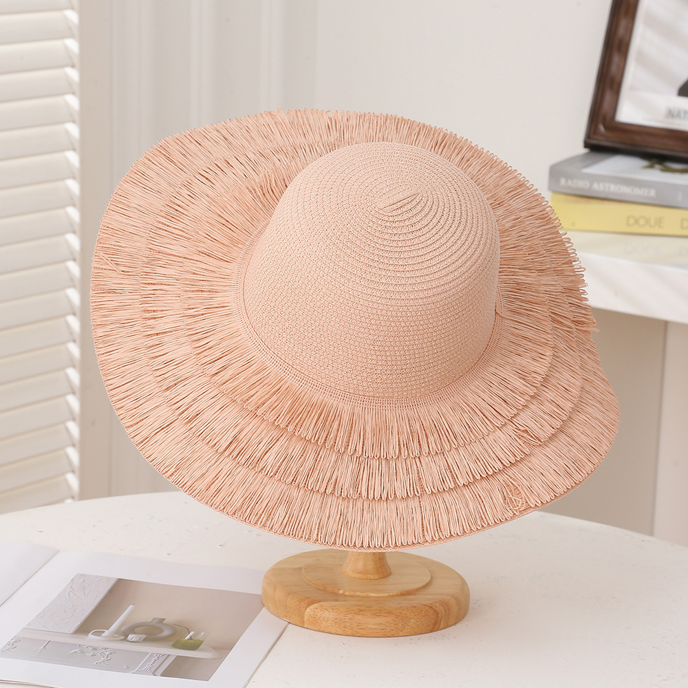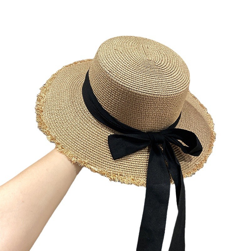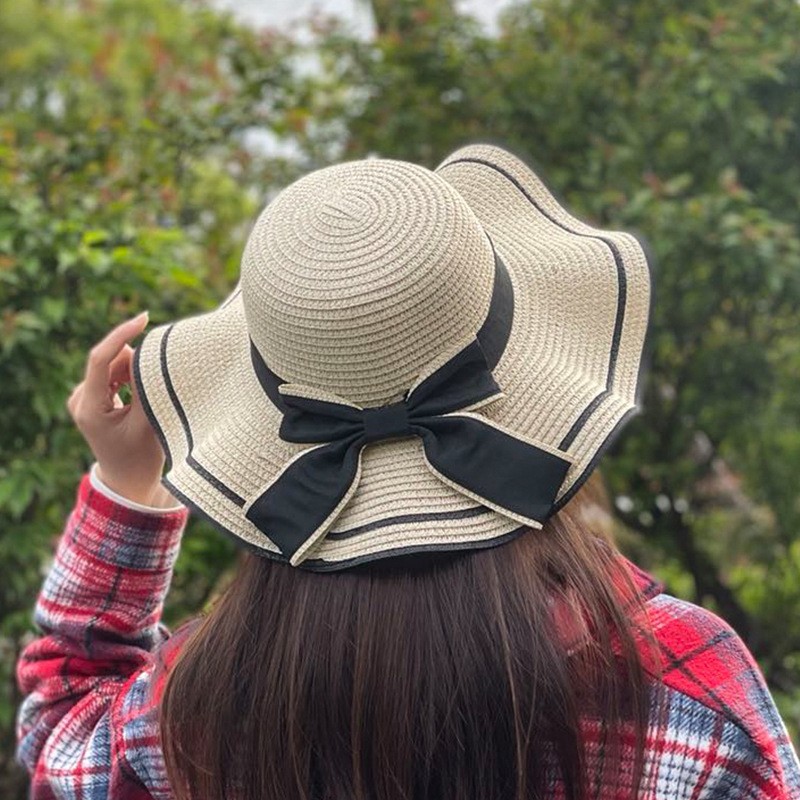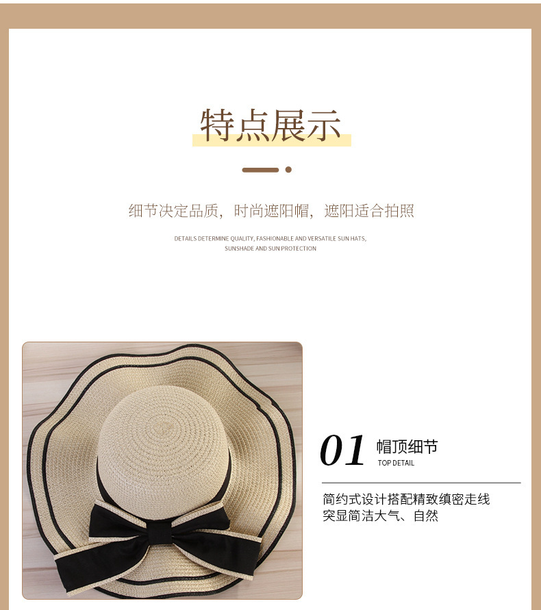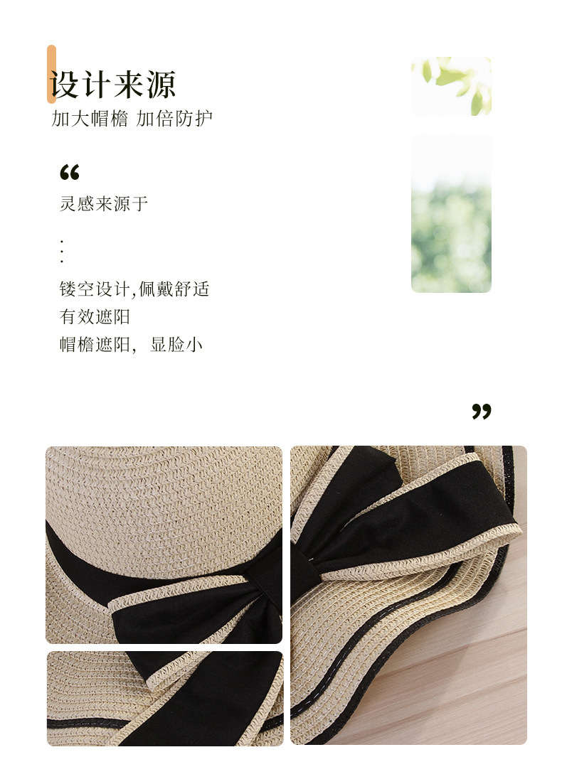 蝴蝶结草帽大全女夏季户外沙滩帽大檐飘带遮阳帽珍珠飘带防晒帽