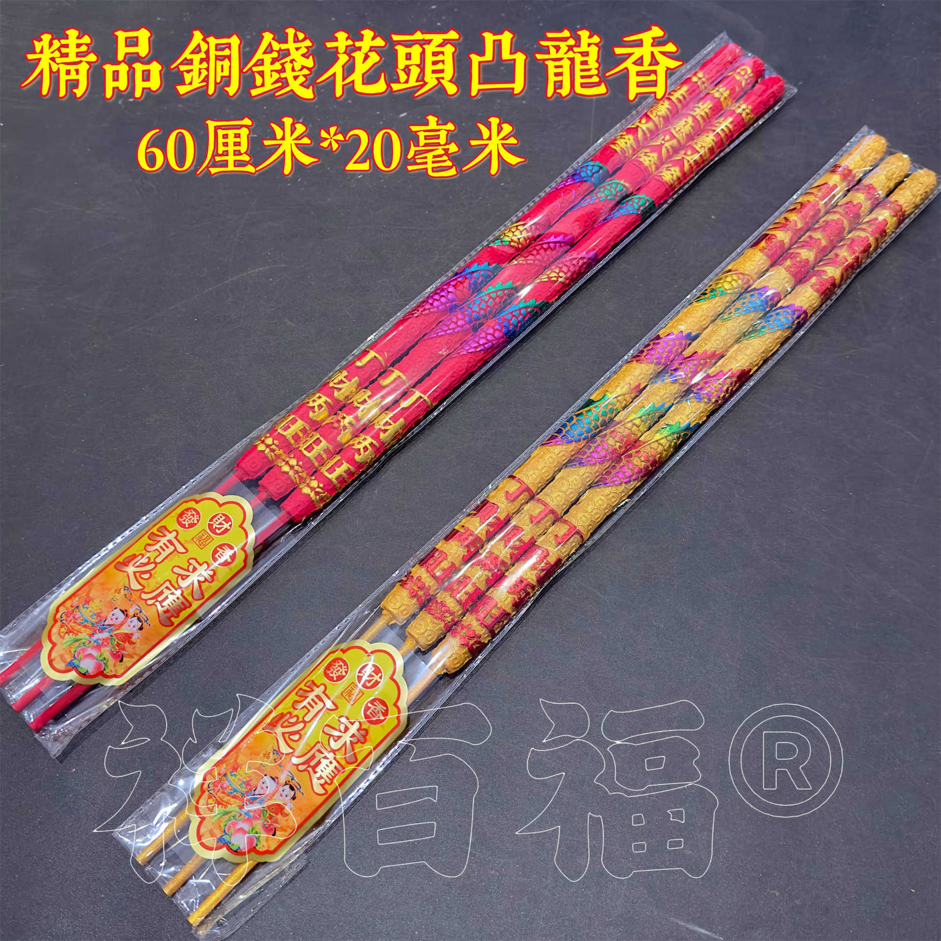 佛香厂家批发五彩凸龙香60厘米20毫米凸字香棒香高香铜钱香金钱香