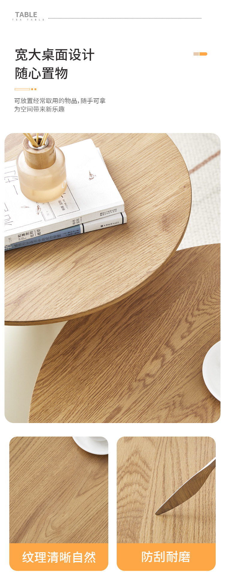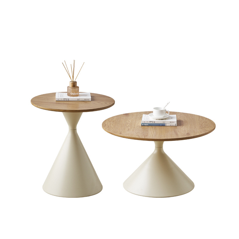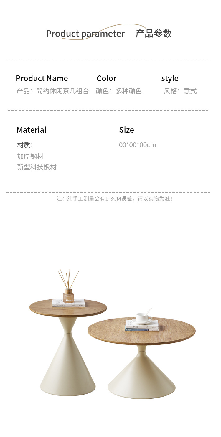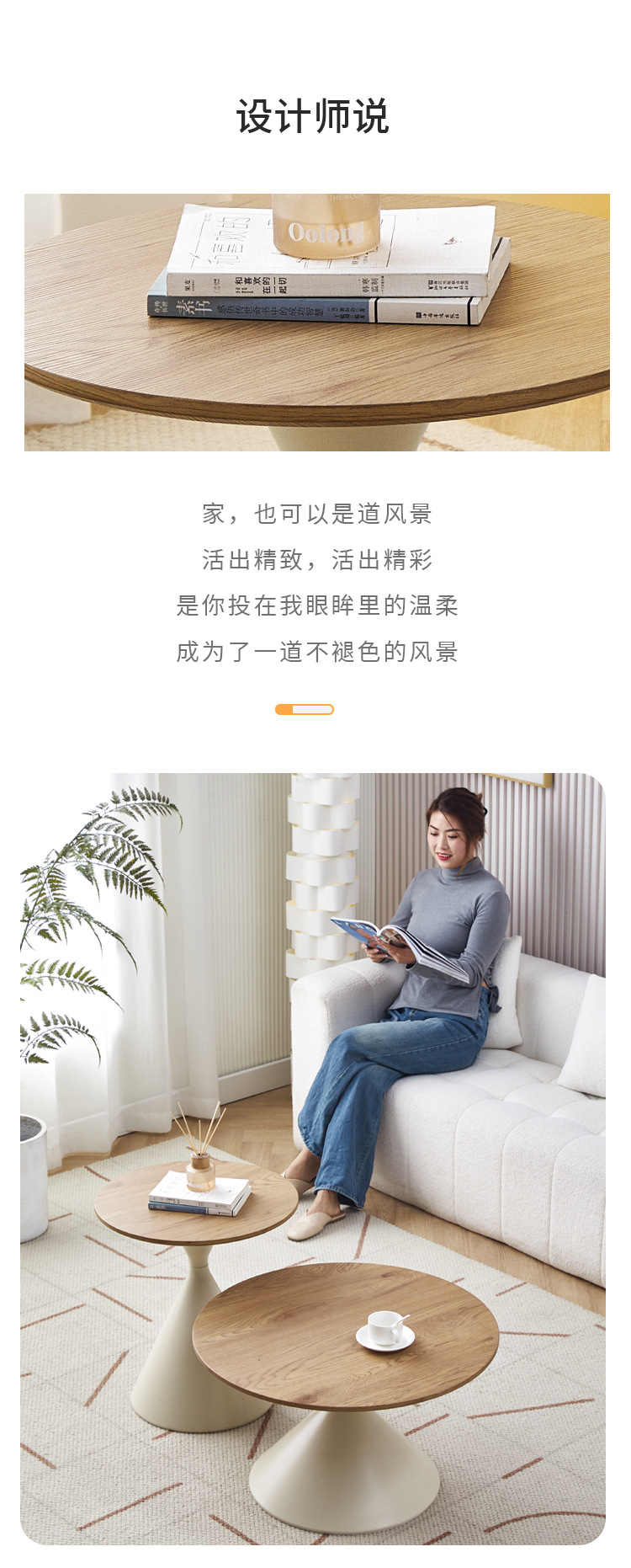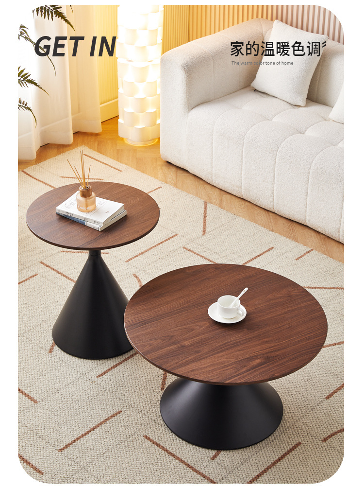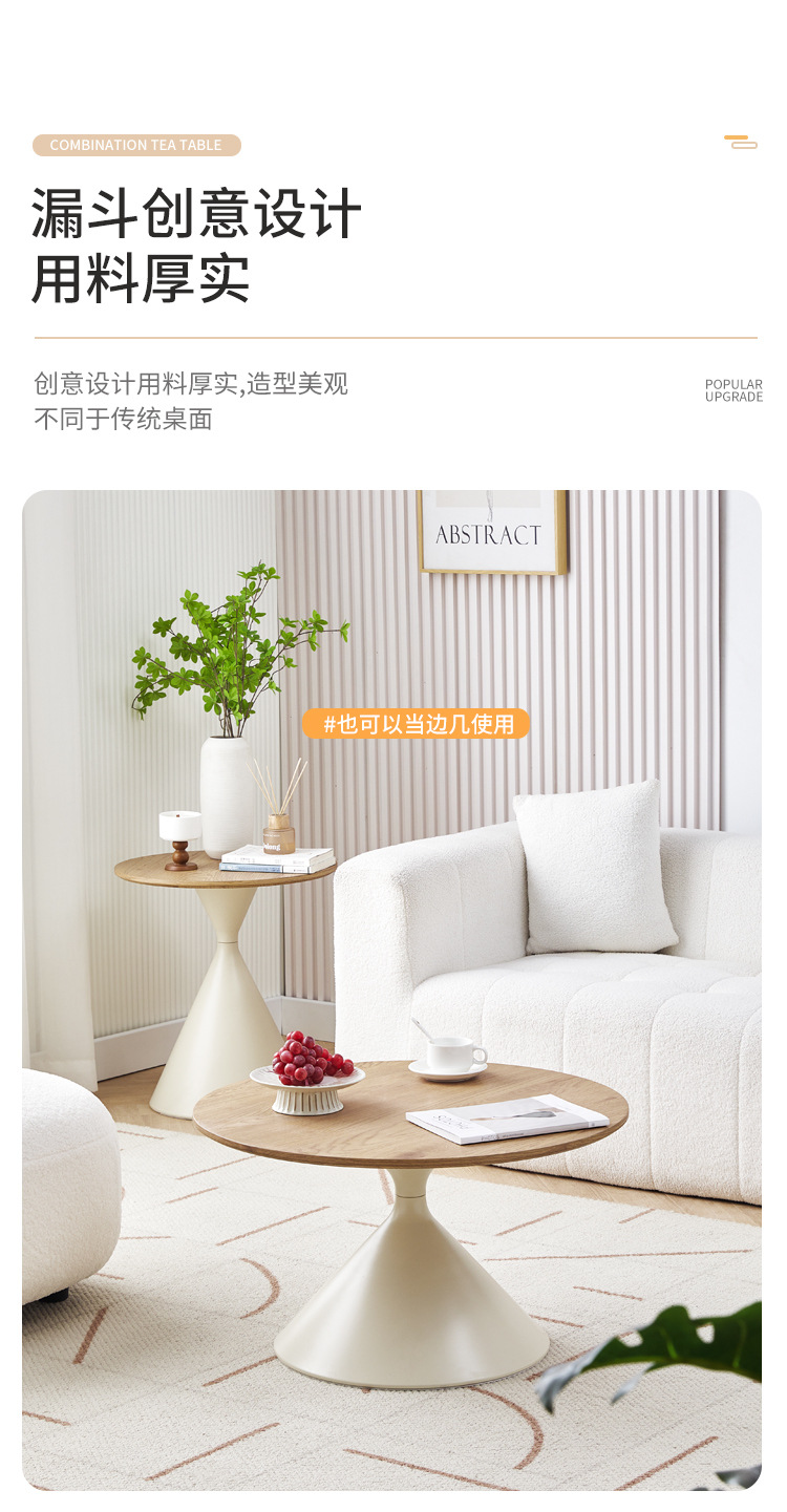 奶油风碳钢茶几家用极简客厅小户型现代简约高级感圆形可移动边几