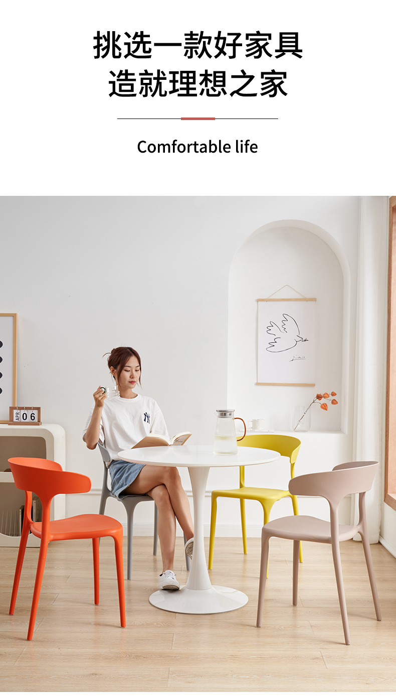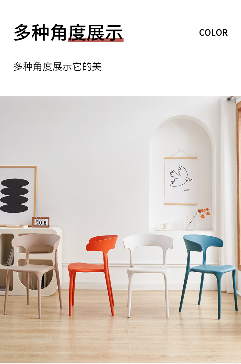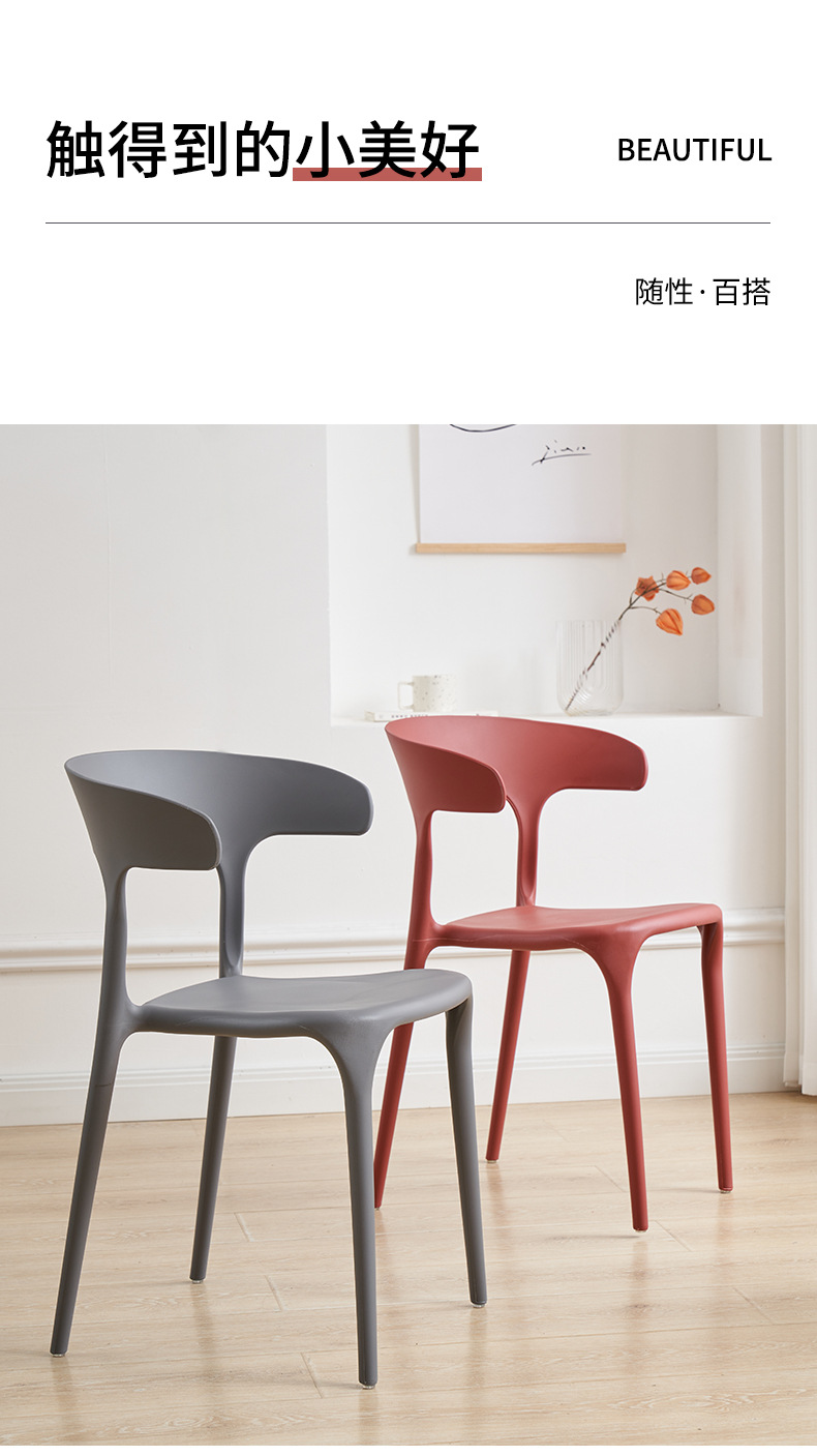 北欧简约现代加厚塑料椅子家用餐桌椅可叠放靠背椅凳书桌牛角椅子
