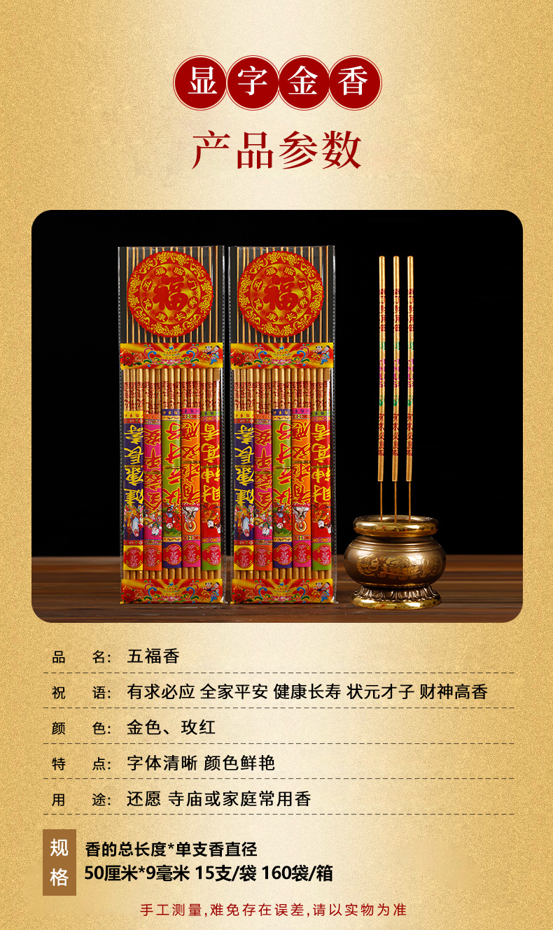 佛香厂家批发五福香拜佛香50厘米15支五路财神香寺庙香