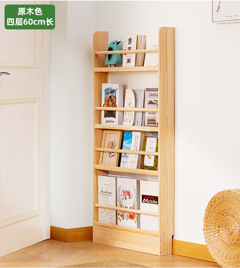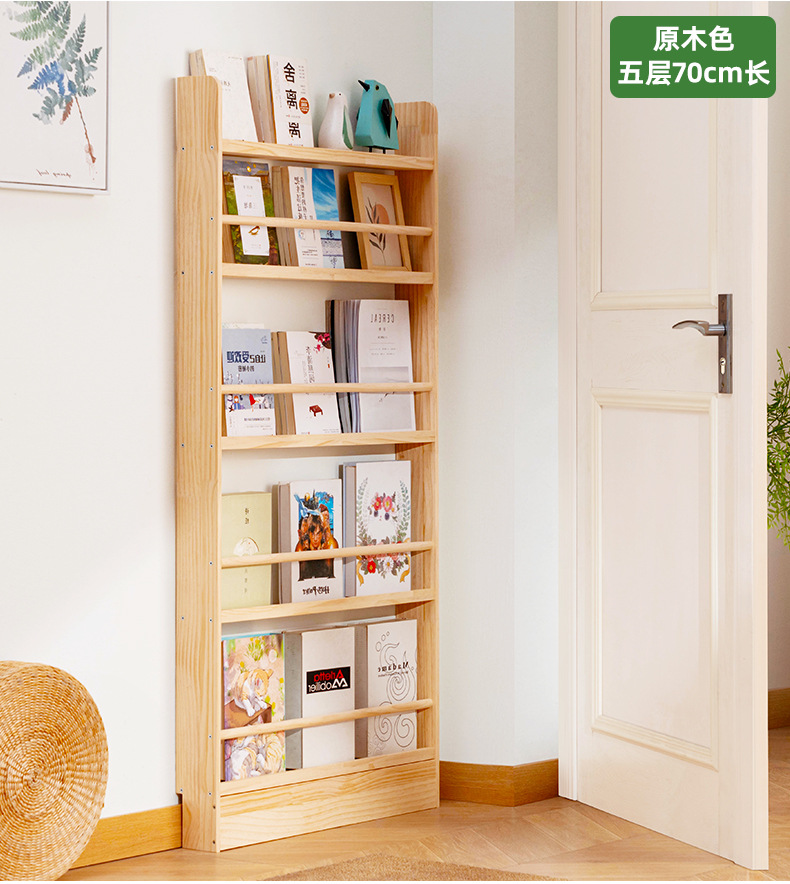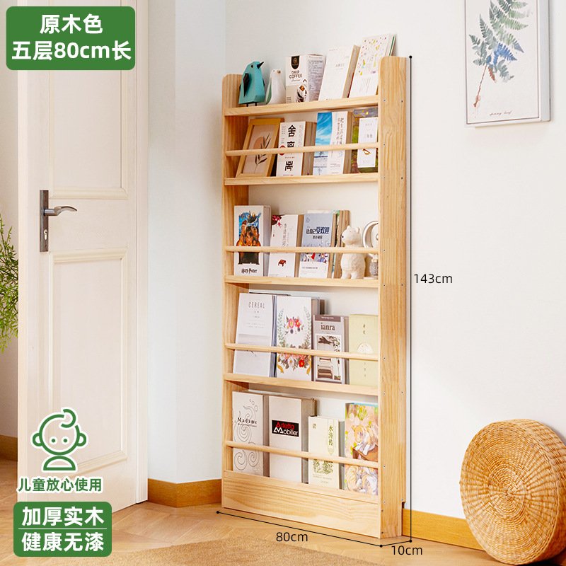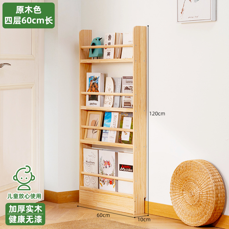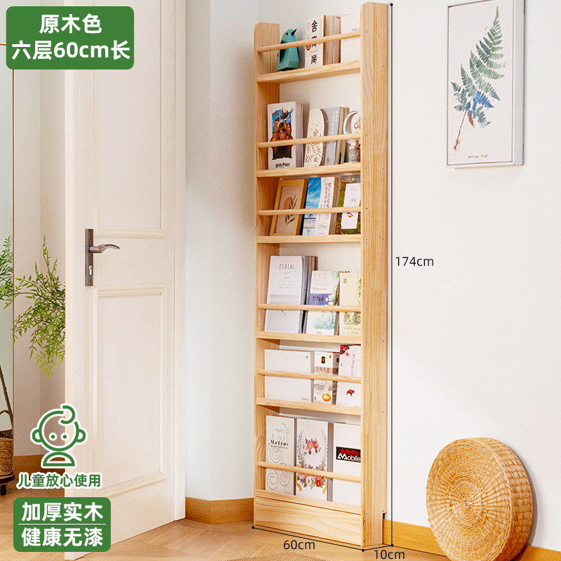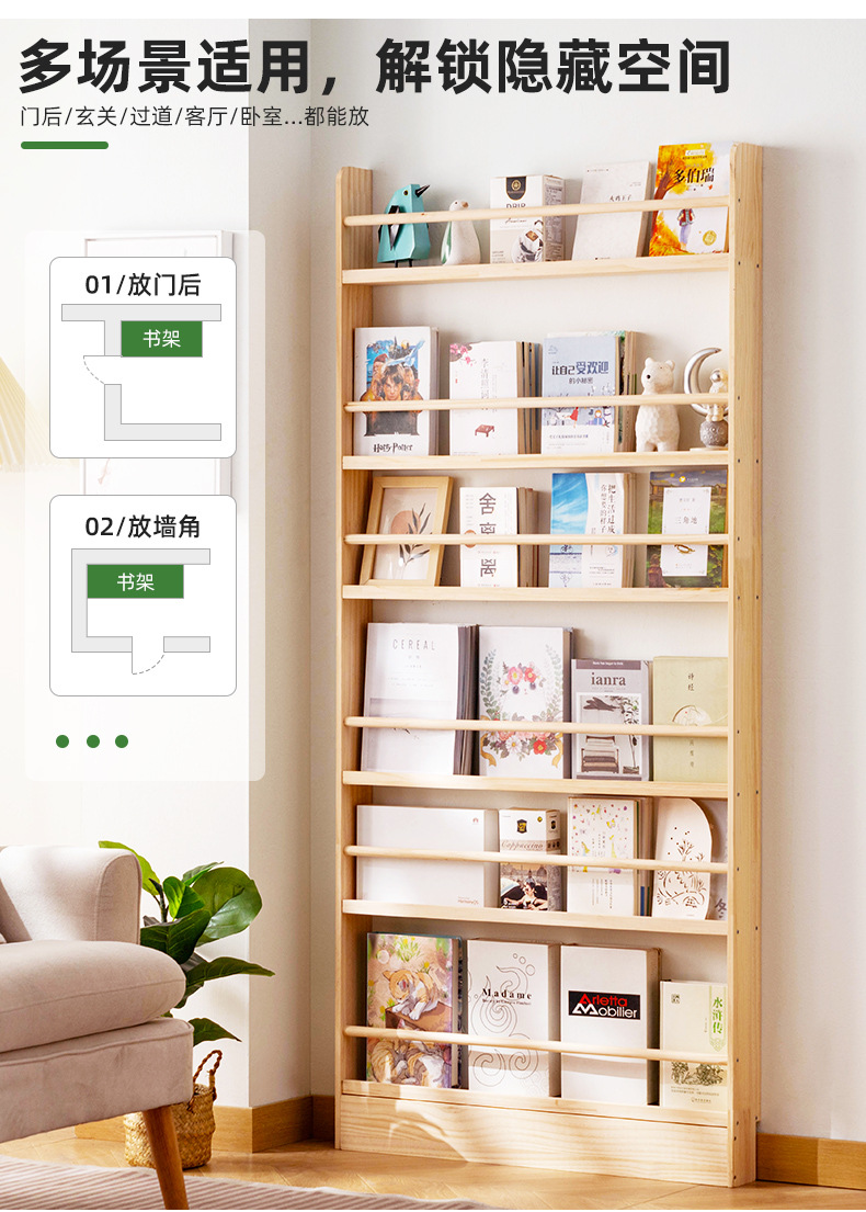 简易实木书架家用书柜落地儿童绘本架靠墙置物架客厅门后收纳书架
