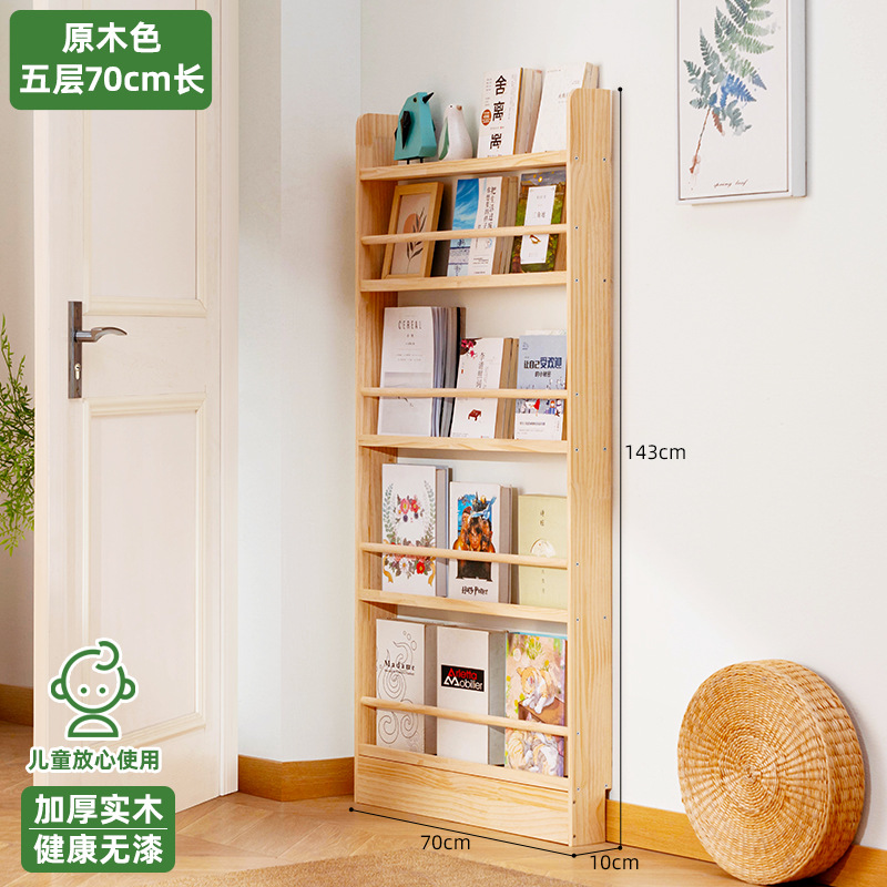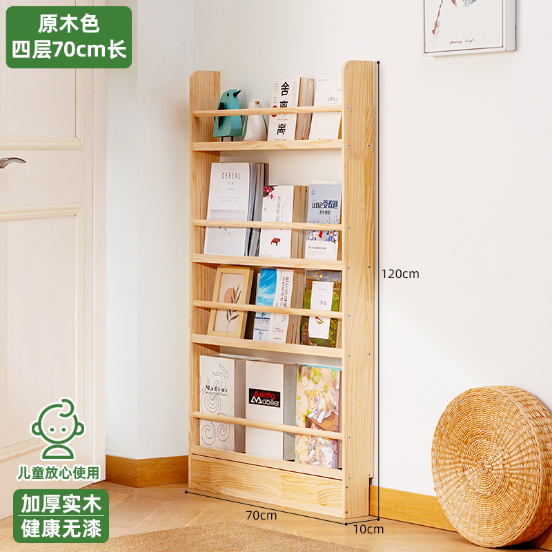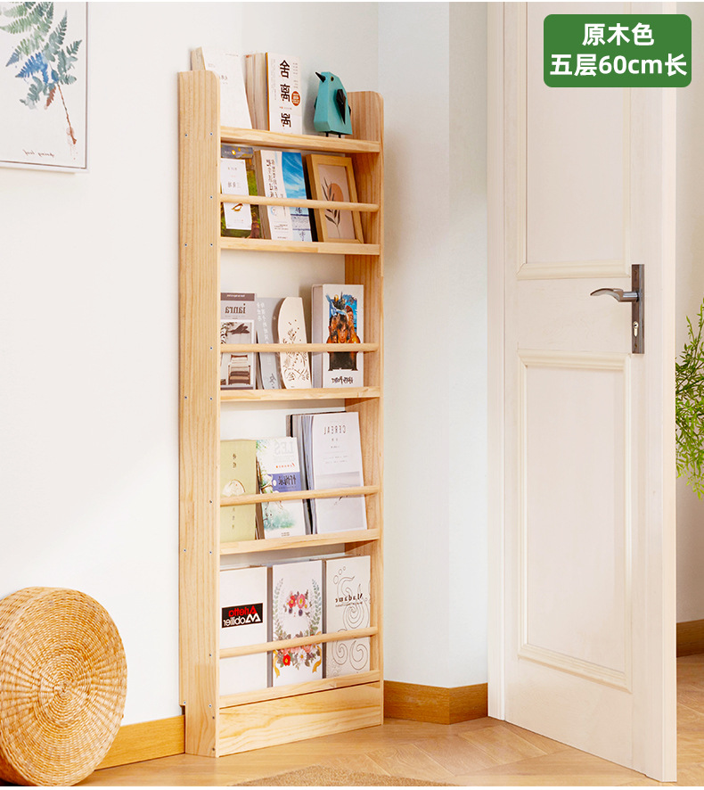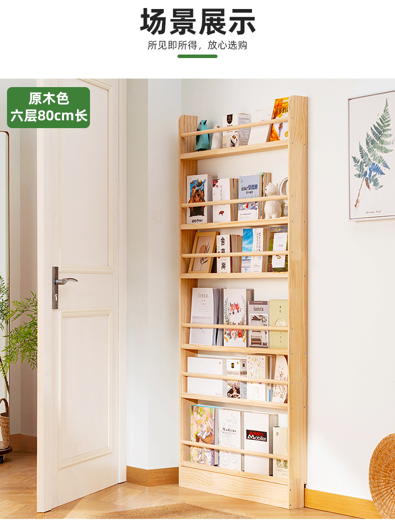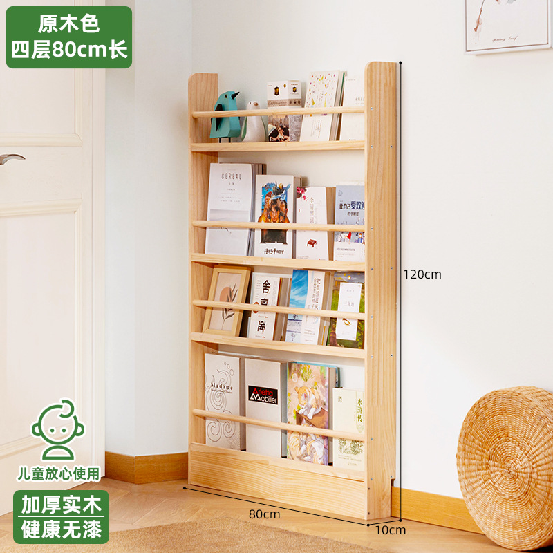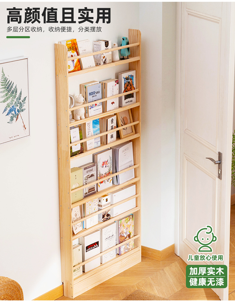 简易实木书架家用书柜落地儿童绘本架靠墙置物架客厅门后收纳书架