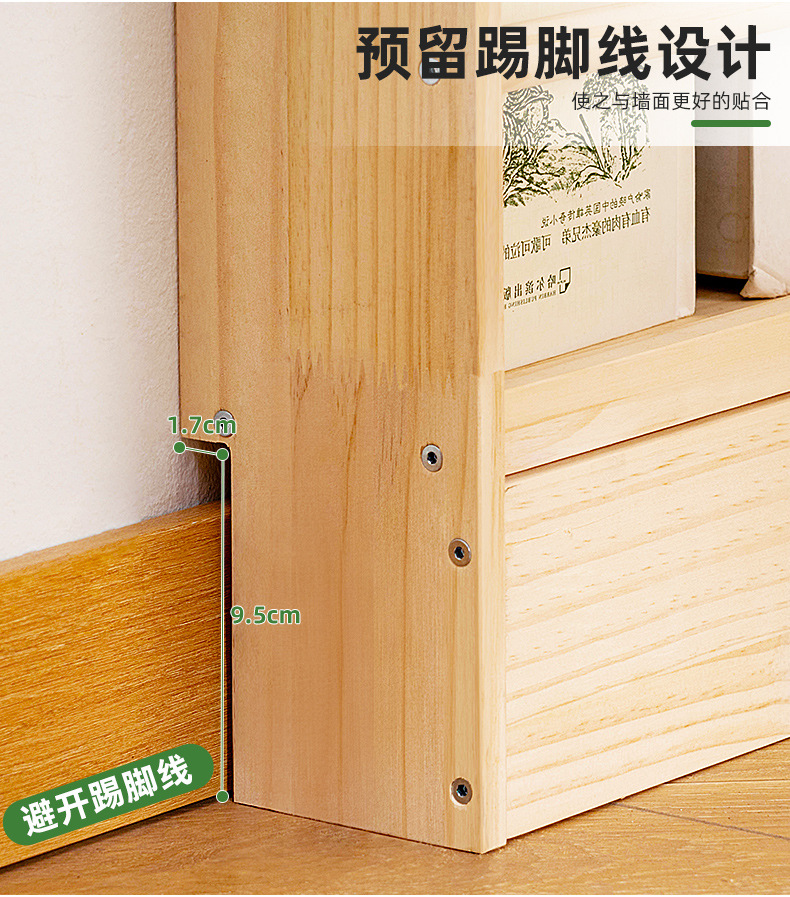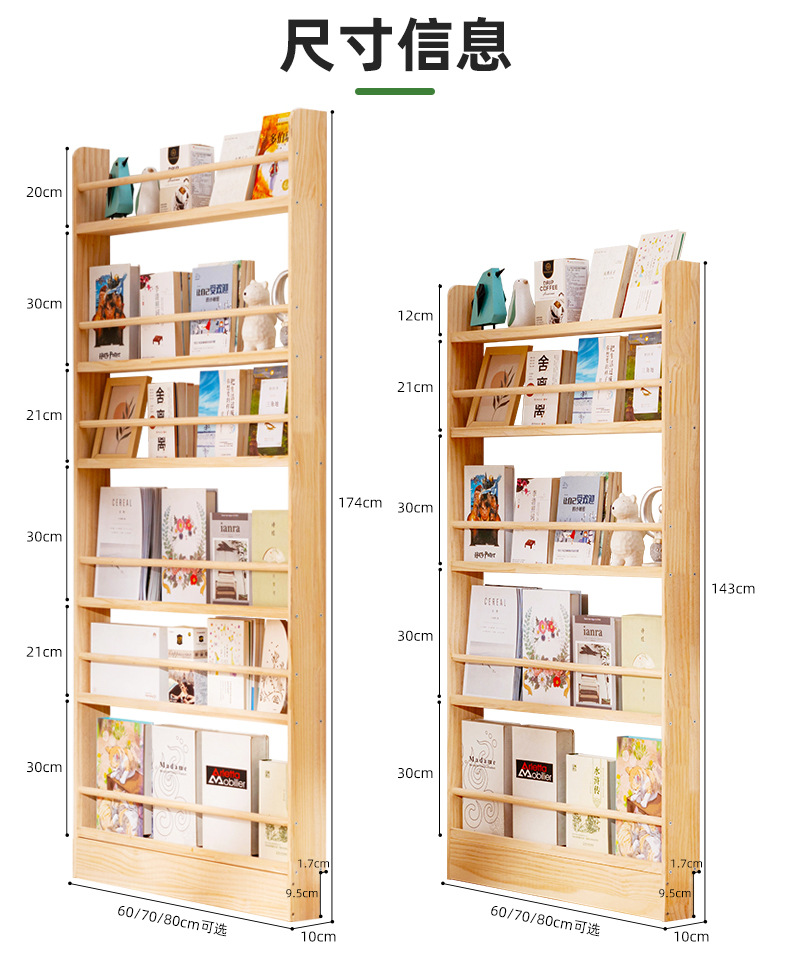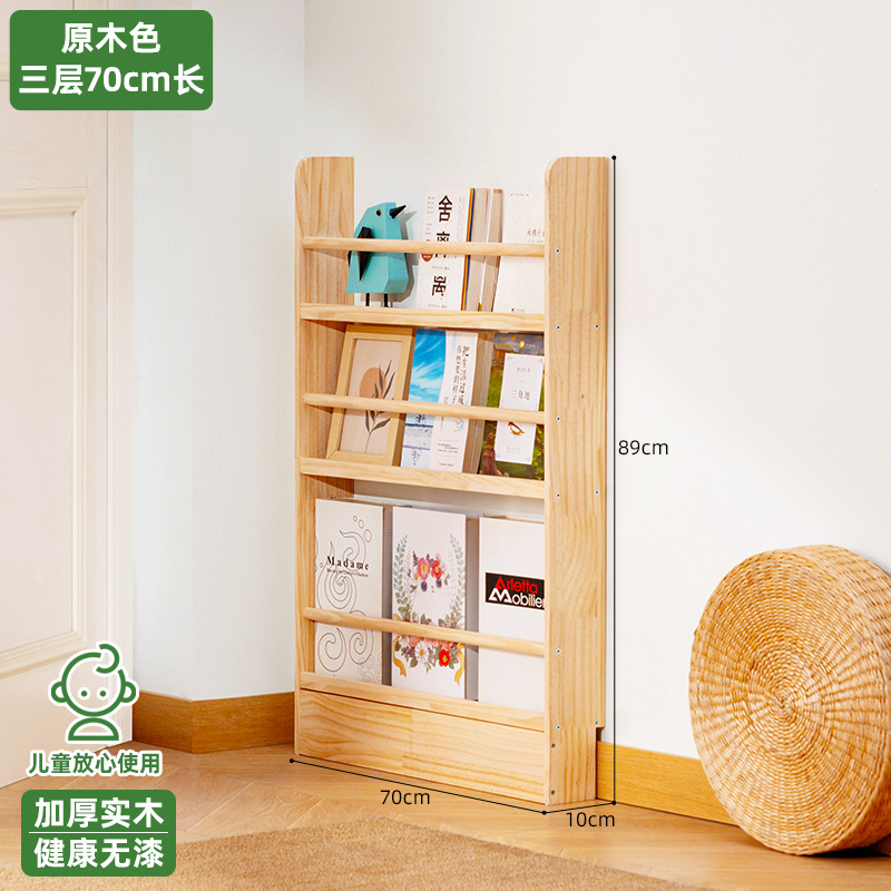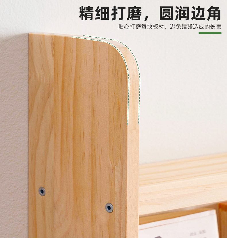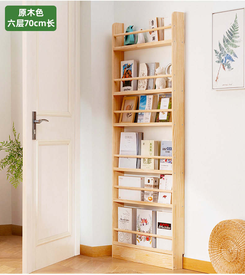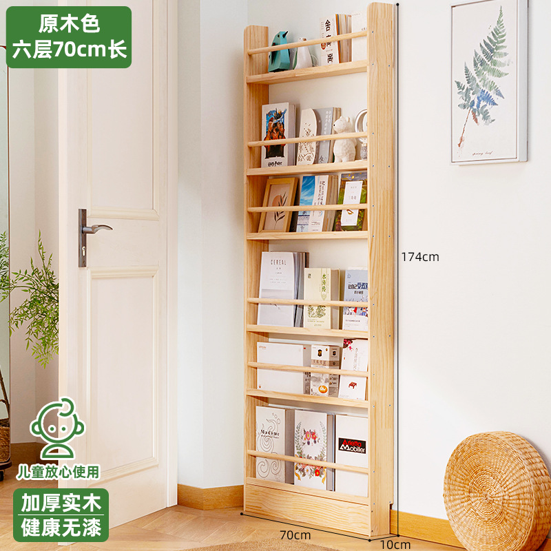简易实木书架家用书柜落地儿童绘本架靠墙置物架客厅门后收纳书架