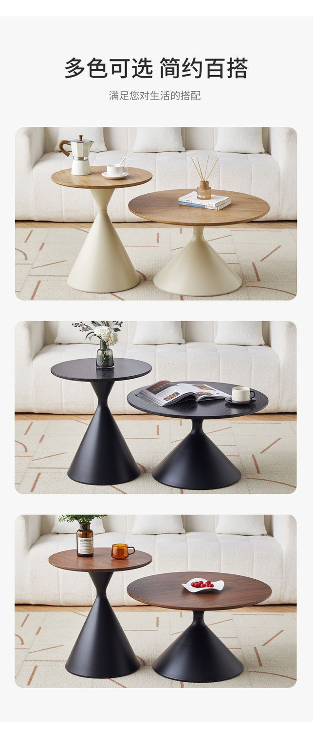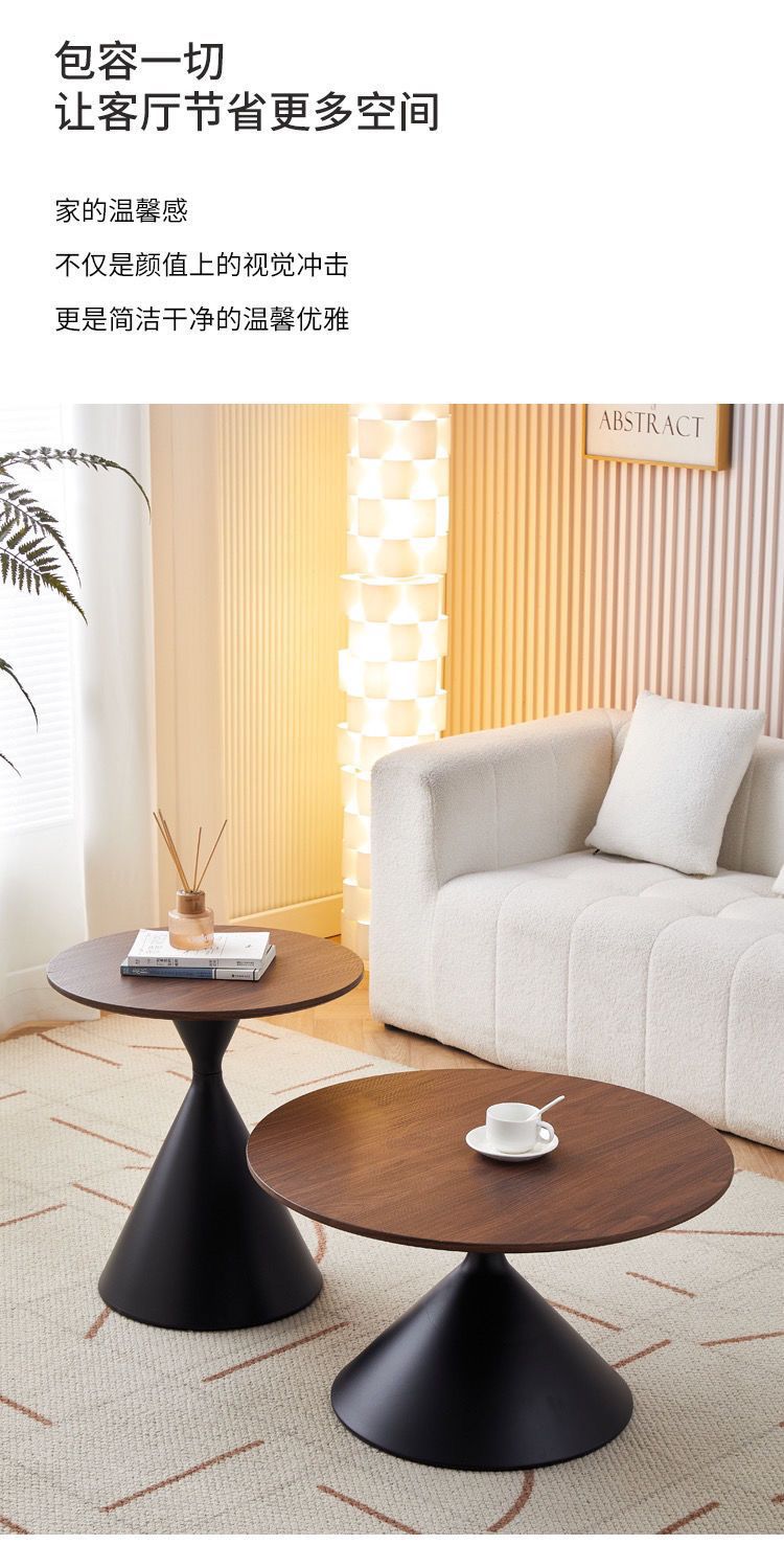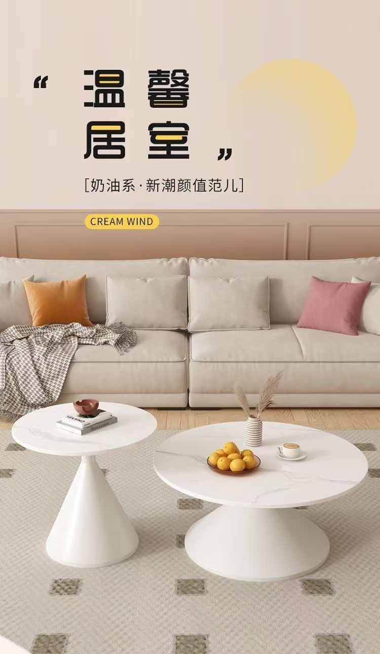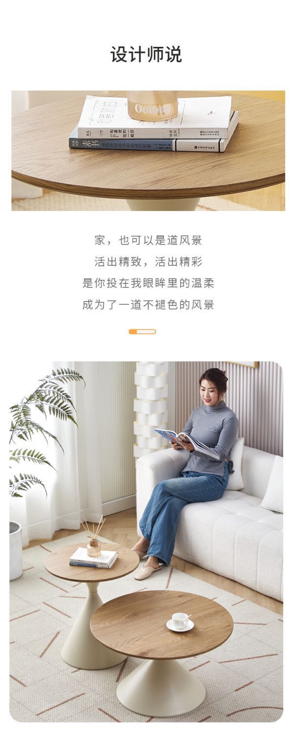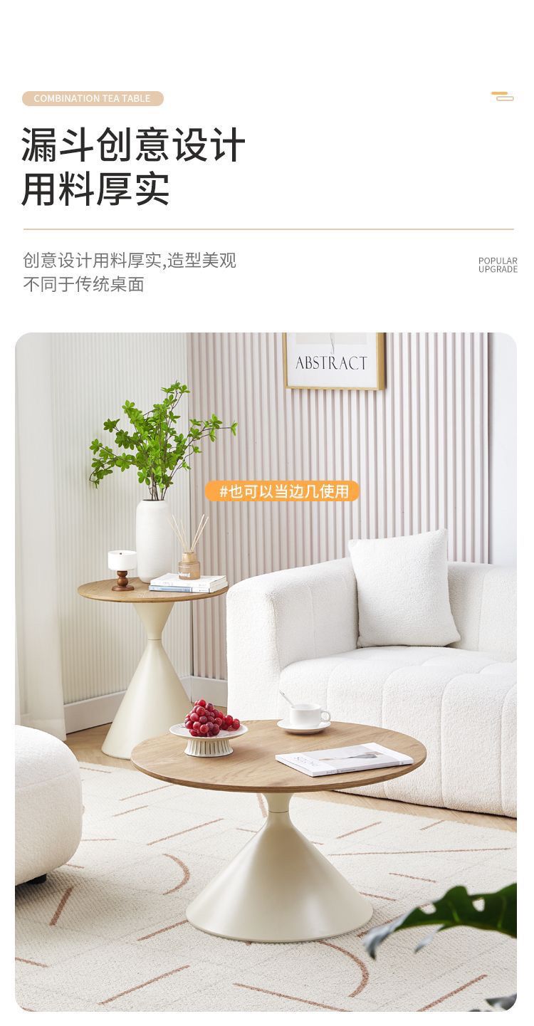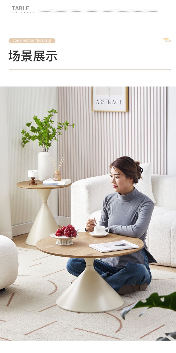 网红奶油风实木茶几北欧家用客厅小户型组合现代茶几简约圆形茶桌