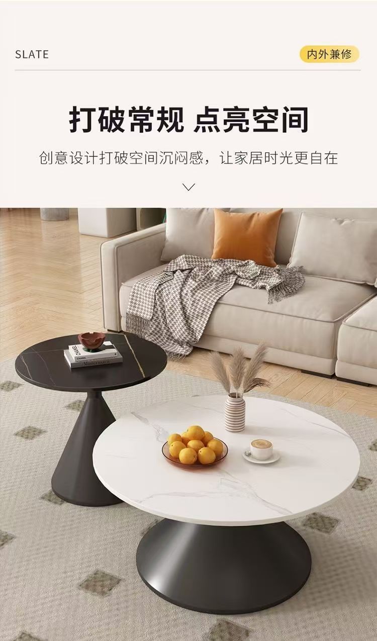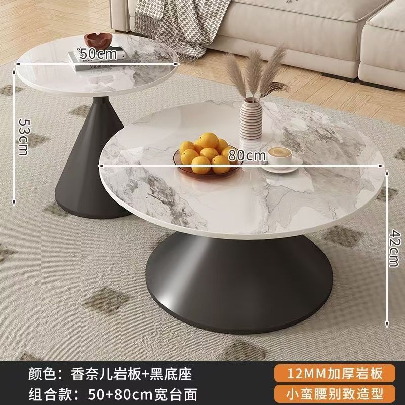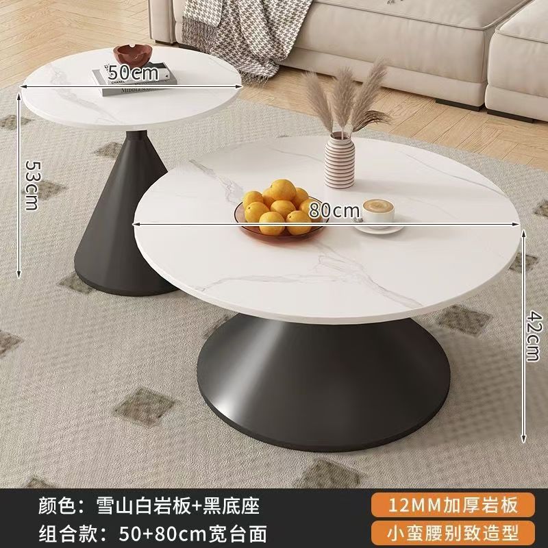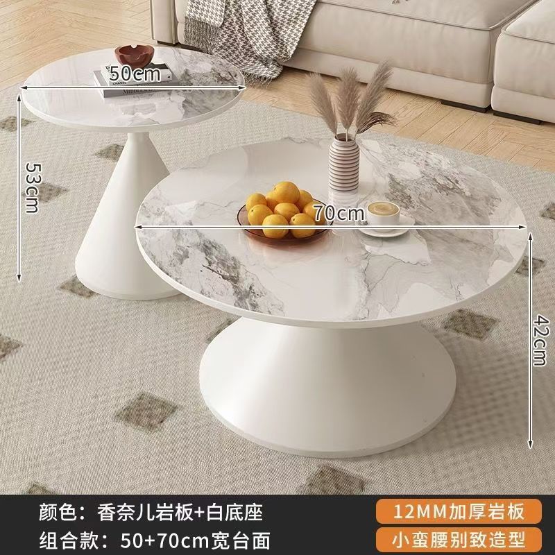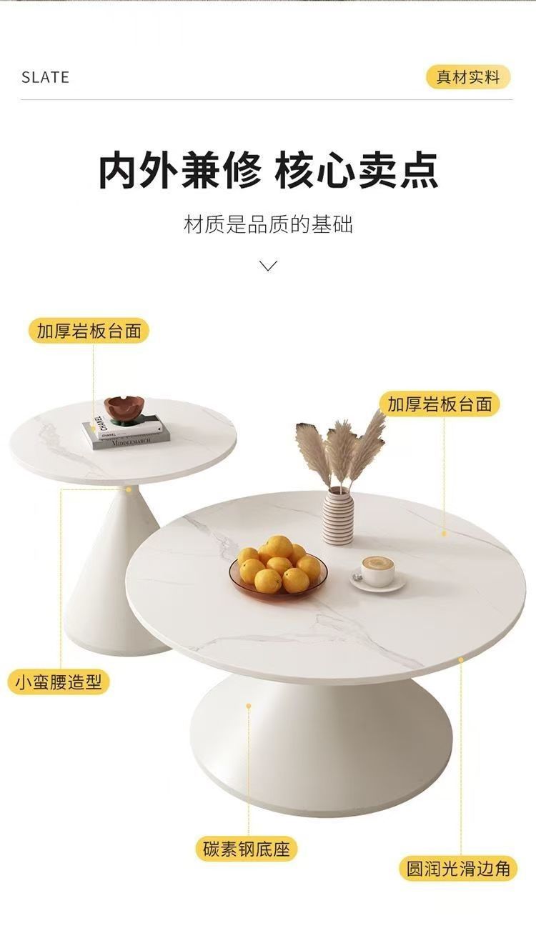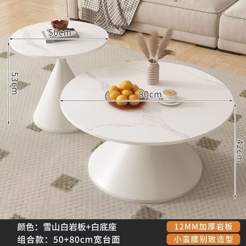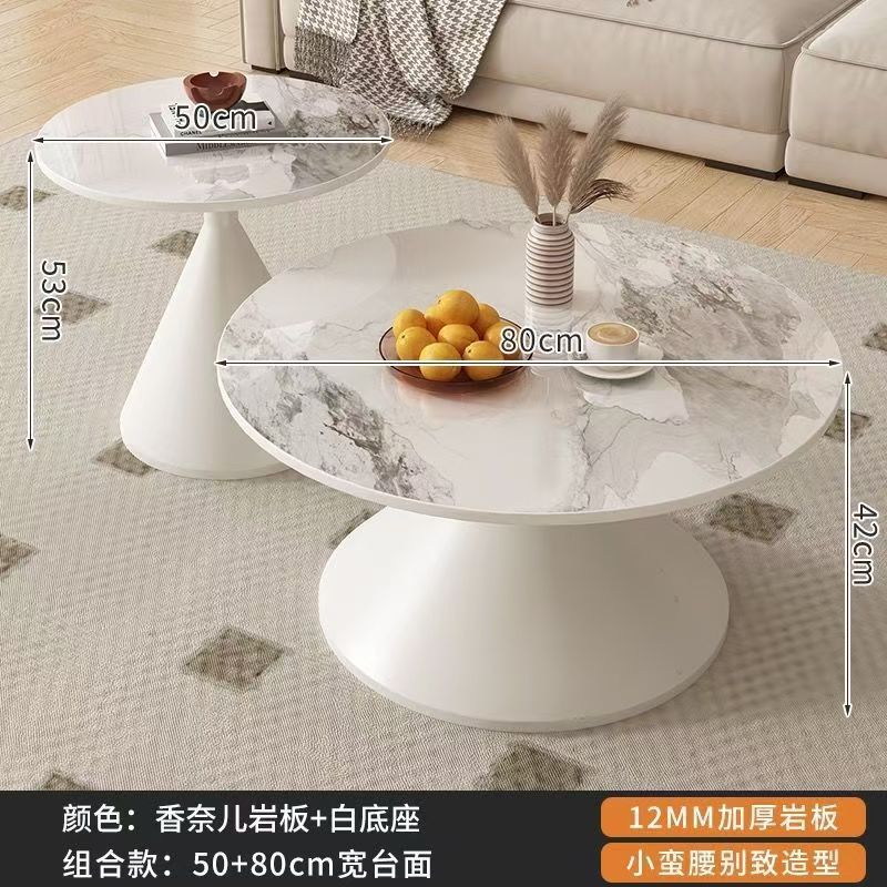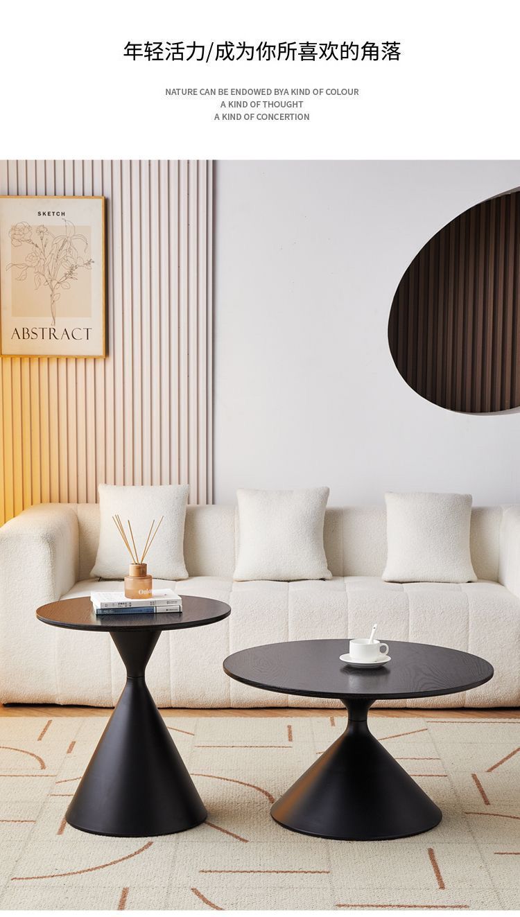网红奶油风实木茶几北欧家用客厅小户型组合现代茶几简约圆形茶桌