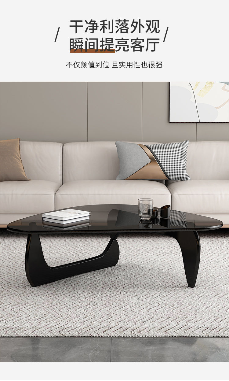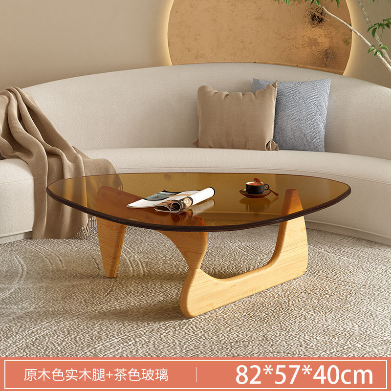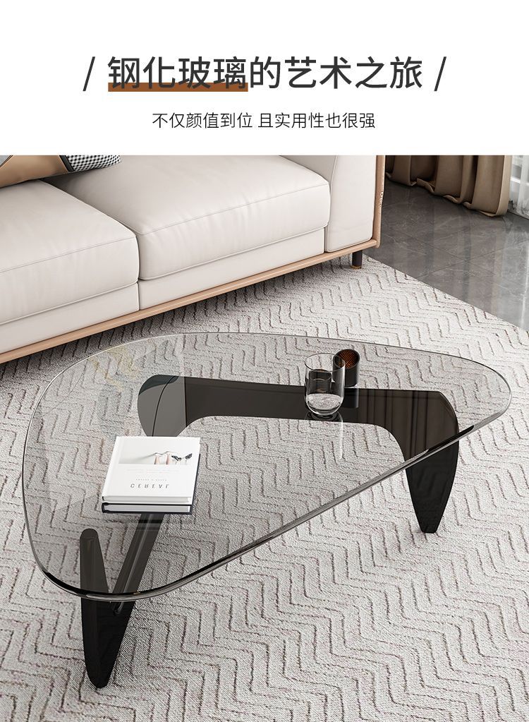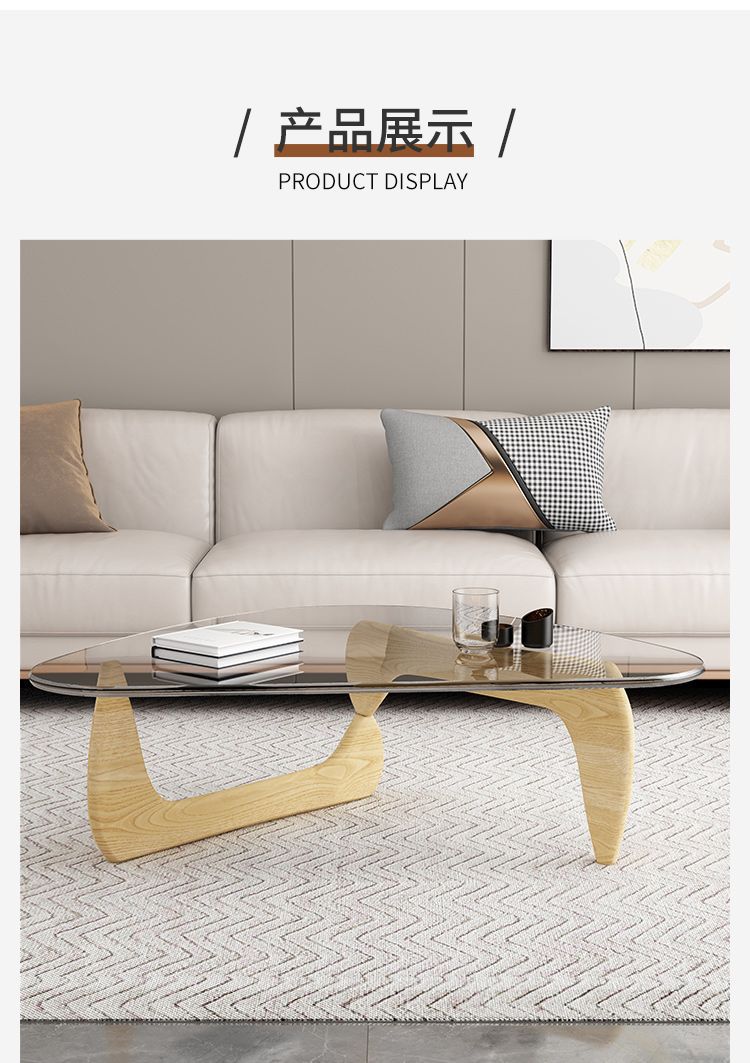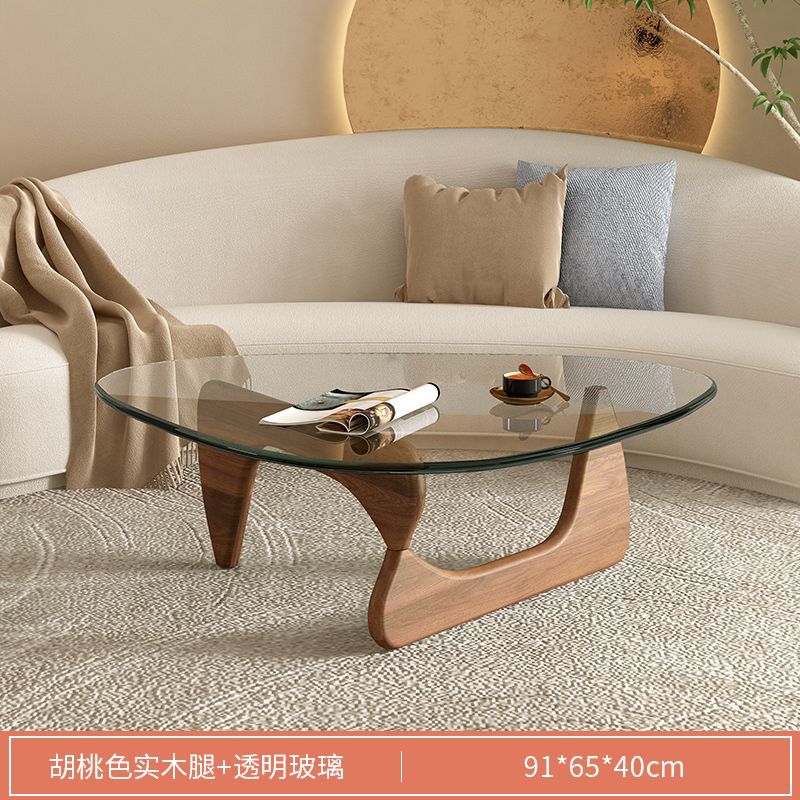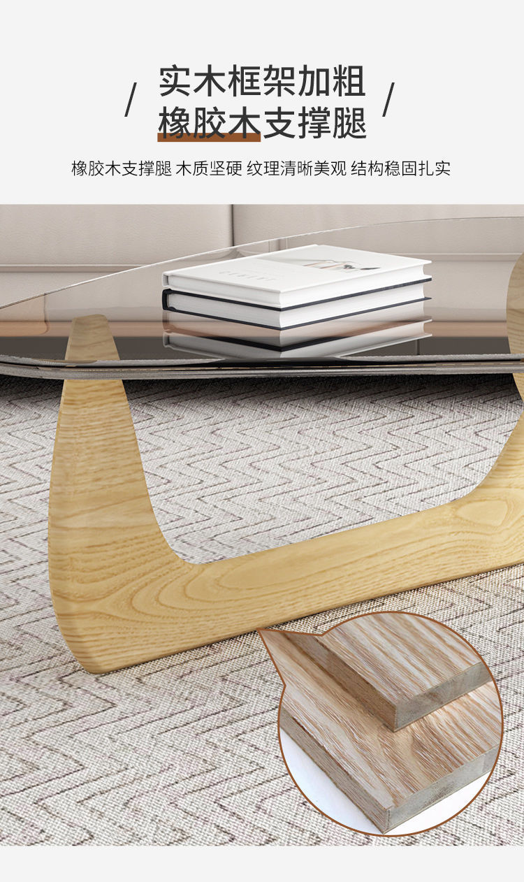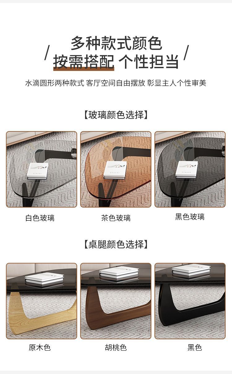 钢化玻璃茶几小户型客厅家用实木极简现代简约野口勇创意圆形茶桌