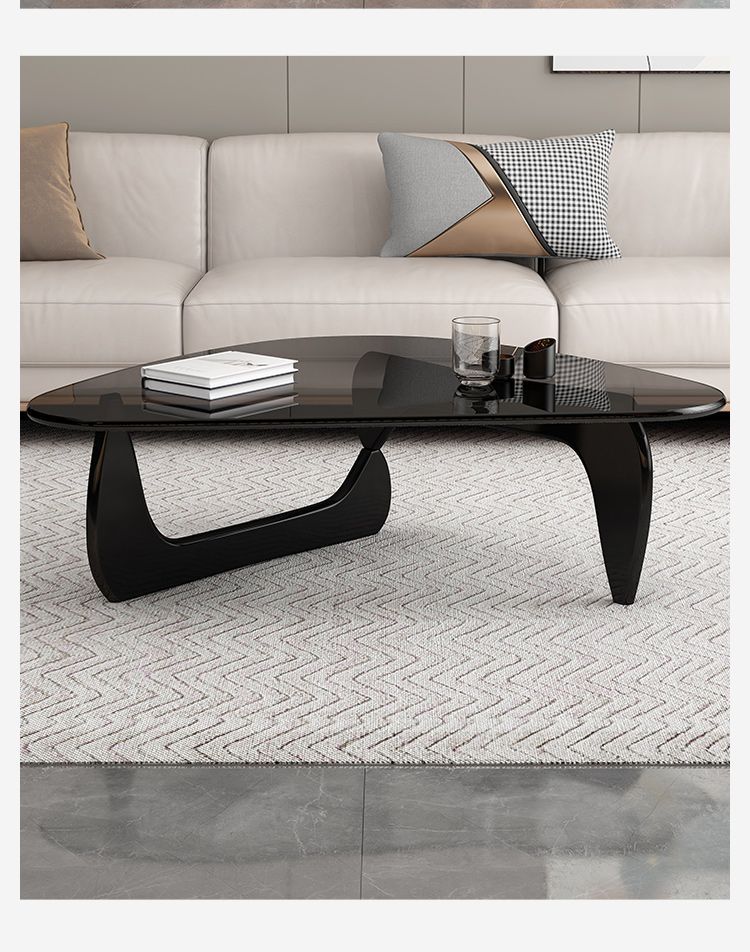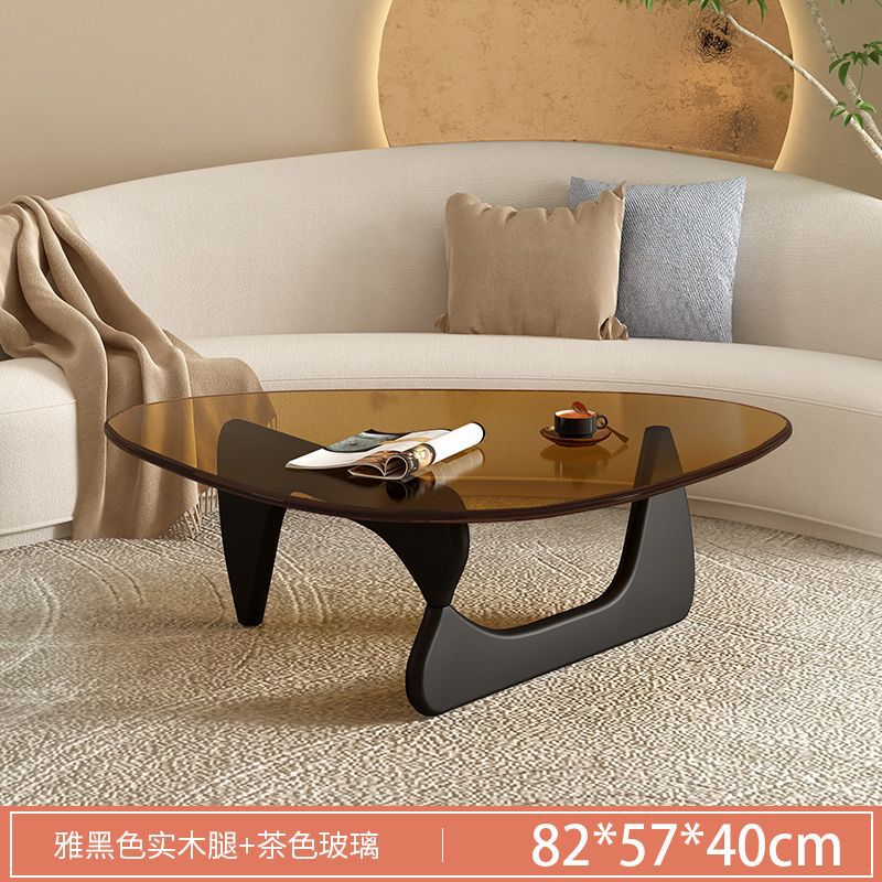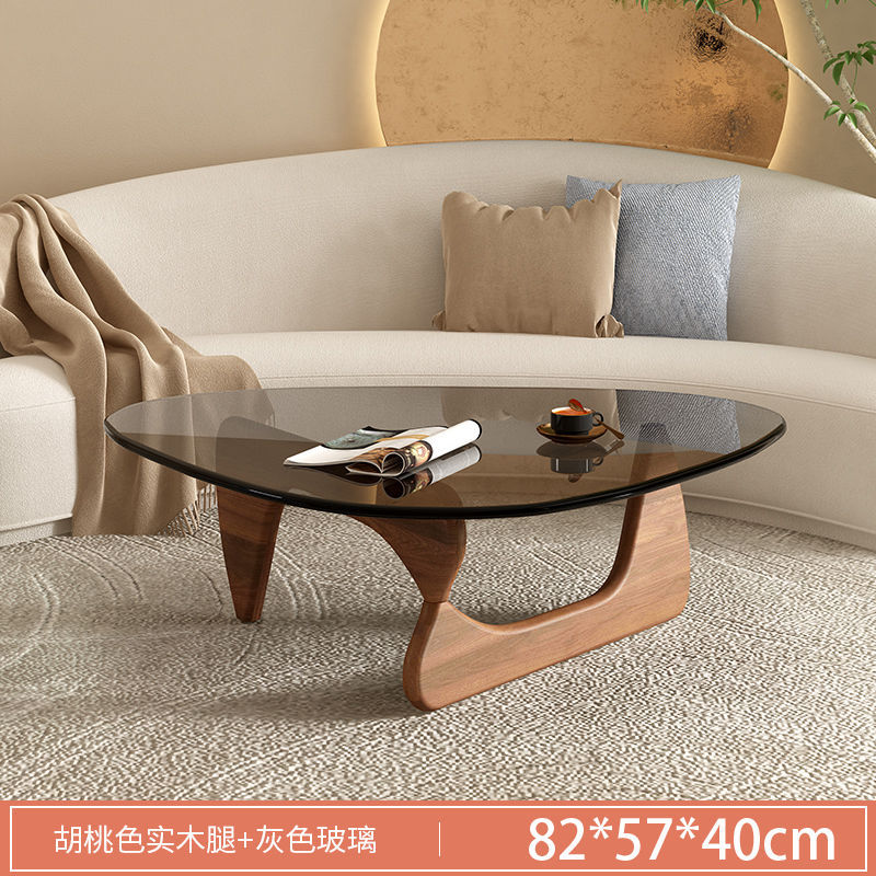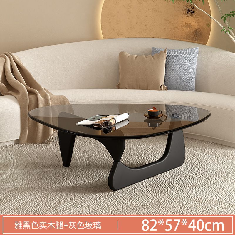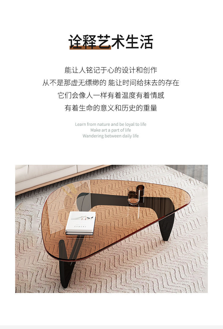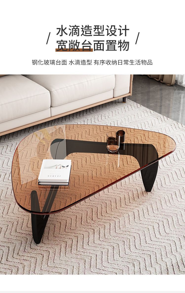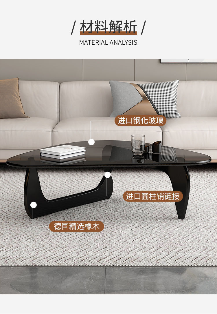 钢化玻璃茶几小户型客厅家用实木极简现代简约野口勇创意圆形茶桌