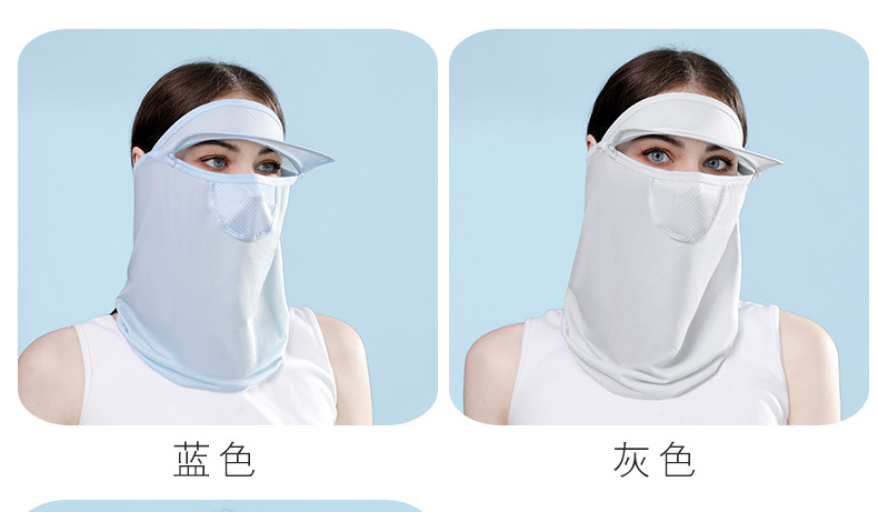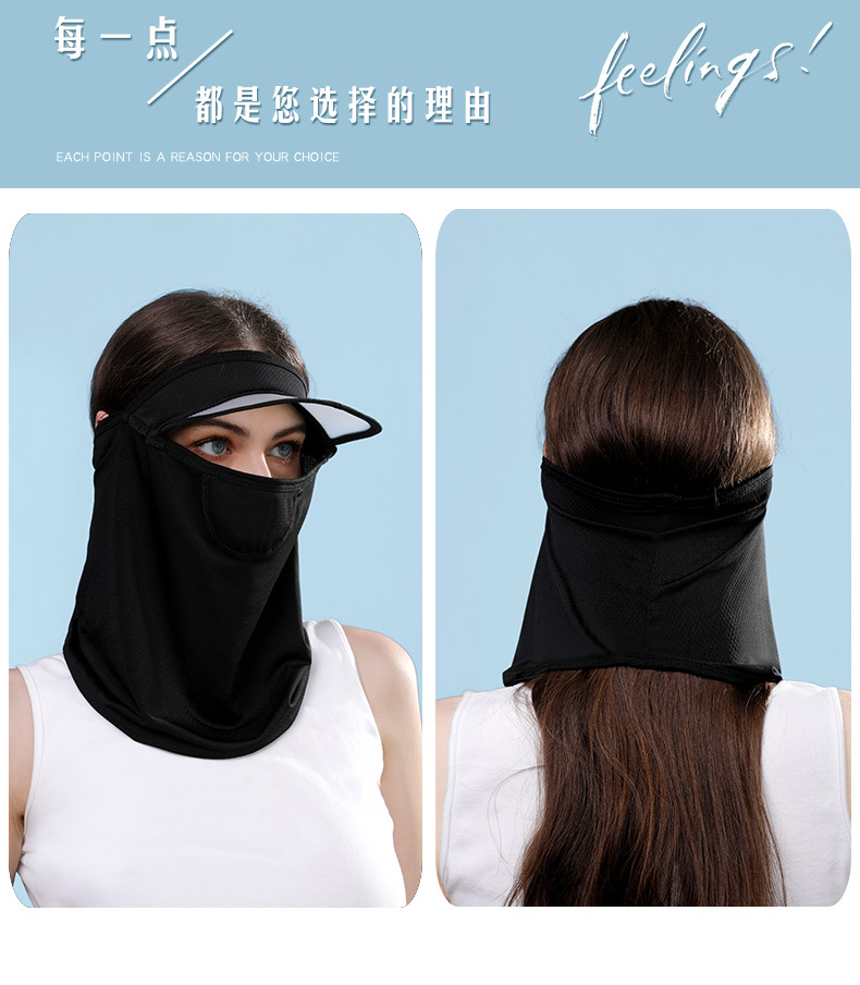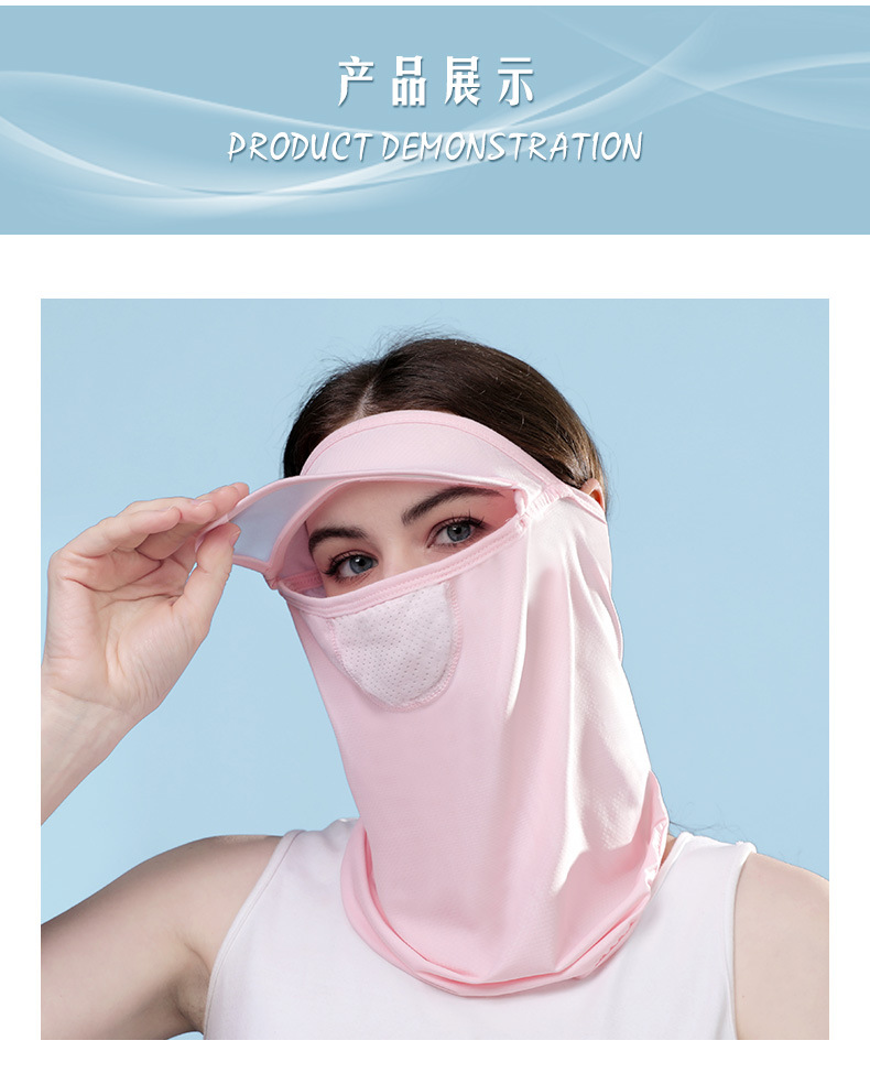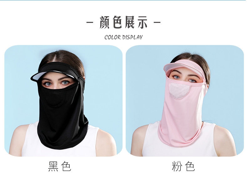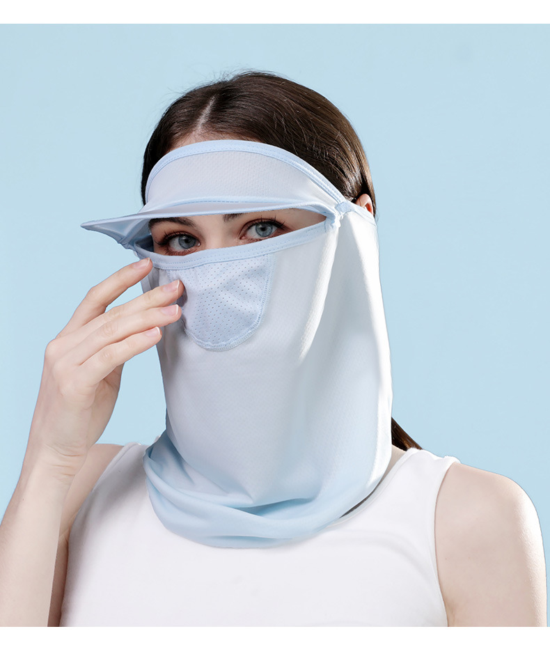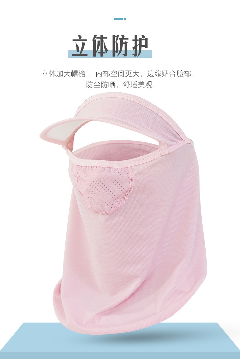 瑞雅春夏防晒面罩带帽檐女冰丝透气网眼护颈护额头遮阳帽防晒口罩