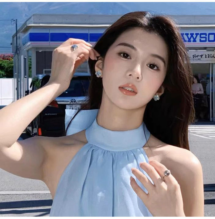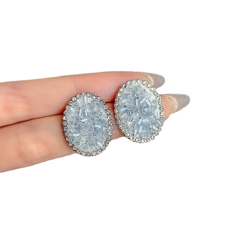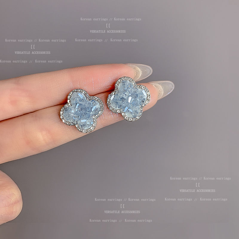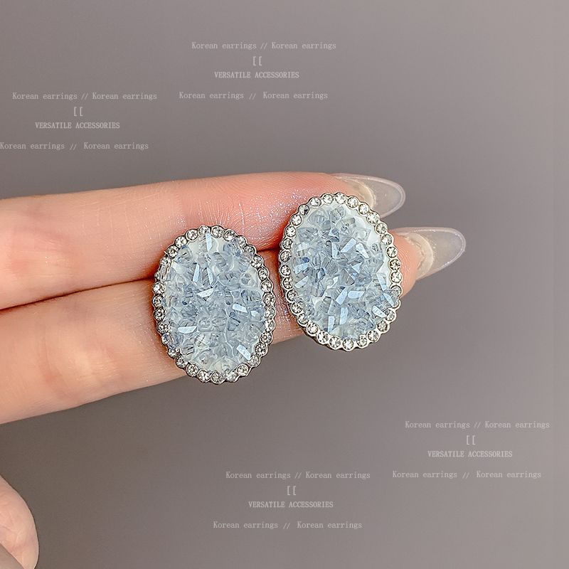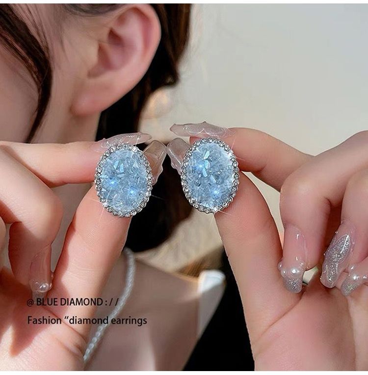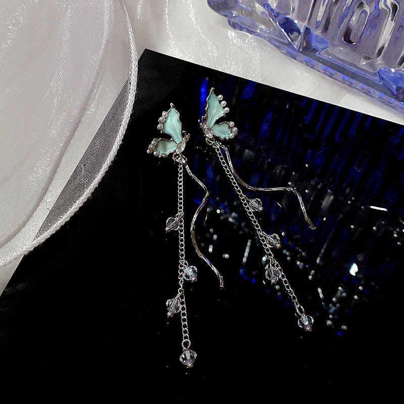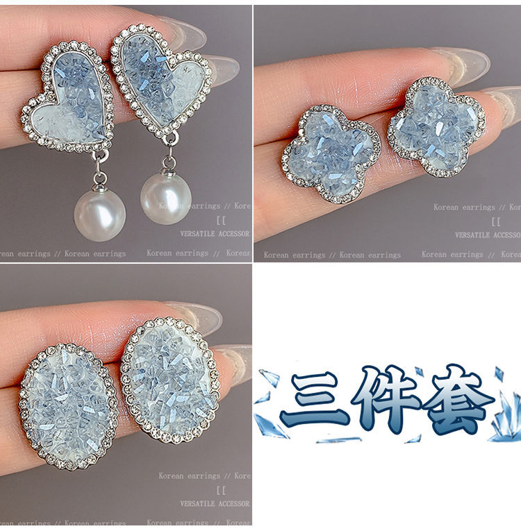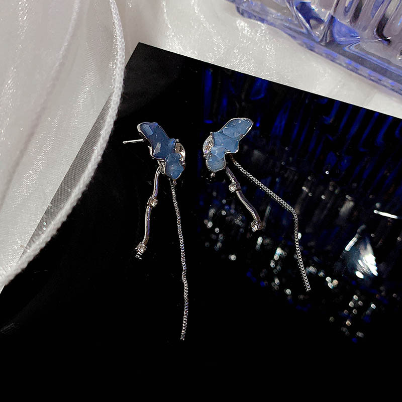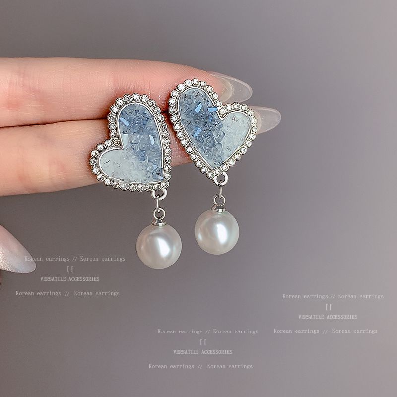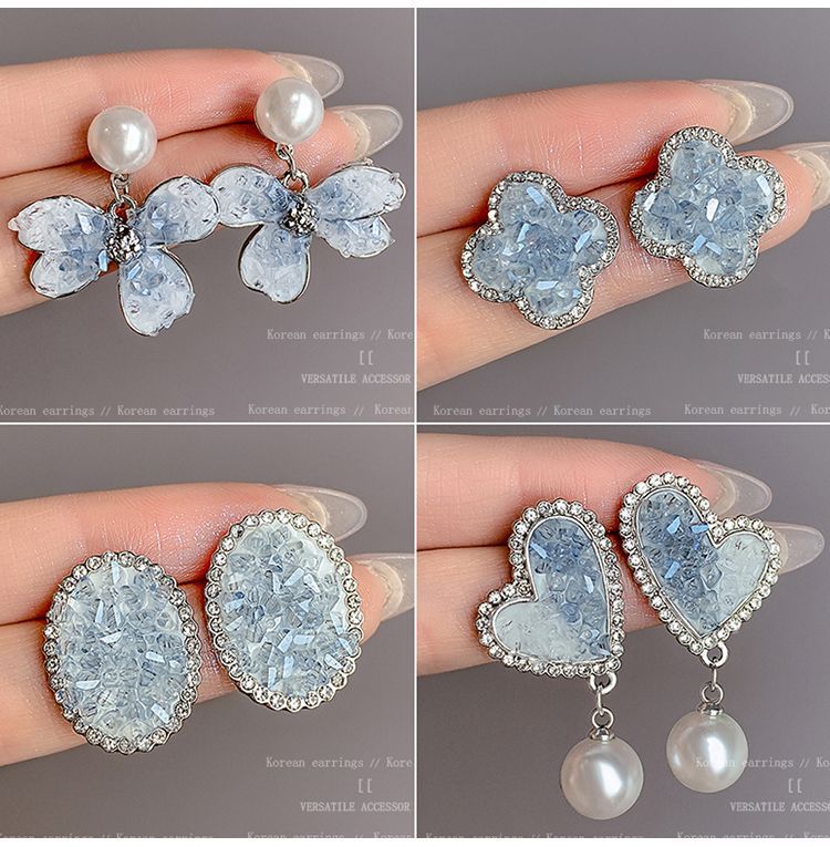 超仙蓝色蝴蝶珍珠耳钉女高级感气质碎钻耳环小众设计感显脸小耳饰