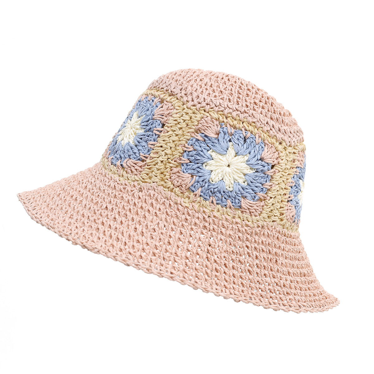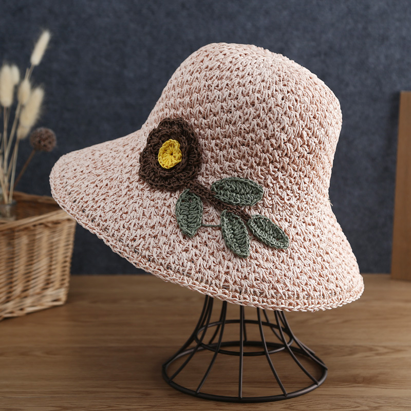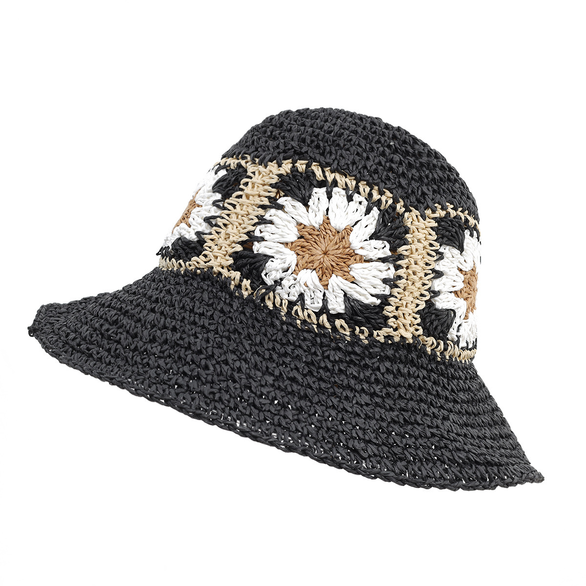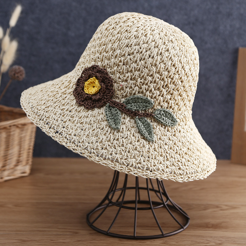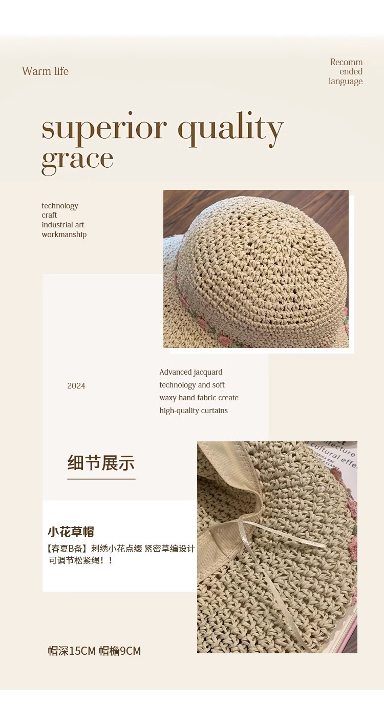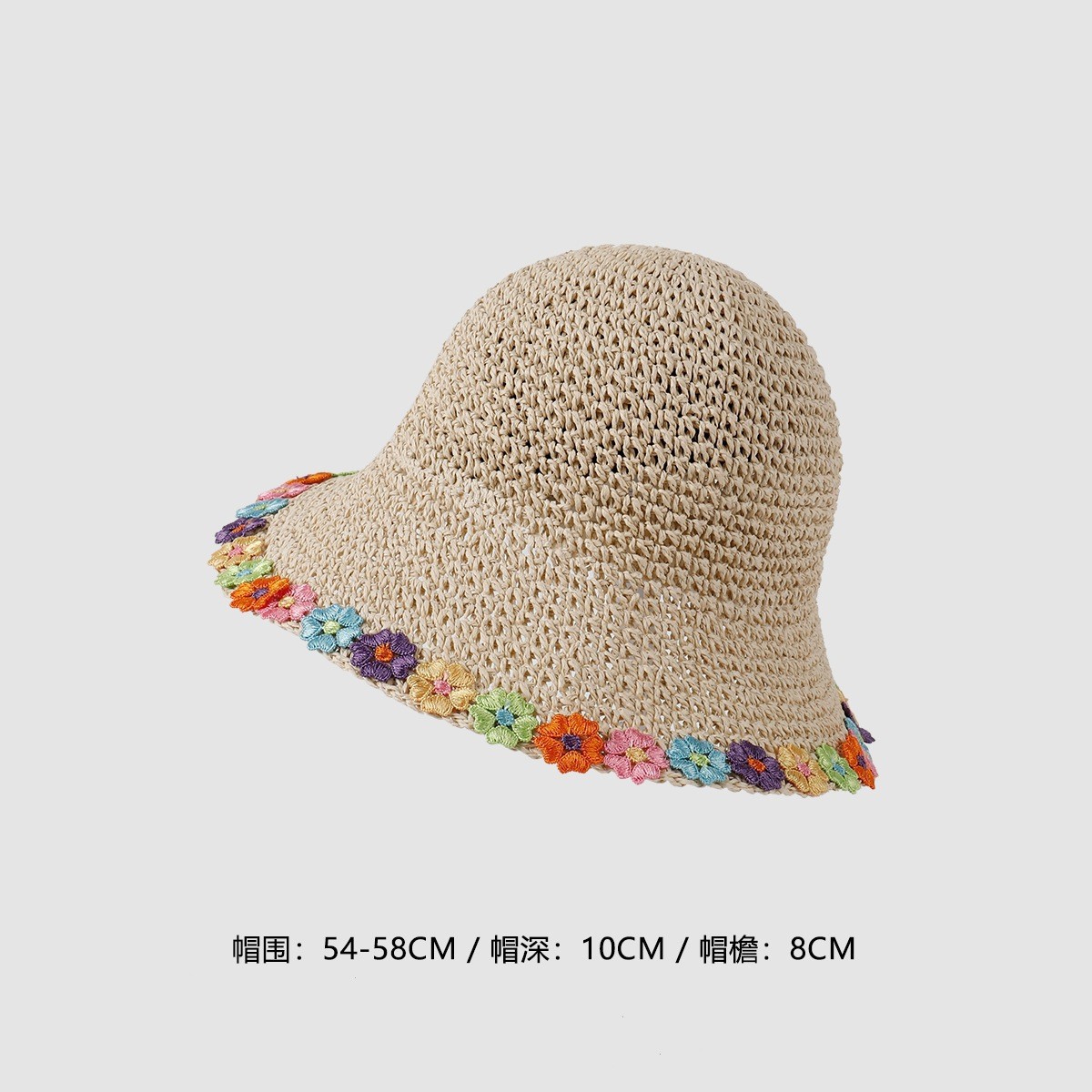 2024新款田园风~夏季编织草帽女海边度假遮阳小花太阳草帽可折叠
