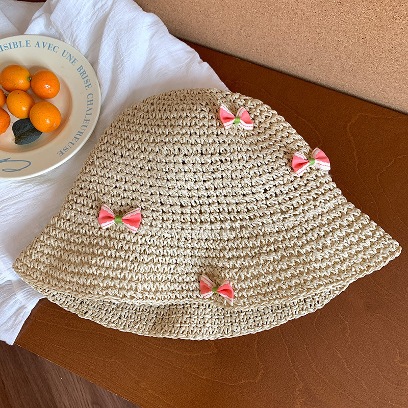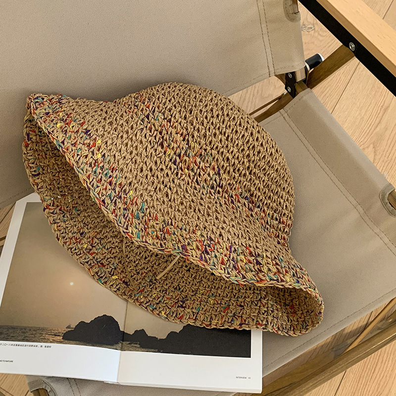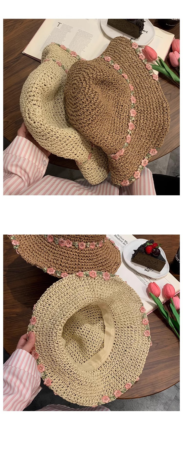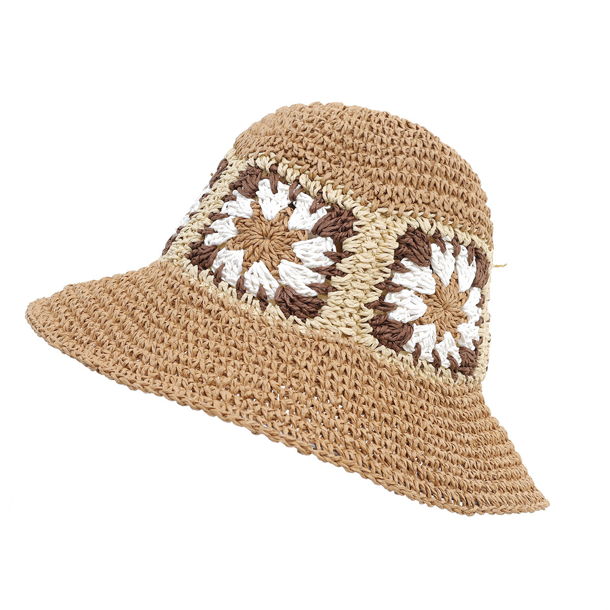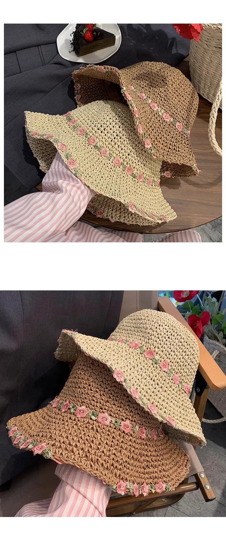 2024新款田园风~夏季编织草帽女海边度假遮阳小花太阳草帽可折叠