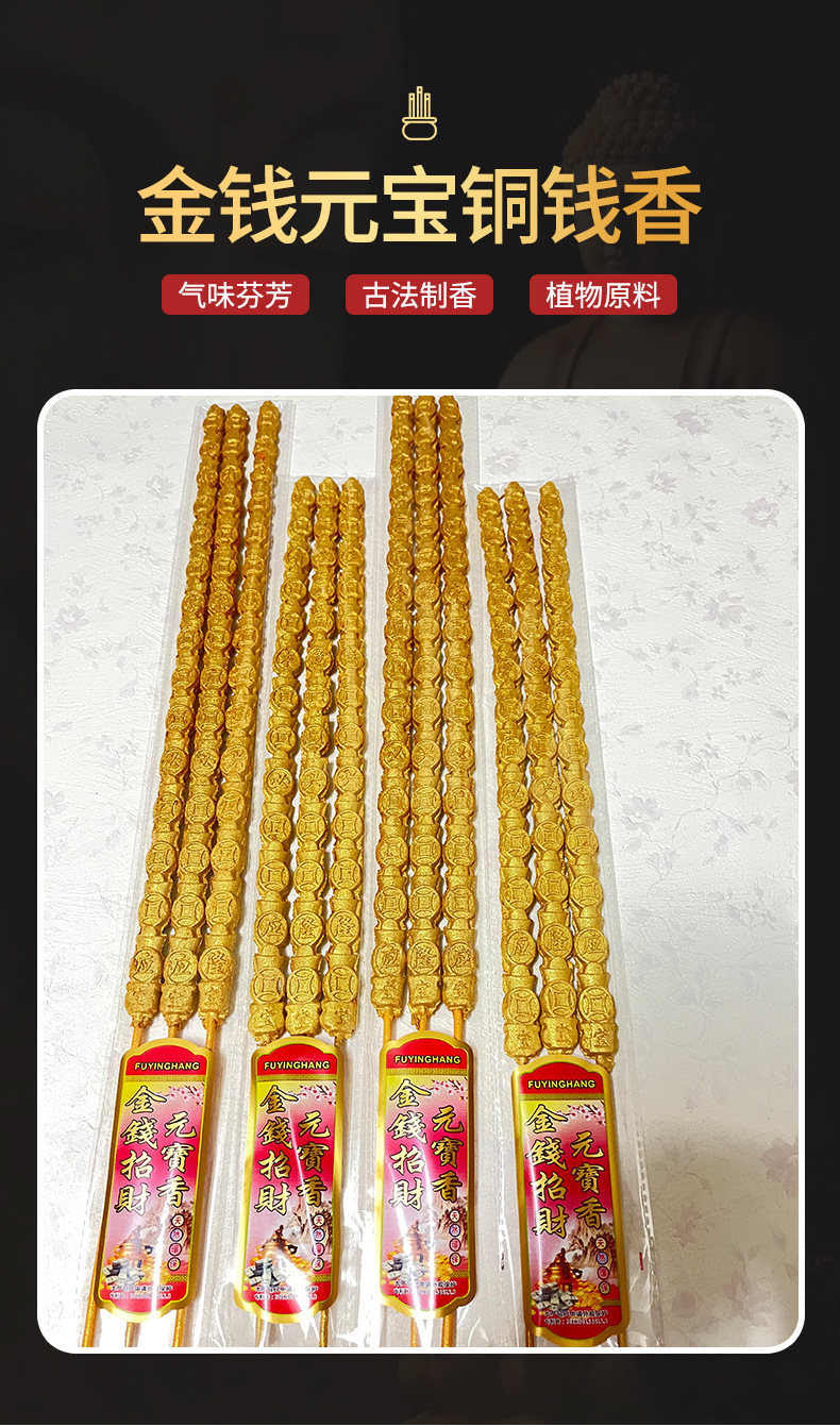 佛香厂家批发元宝铜钱香金钱元宝香凸字香50厘米60厘米高香棒香