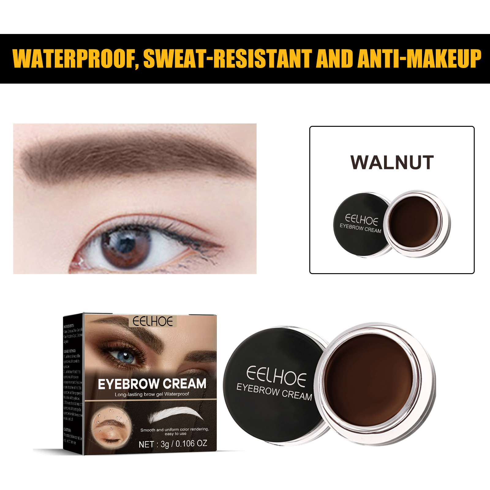 EELHOE 自然立体染眉膏 女野生眉防水防汗持久不脱色不晕染眉膏