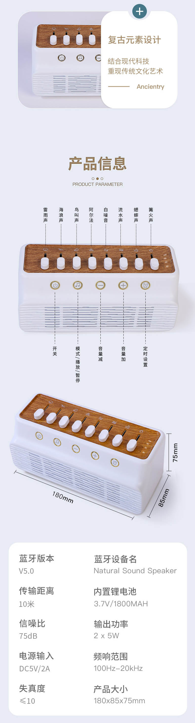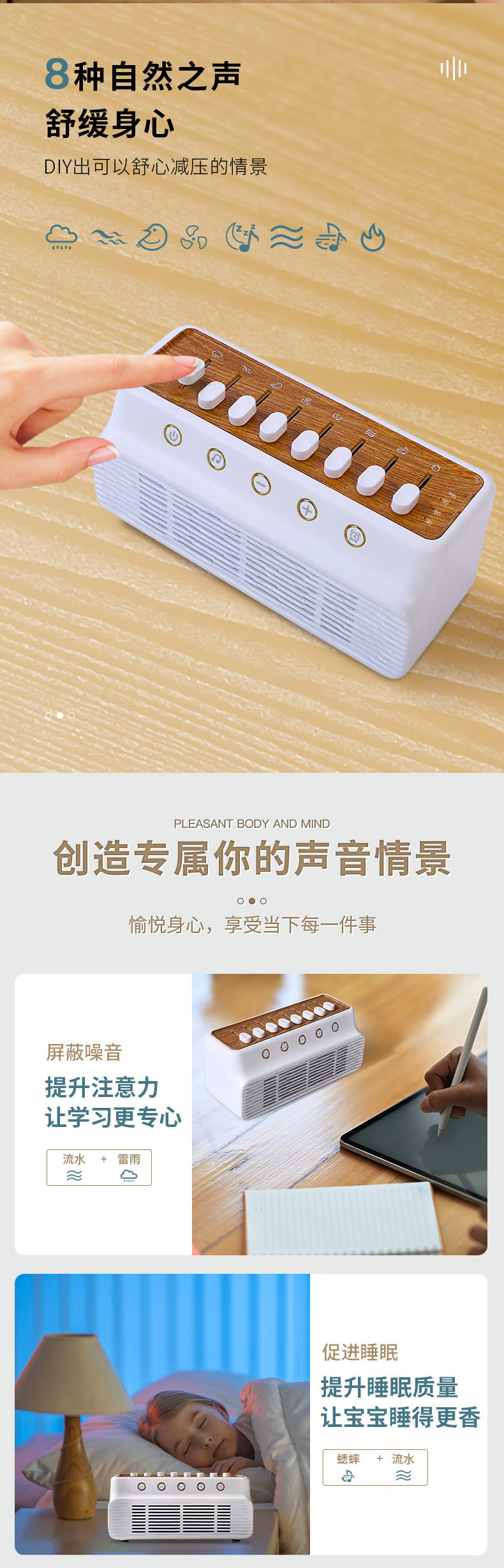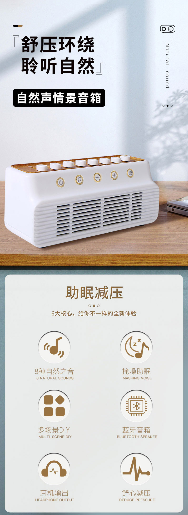 新款厂家睡眠音响自然声情景蓝牙音箱屏蔽噪音缓解压力白噪音音响