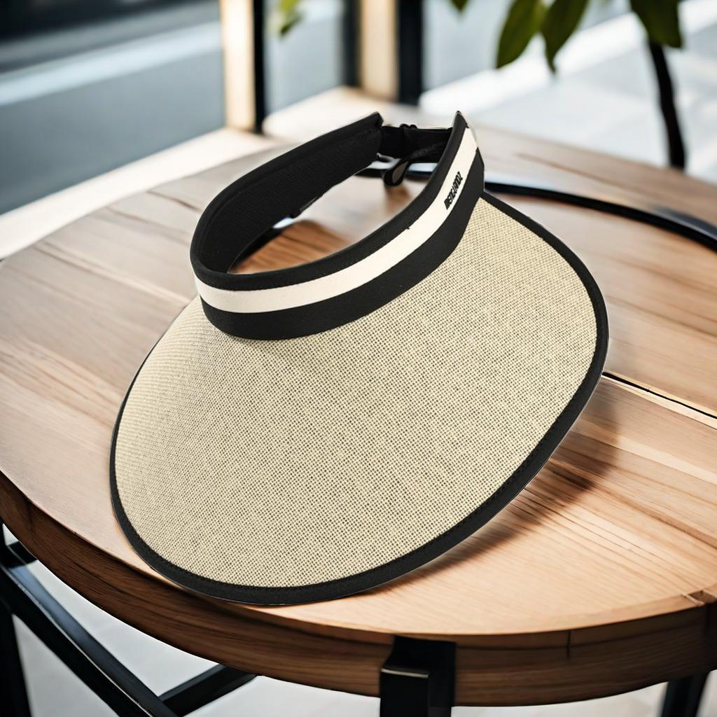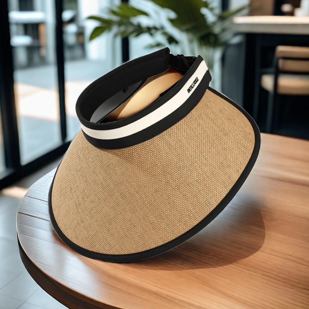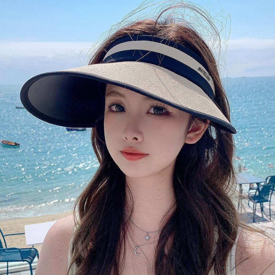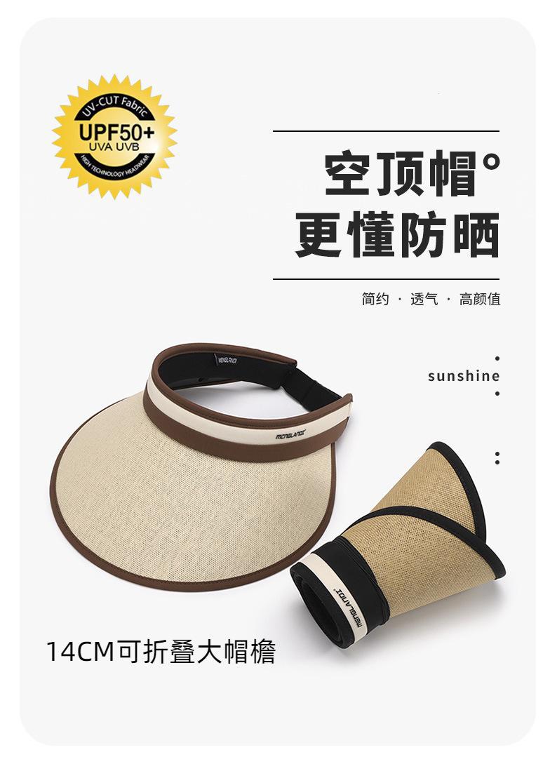 2024新款夏季拼色字母大帽檐空顶帽草编黑胶防紫外线可折叠防晒帽
