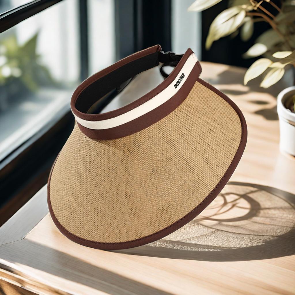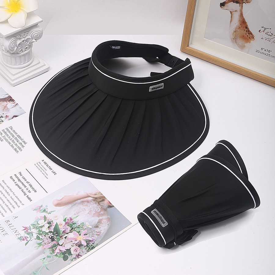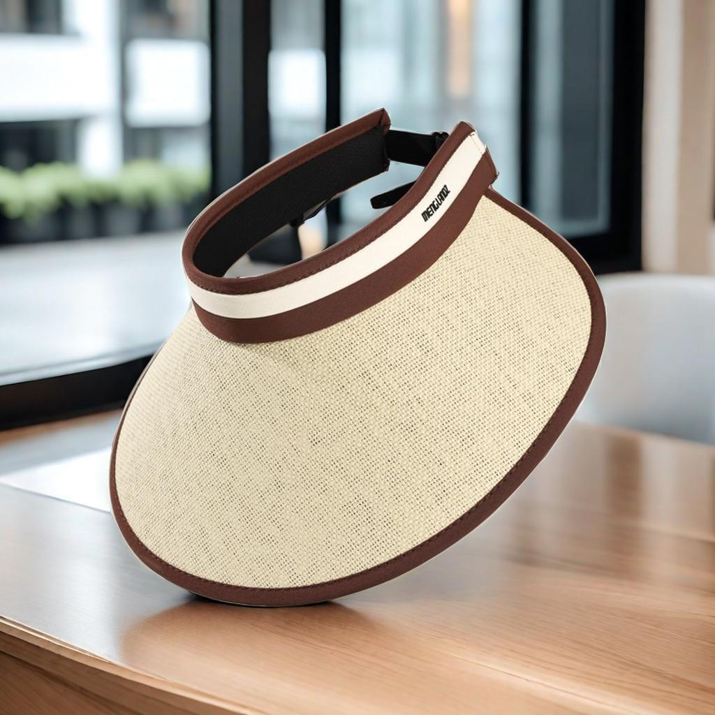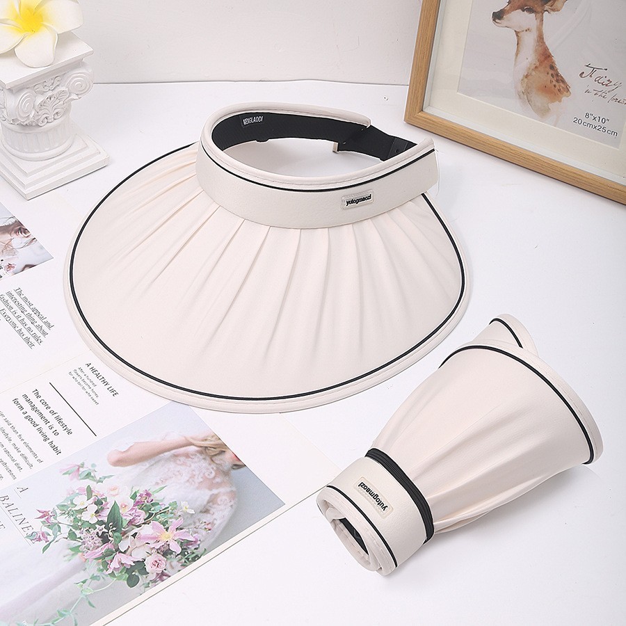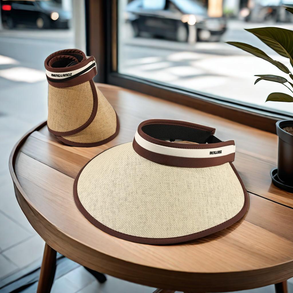 2024新款夏季拼色字母大帽檐空顶帽草编黑胶防紫外线可折叠防晒帽