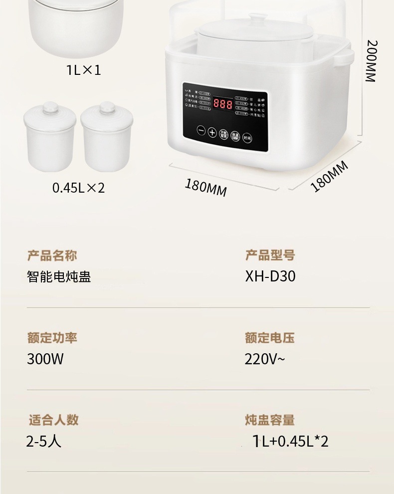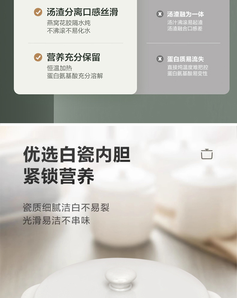 电炖锅1-2人炖盅陶瓷隔水炖家用 炖锅煲汤全自动燕窝多功能电砂锅