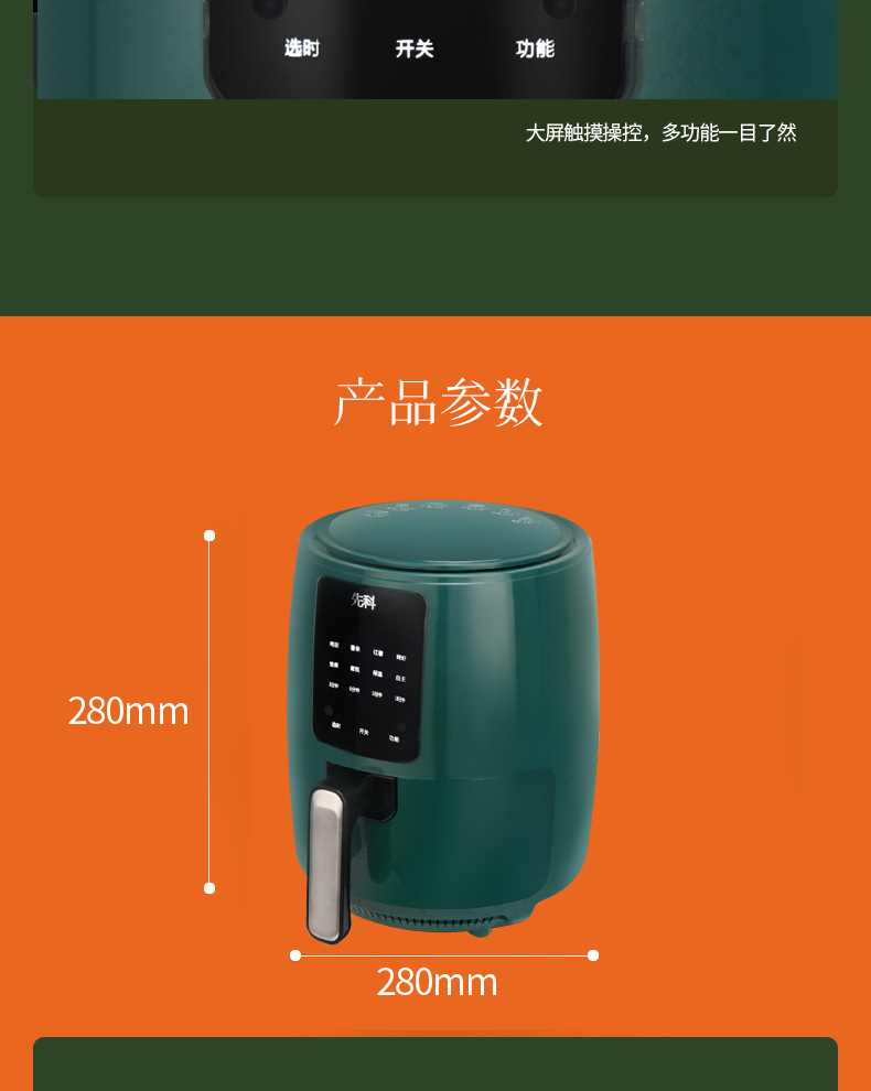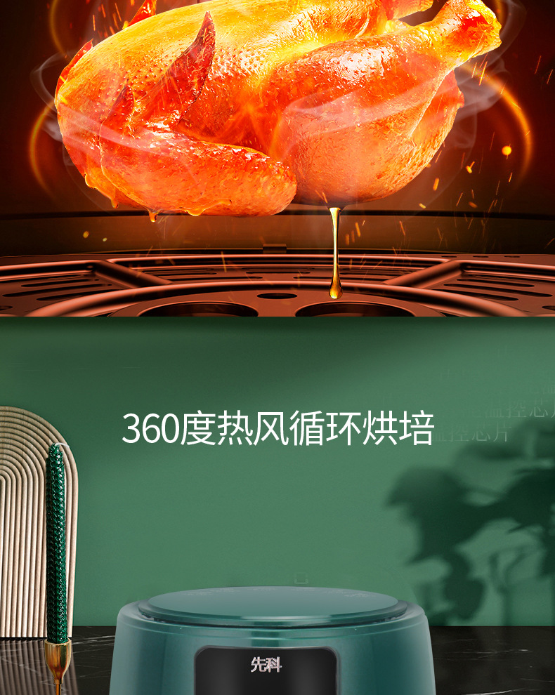 先科智能家用触摸式大容量无油烟烘焙空气炸锅Air fryer批发
