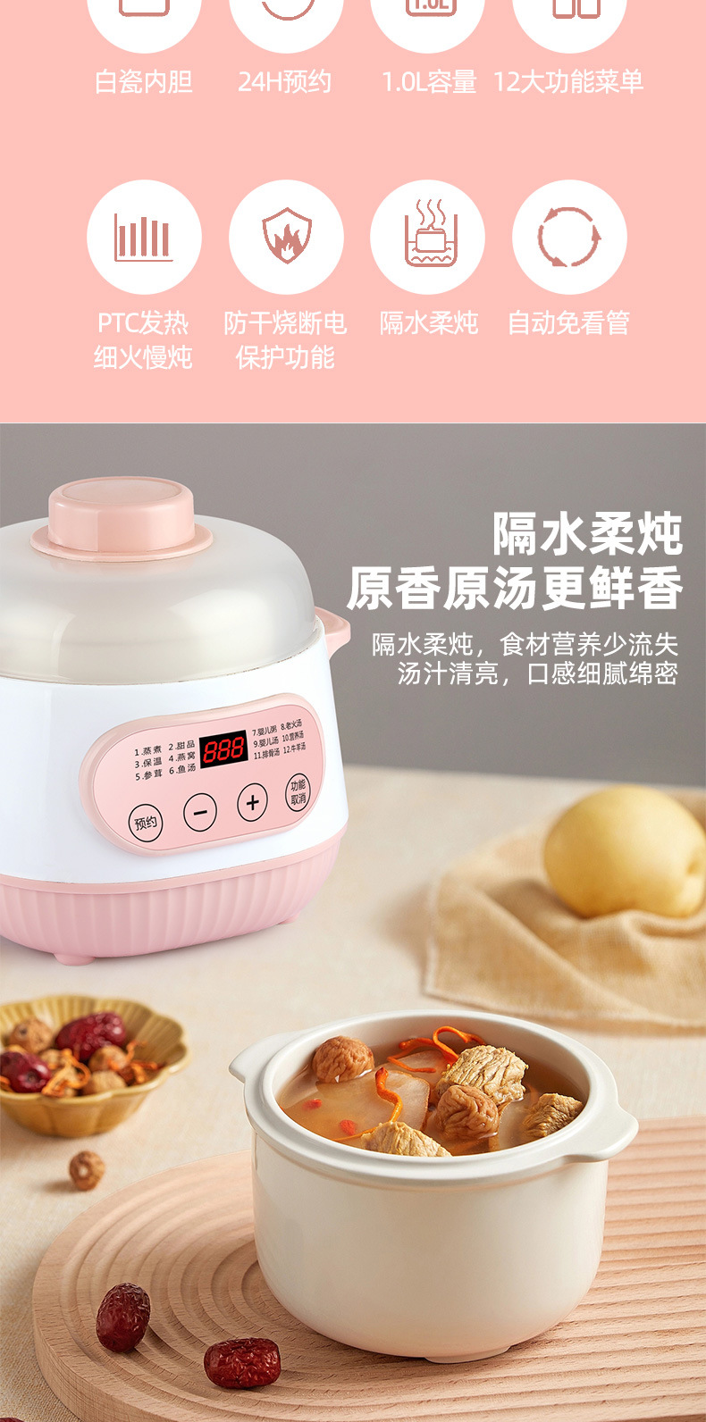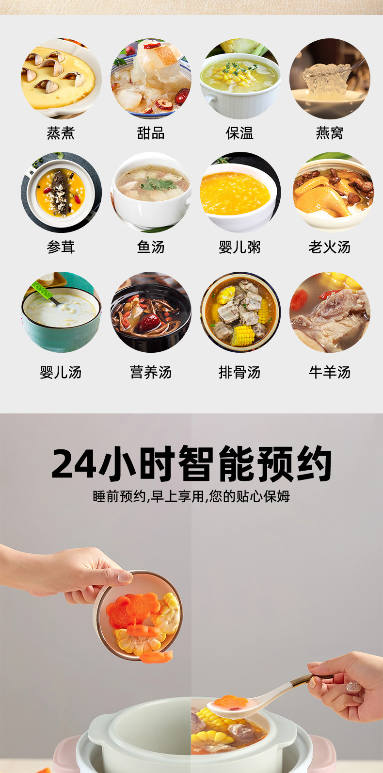 严选家用电炖盅多功能可预约定时炖煮煲汤迷你陶瓷养生煲汤锅礼品