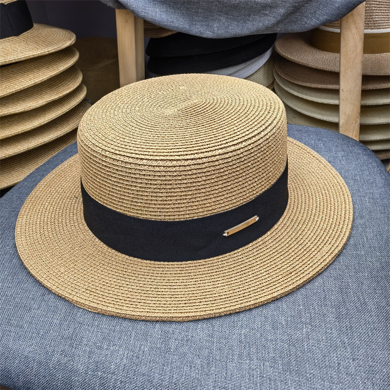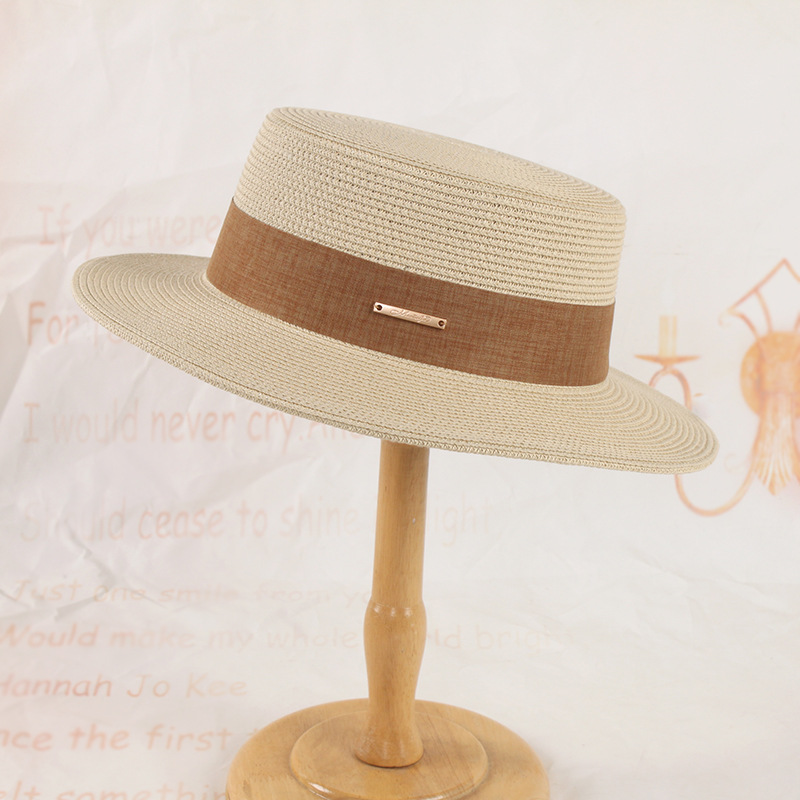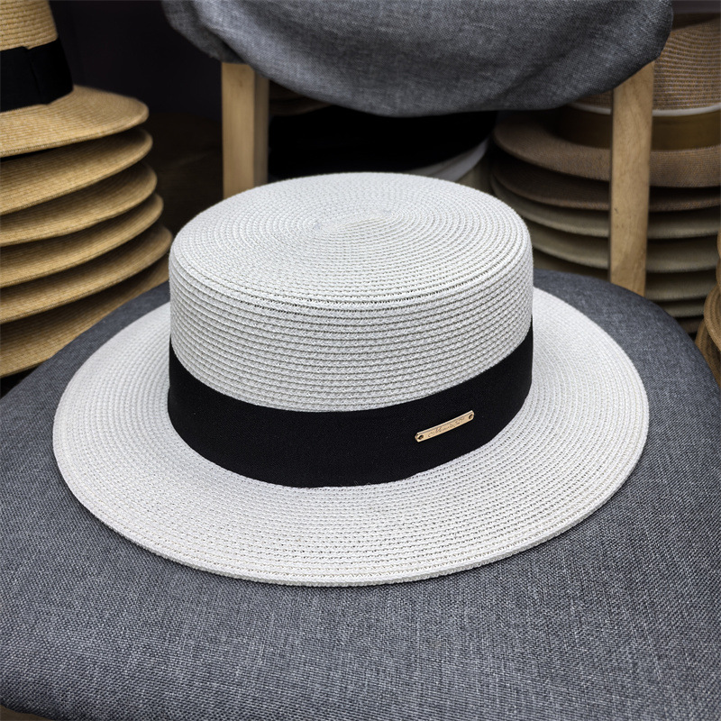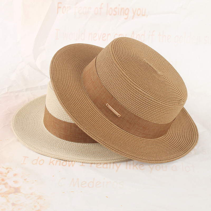 韩版夏季草帽女优雅平顶帽度假遮阳帽法式简约百搭休闲礼帽女批发