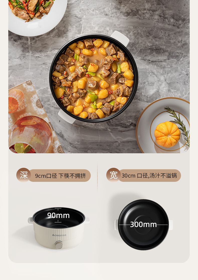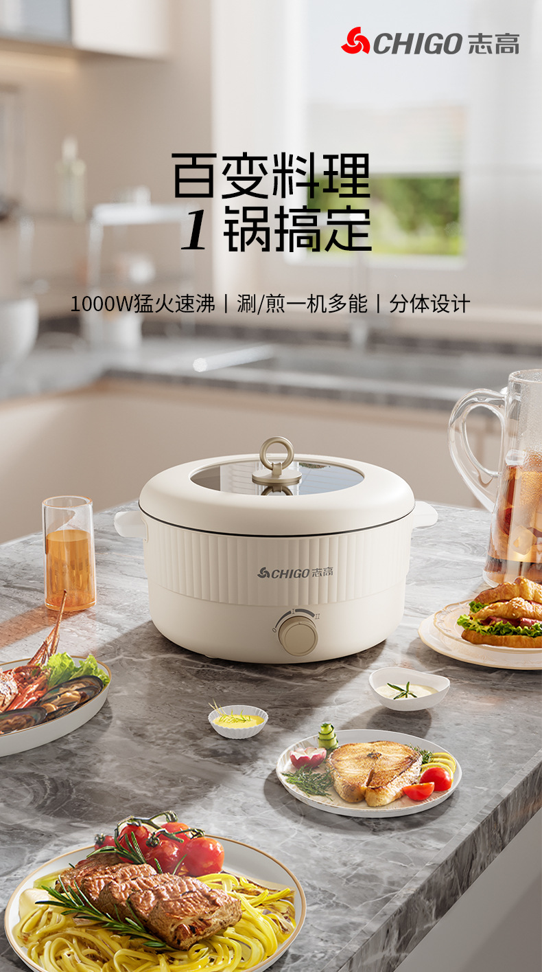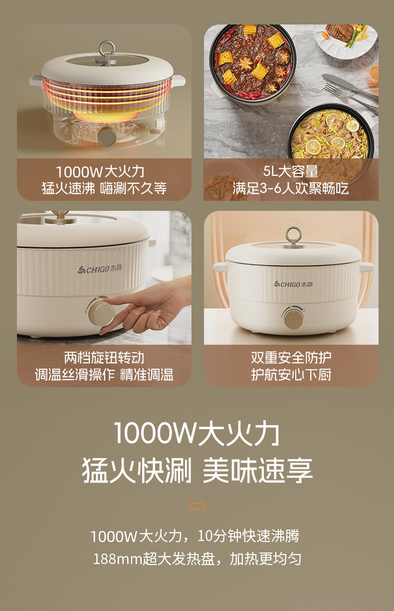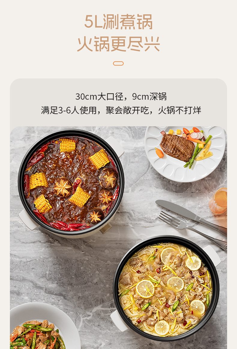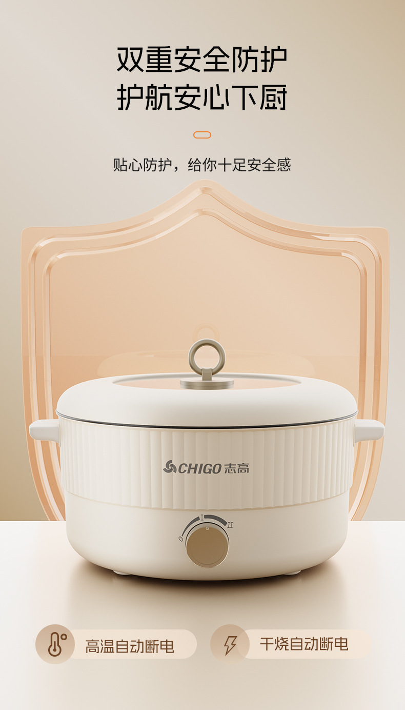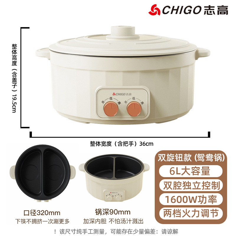 志高电火锅家用5L~6L鸳鸯锅宿舍多功能一体不粘电热火锅电煮锅批