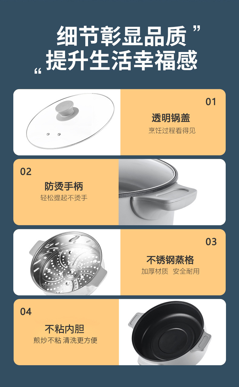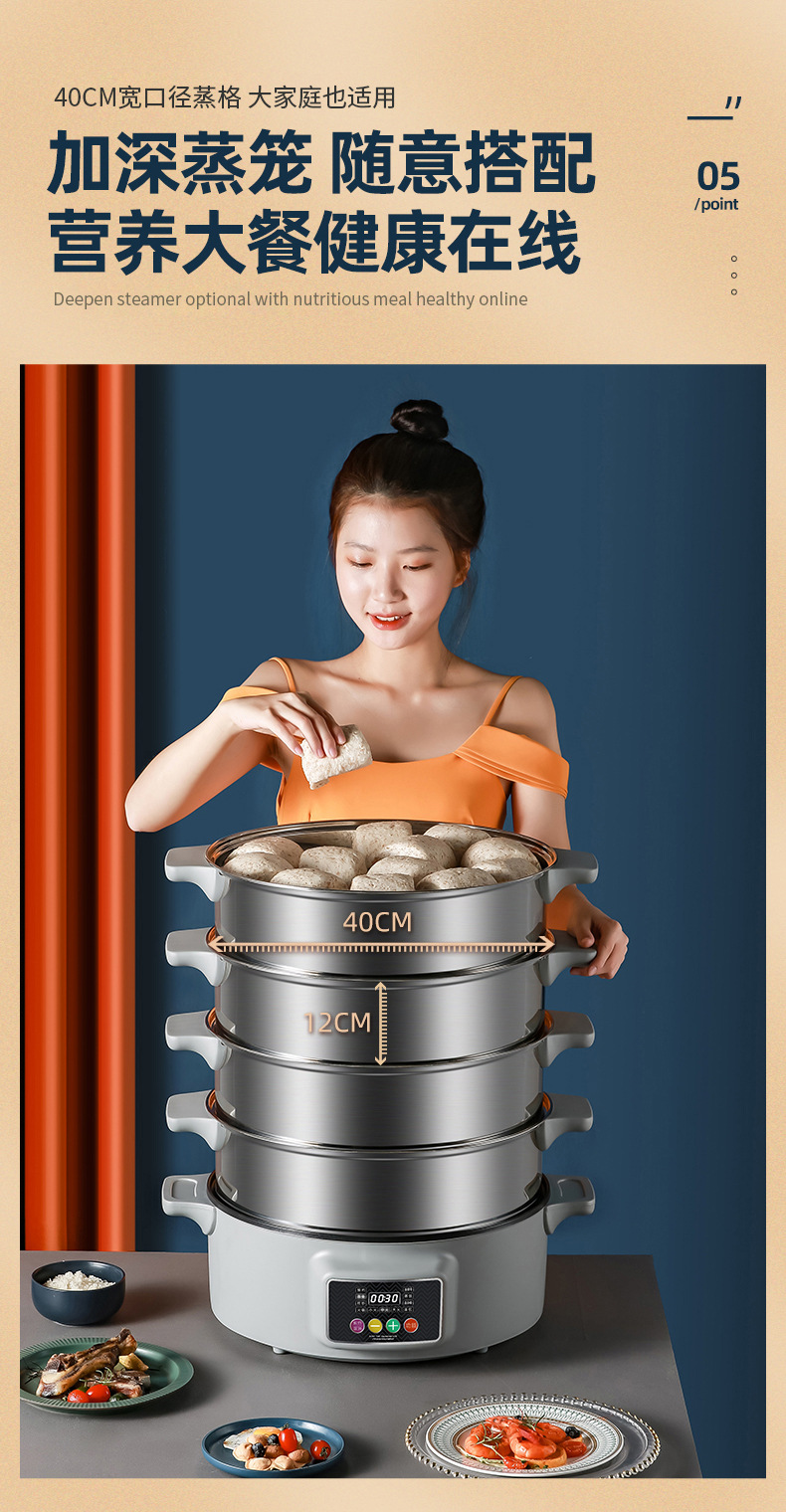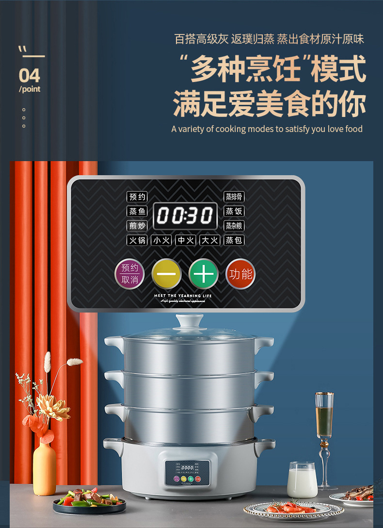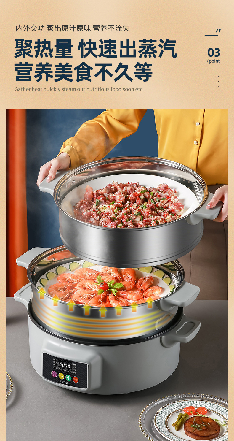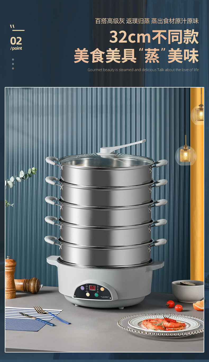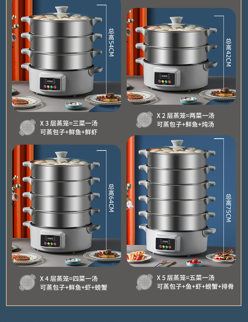 上蒸下煮海鲜蒸汽锅 一体多层批发不锈钢家用多功能三层电蒸锅